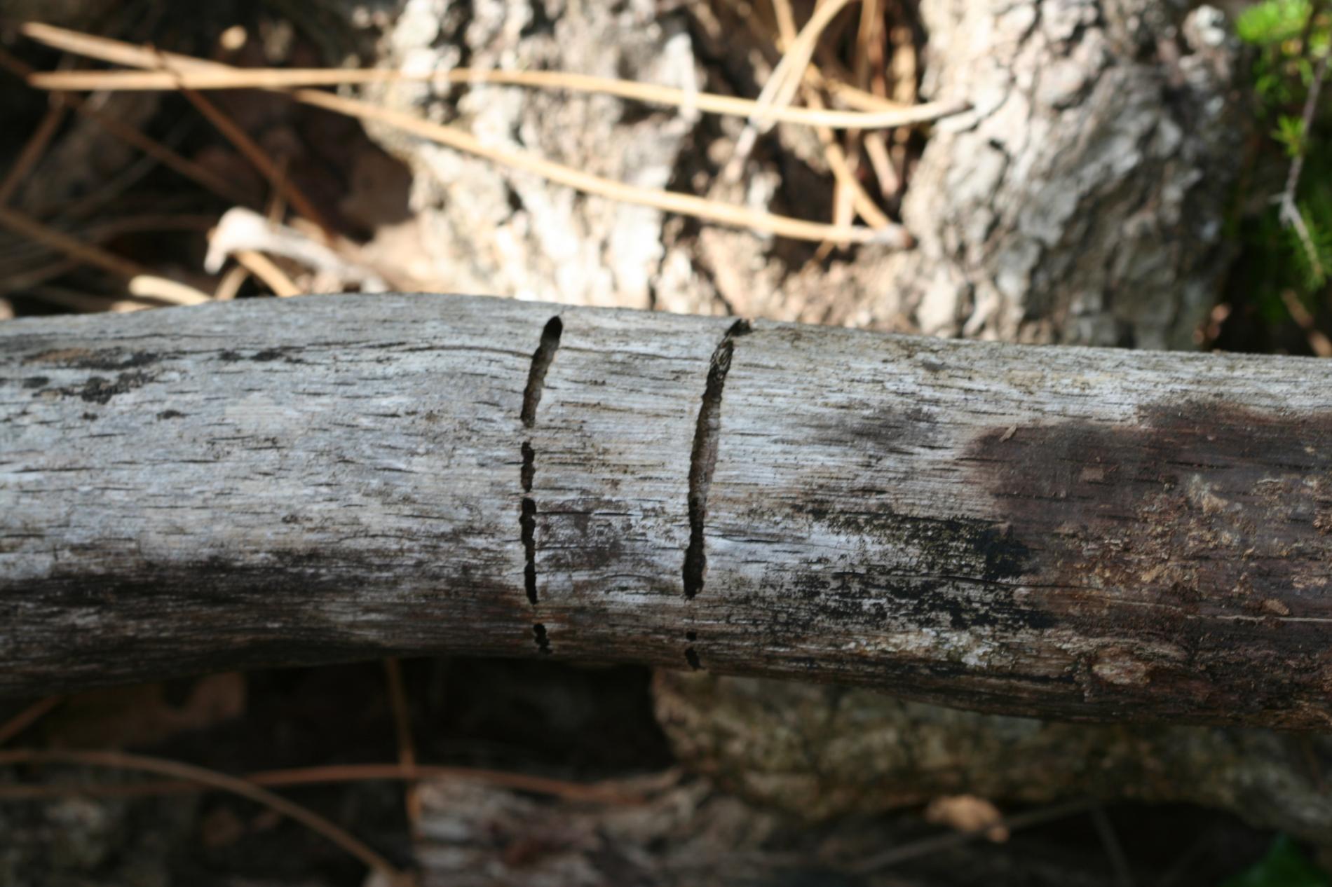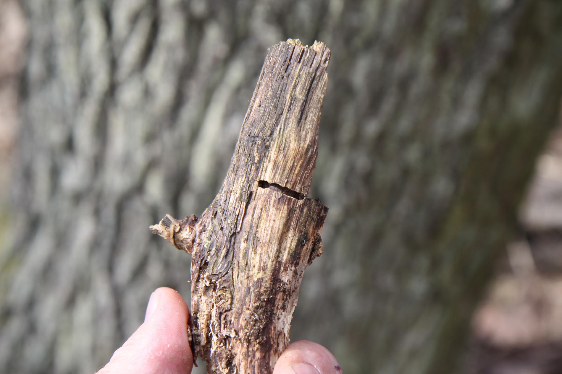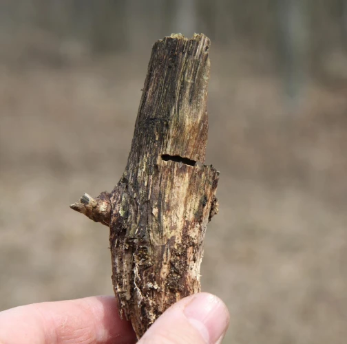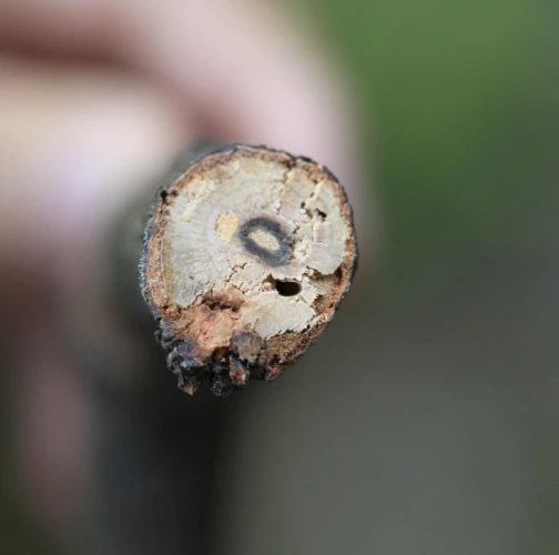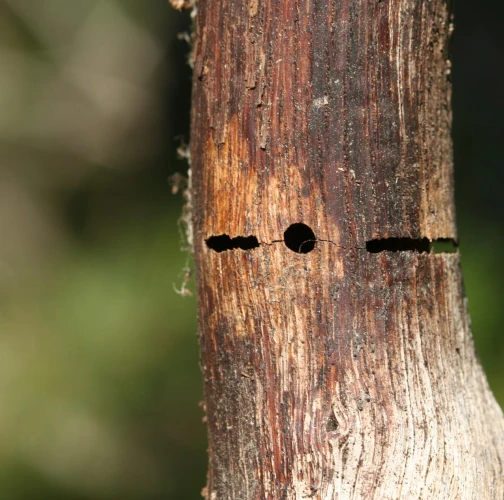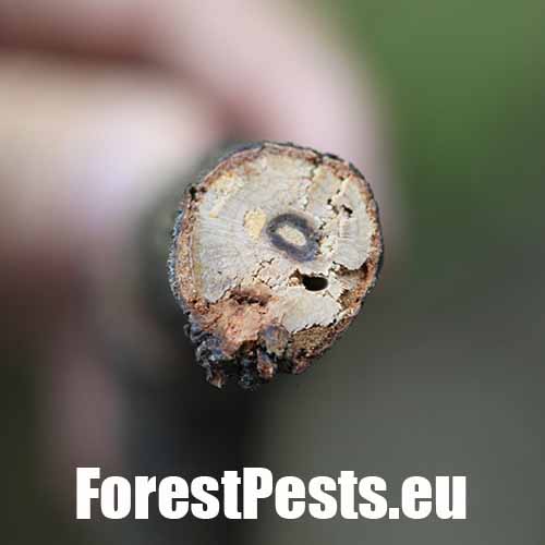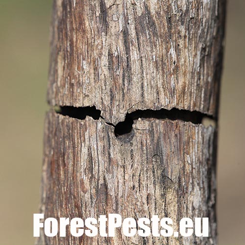 Vetva má v dreve chodbu prechádzajúcu okolo celého obvodu, často vidieť oválny výletový otvor.