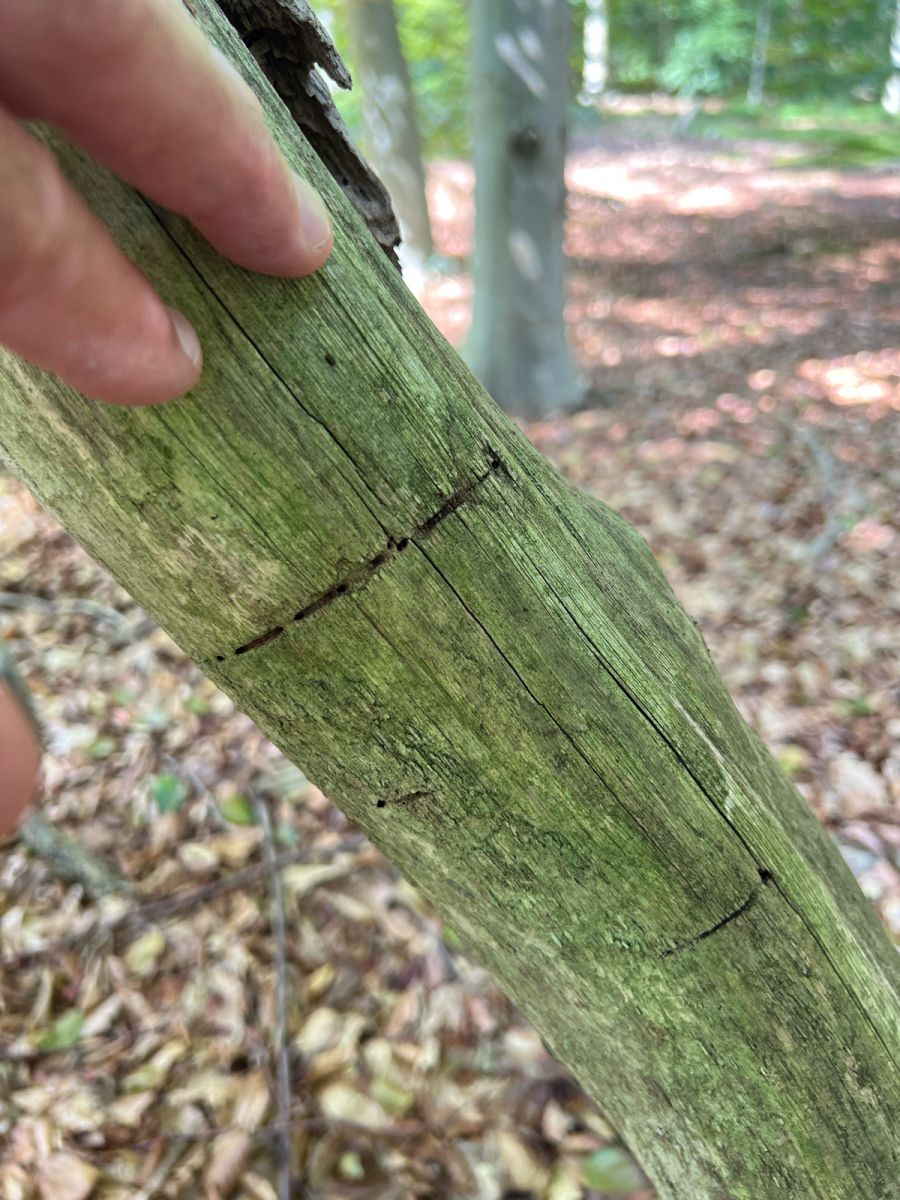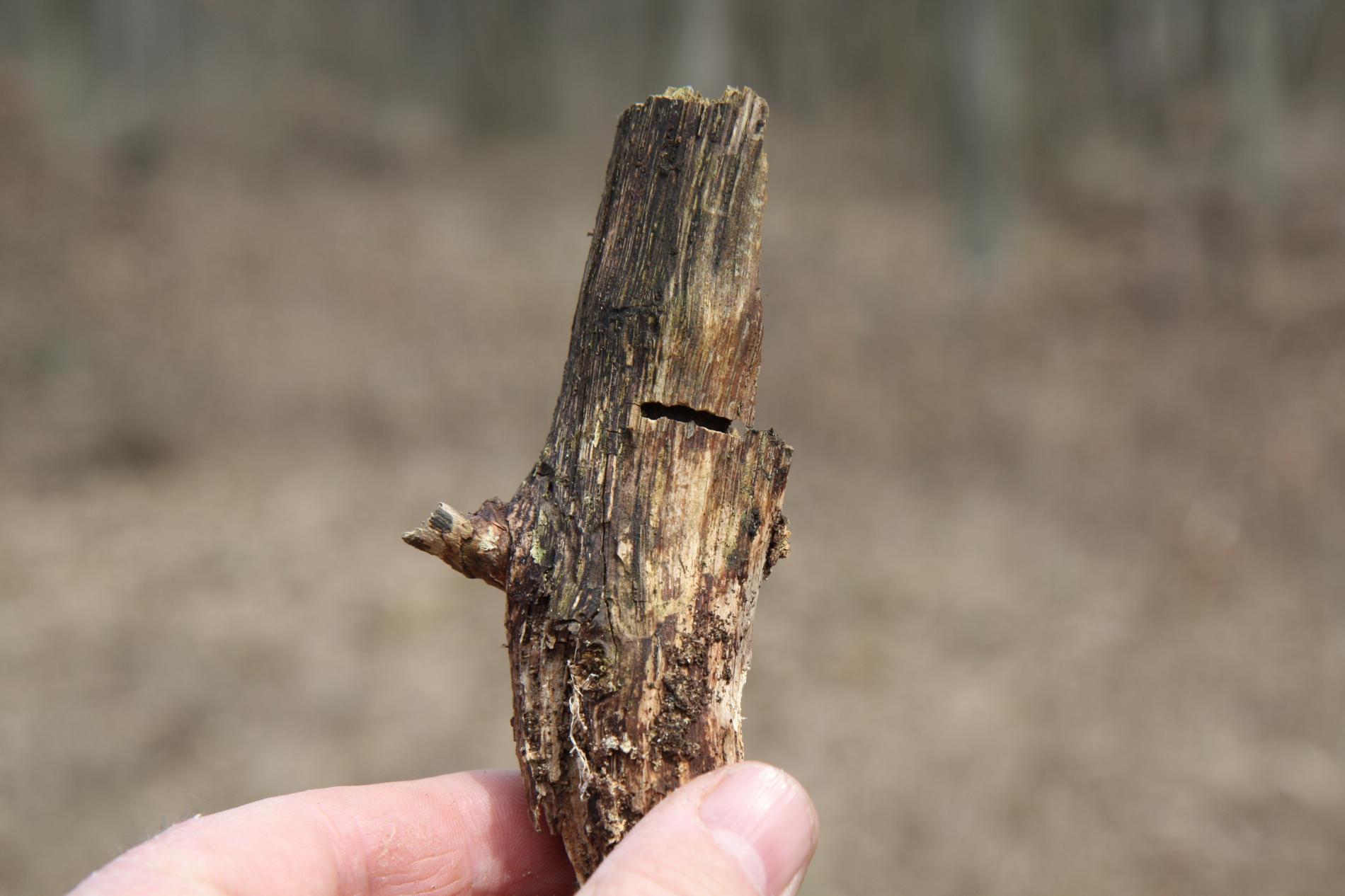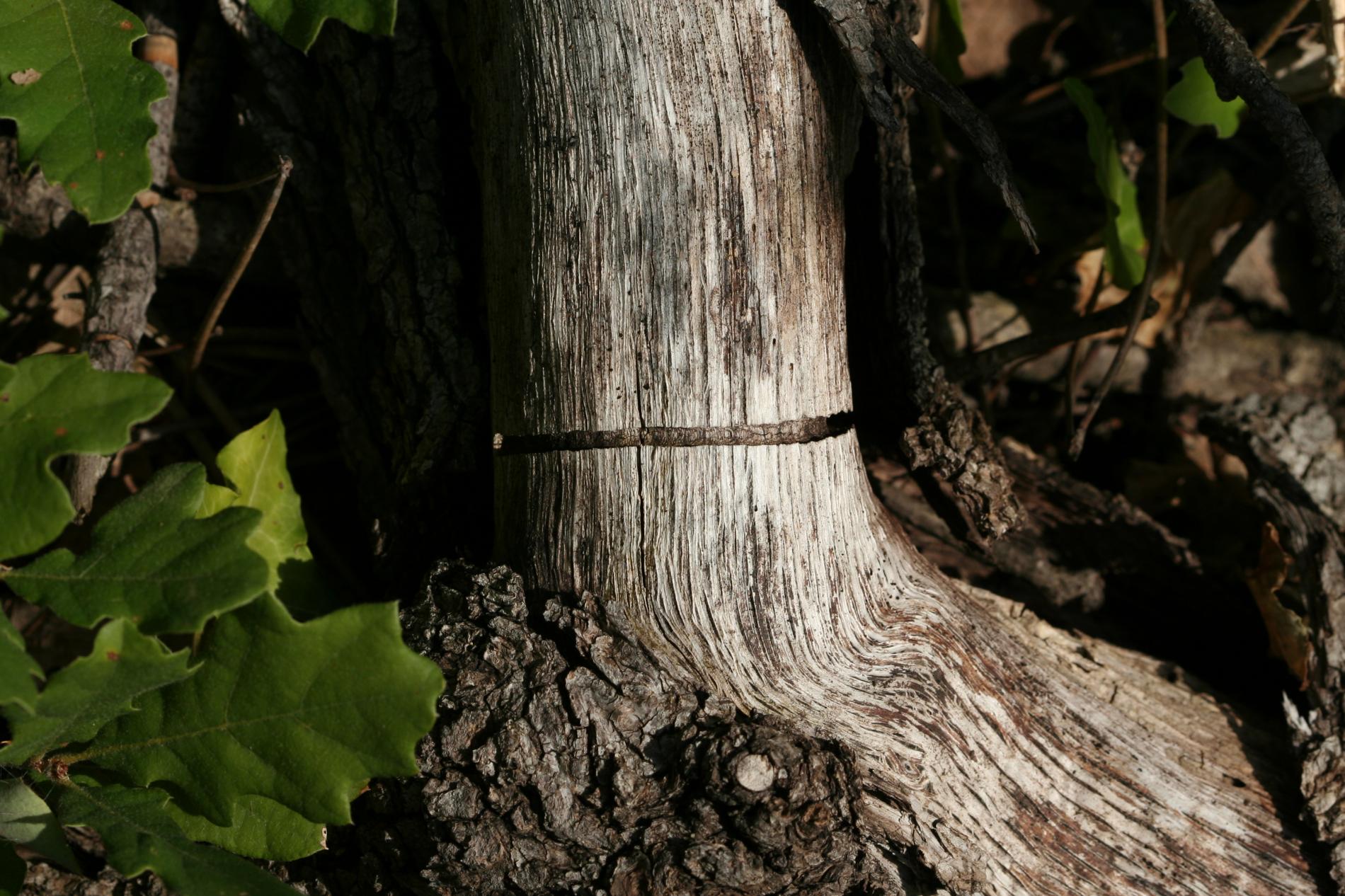 Vetva má v dreve chodbu prechádzajúcu okolo celého obvodu, často vidieť oválny výletový otvor.