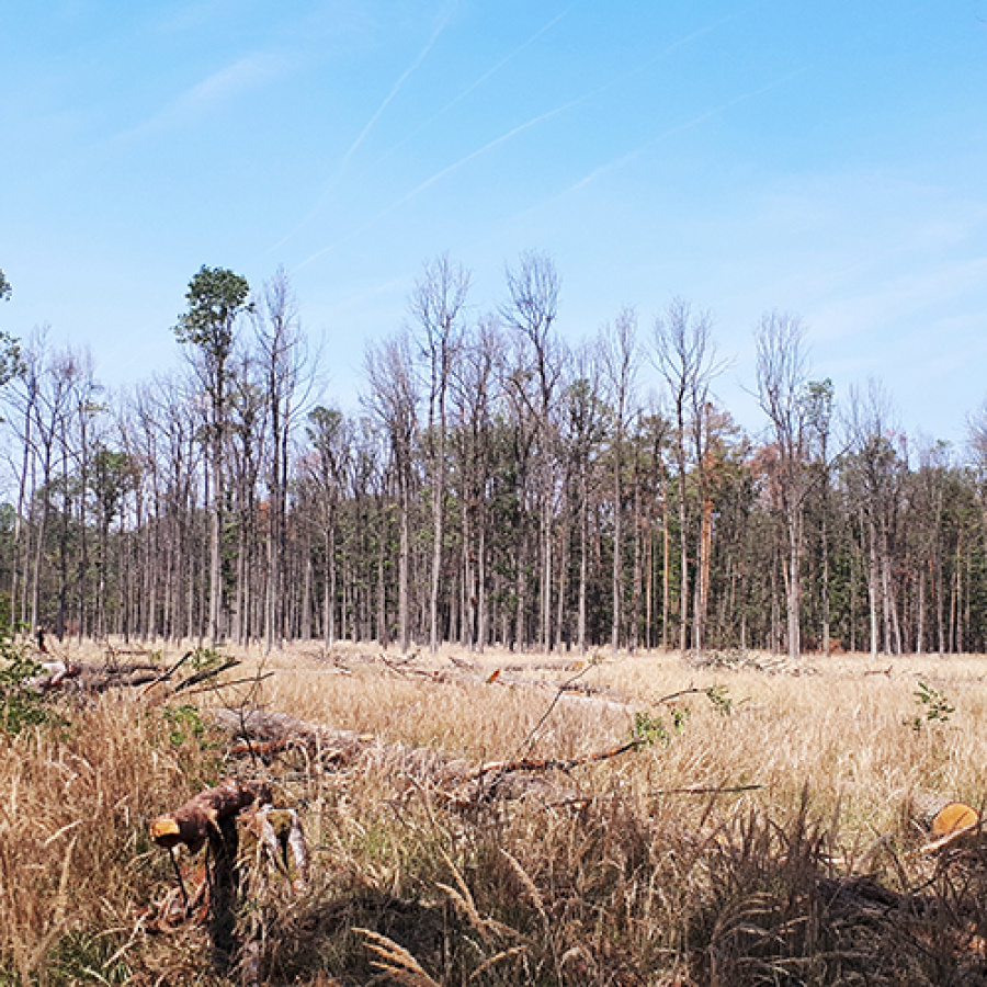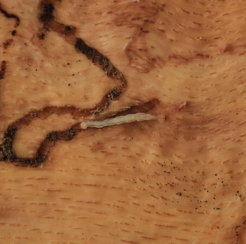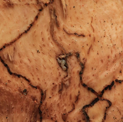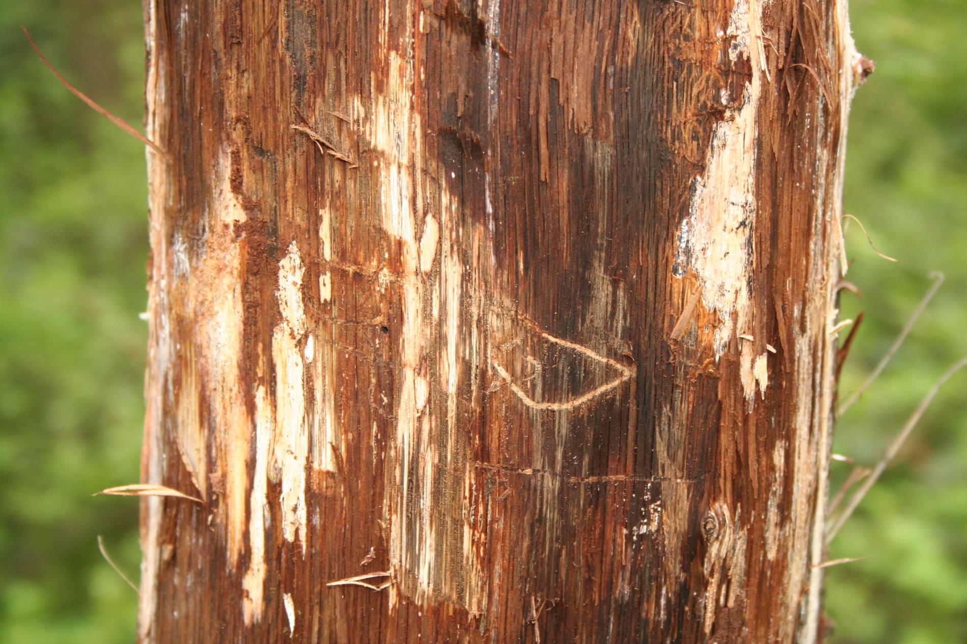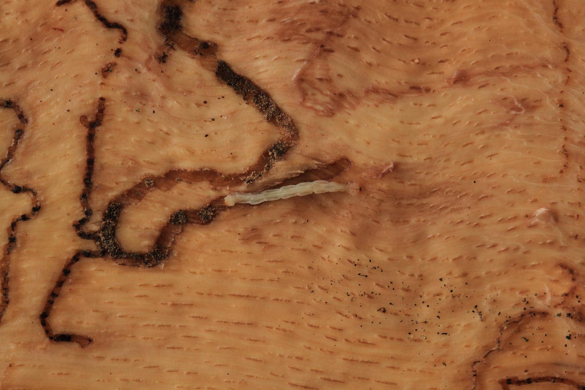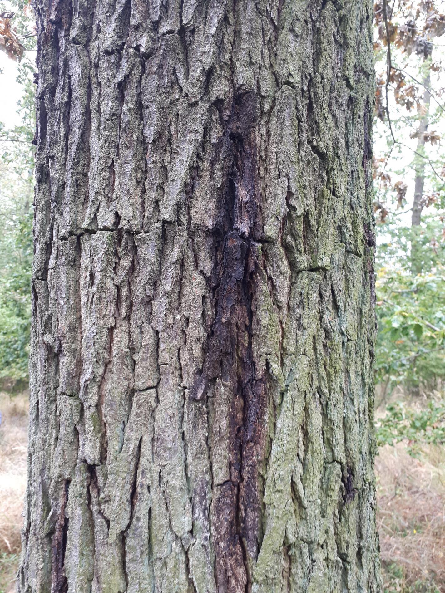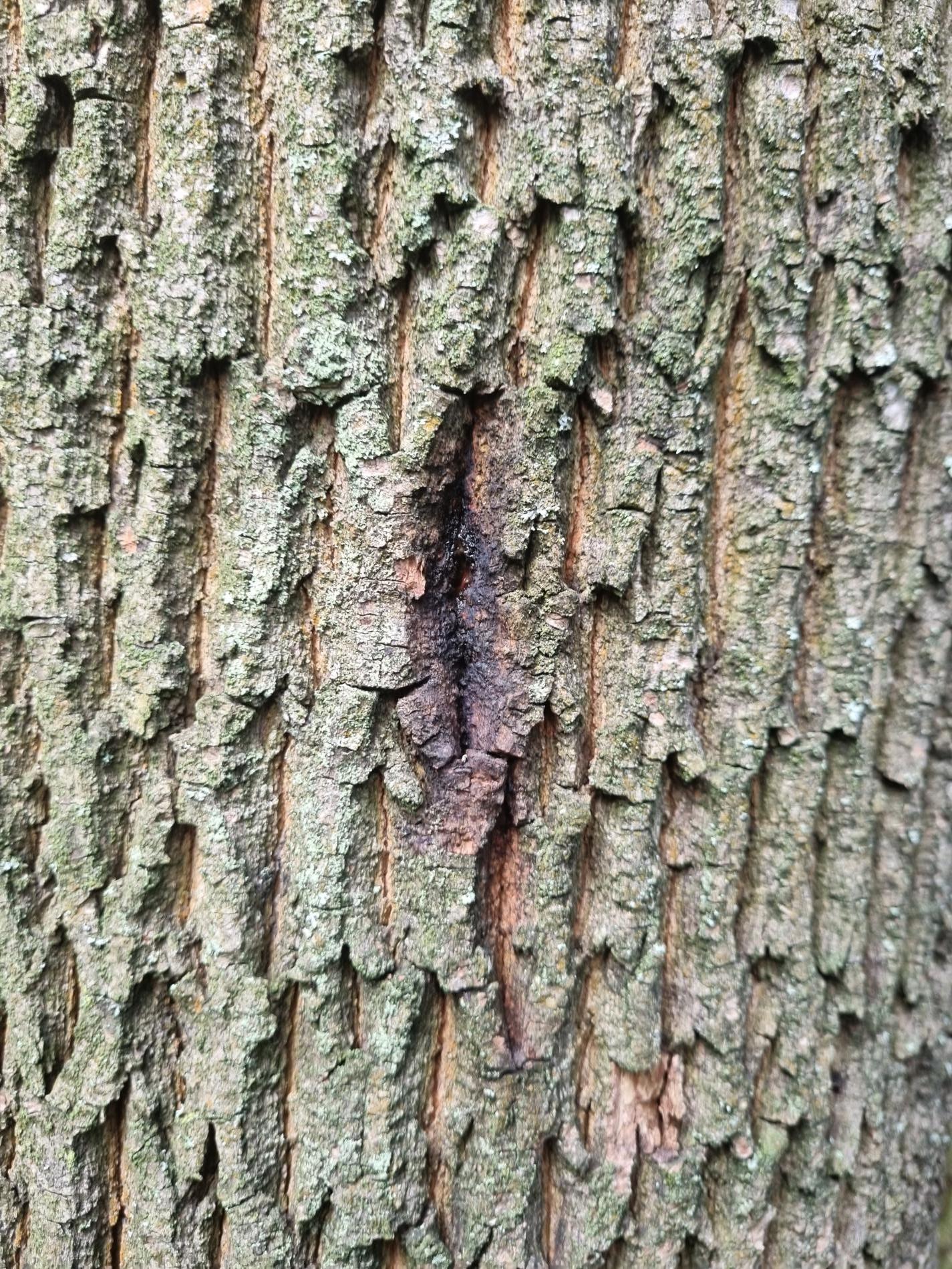 Úzke chodby pod kôrou. Odumreté časti korún, koruny alebo celé stromy.
