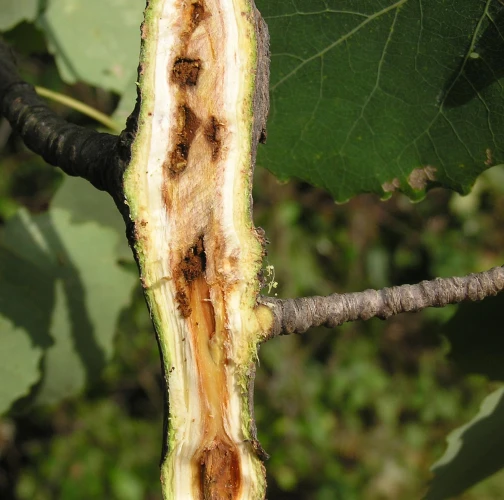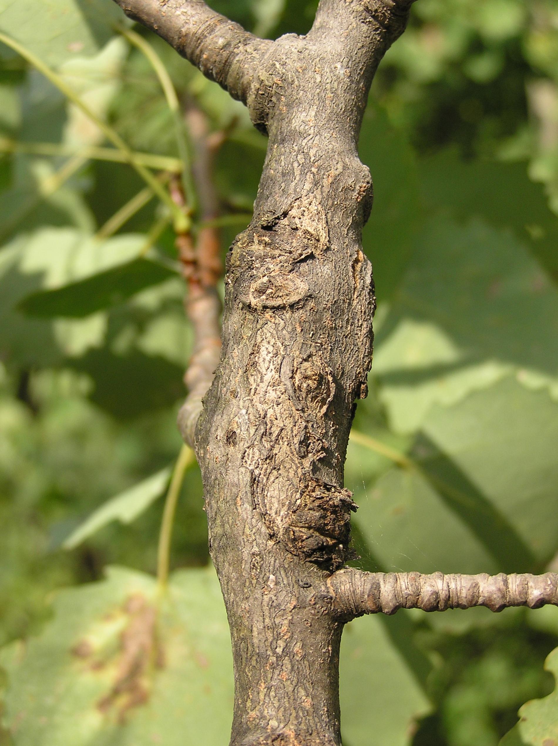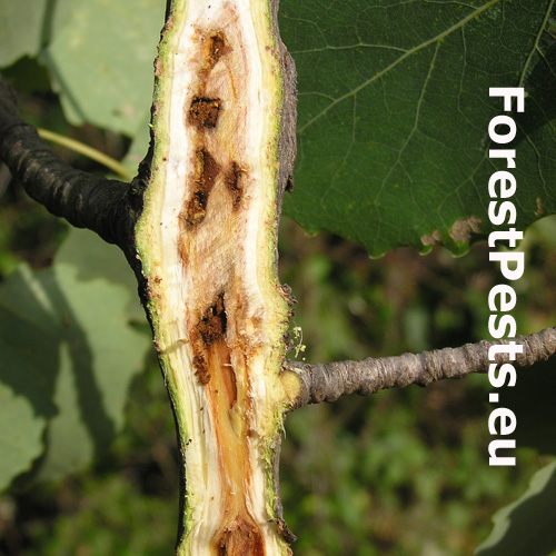 Konáriky následkom žeru hrubnú a deformujú sa. Vo vnútri sa nachádza trus a larva. Následne sa vetvy pod náporom vetra ľahko ulamujú.