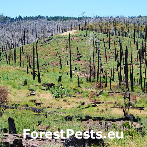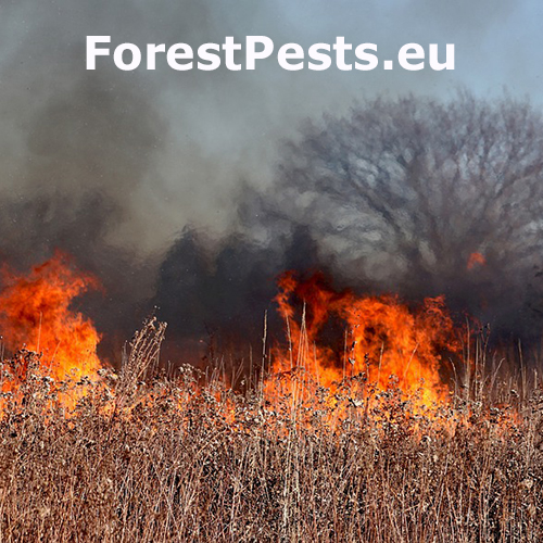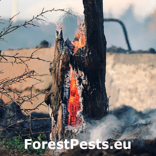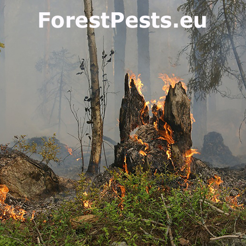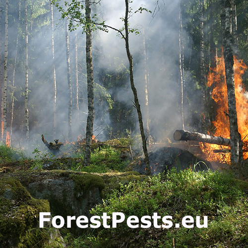 Nežiadúce horenie lesných drevín. Požiar môže vzniknúť prirodzene (úderom blesku, tlením organického materiálu v prípade slnečného počasia) alebo umelo, a často krát zámerne, pôsobením človeka. V drvivej väčšine prípadov býva príčinou vzniku požiarov lesných a trávnatých porastov práve ľudská nedbanlivosť, nedodržiavanie protipožiarnych bezpečnostných opatrení a v neposlednom rade podceňovanie požiarneho nebezpečenstva pri používaní otvoreného ohňa (zakladanie ohňa, fajčenie, vypaľovanie trávnatých porastov a pod.). Požiarom môže byť poškodená ktorákoľvek drevina, ale najčastejšie sa vyskytujú v suchých dubových a borovicových lesoch. V horských oblastiach potom v smrekových lesoch.