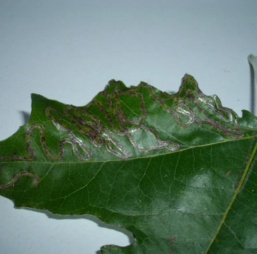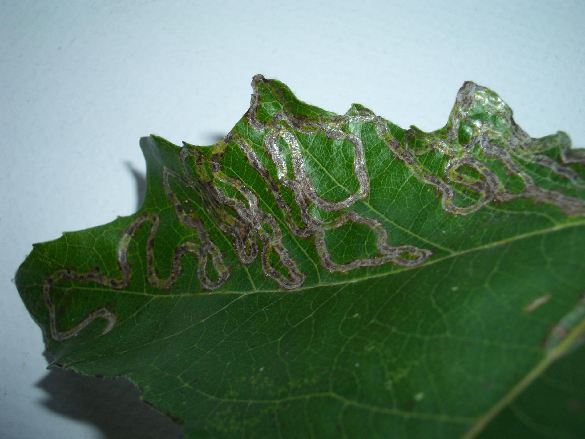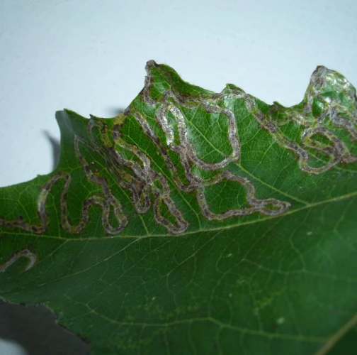 - Charakteristika mín: Tvorí dlhé, kľukaté mínové chodby, ktoré pripomínajú "slimačí sliz". Trus je v centrálnej línii a na konci míny, kde sa kuklí, sa vytvára mierne rozšírená oblasť. Okraj listu môže byť zahnutý.
