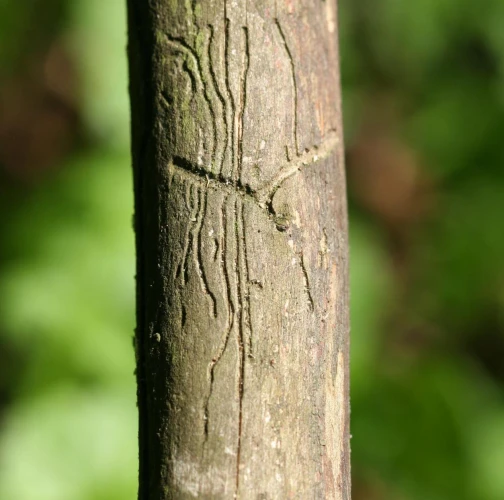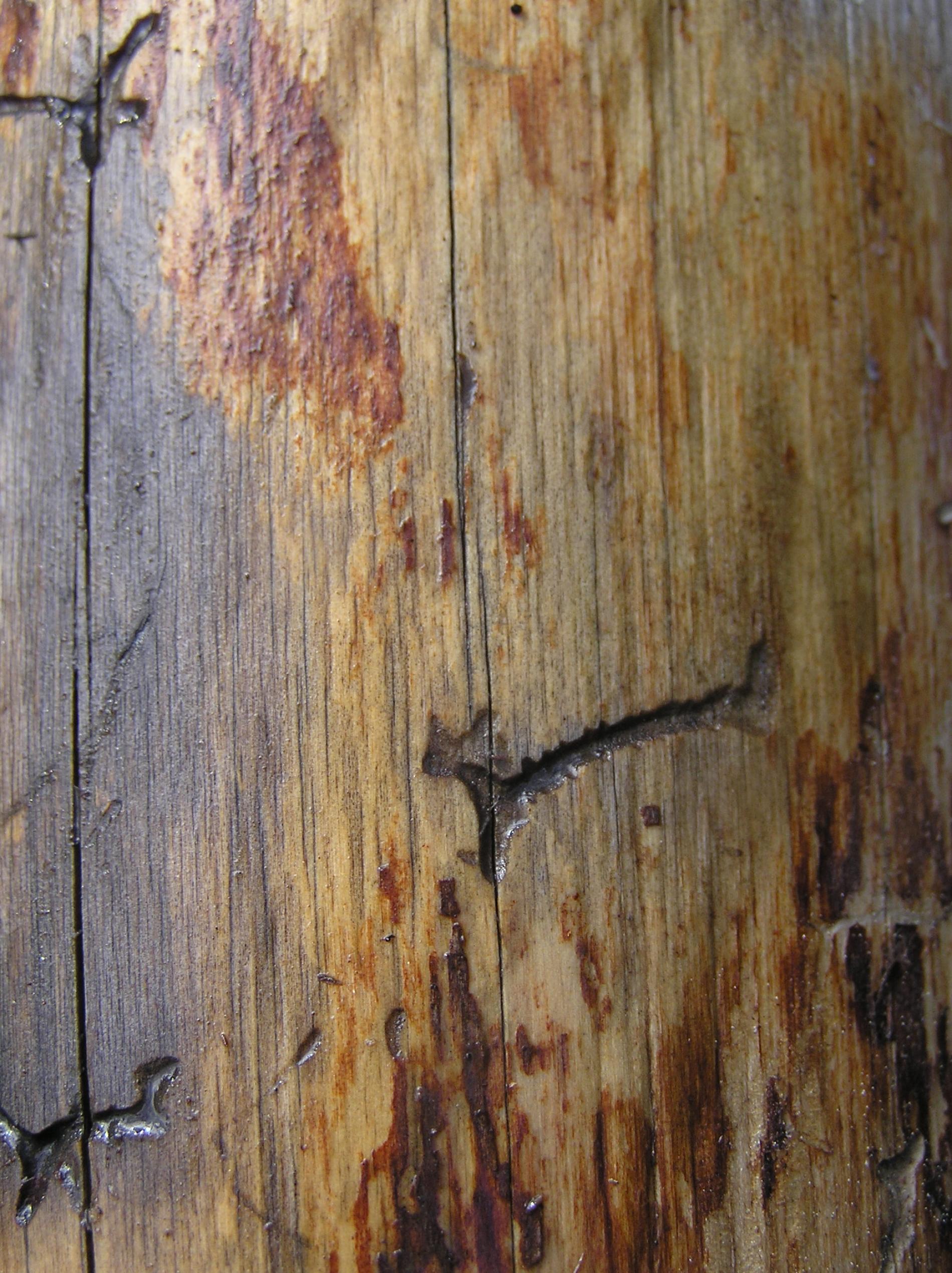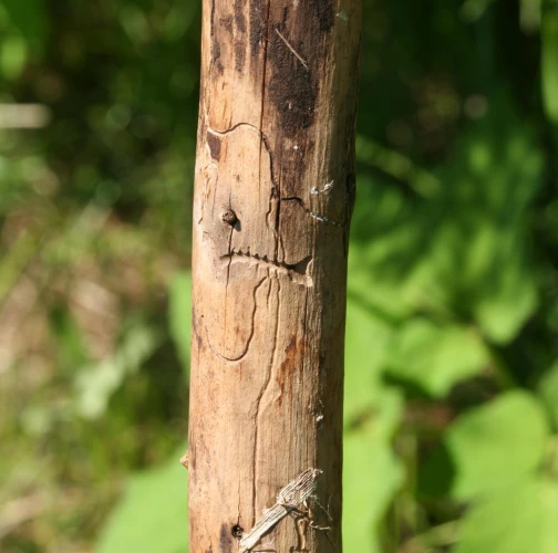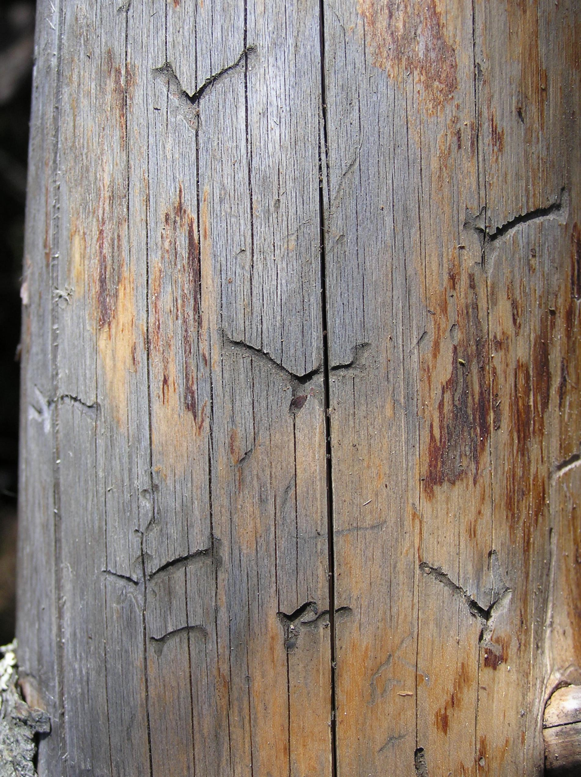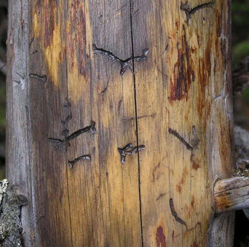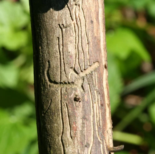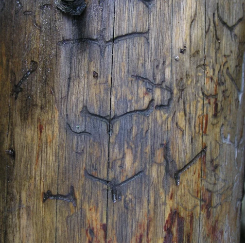 Imága vyhľadávajú tenké, odumierajúce smrekové vetvy, kde vyžiera typický fajkovitý požerok tvaru „V“.