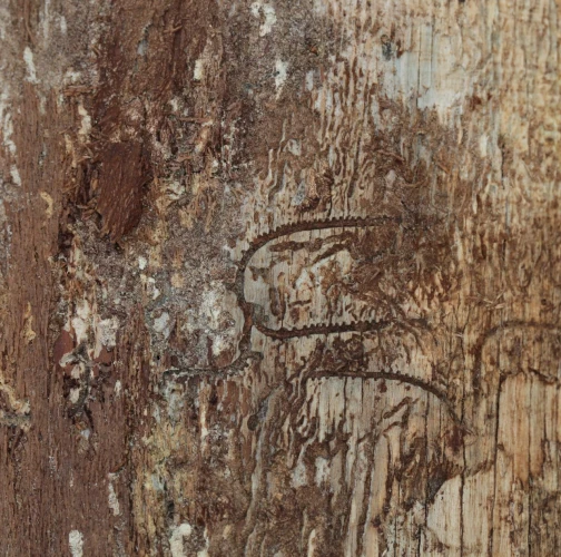 Požerok pod kôrou má tvar pravidelného X.
