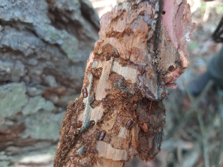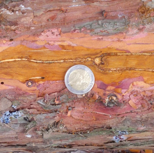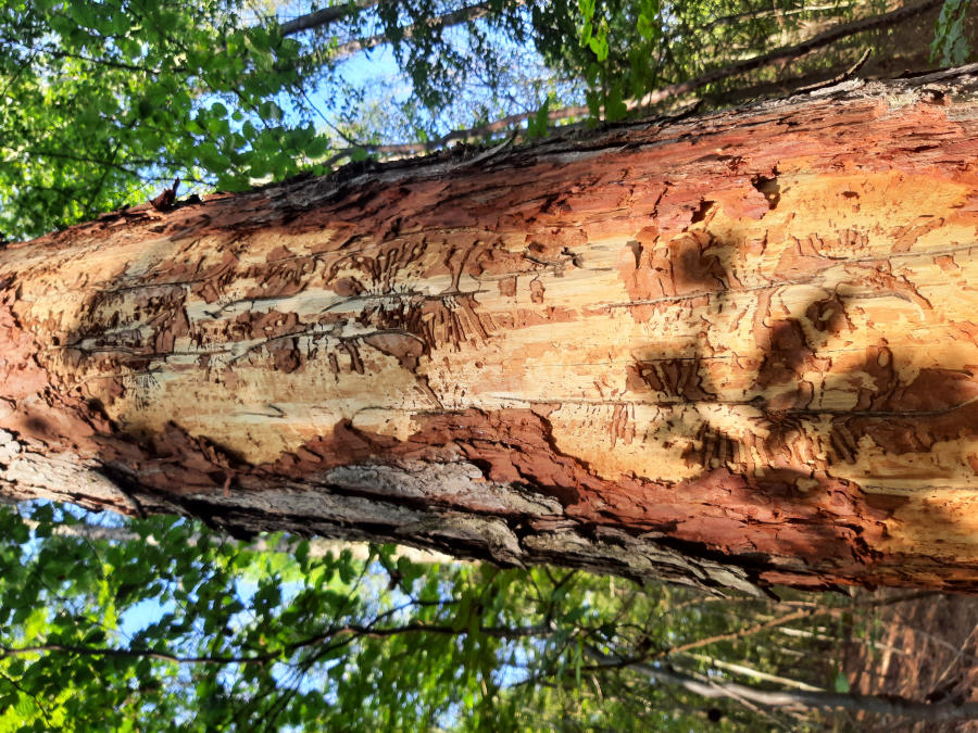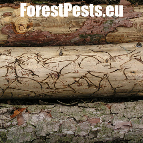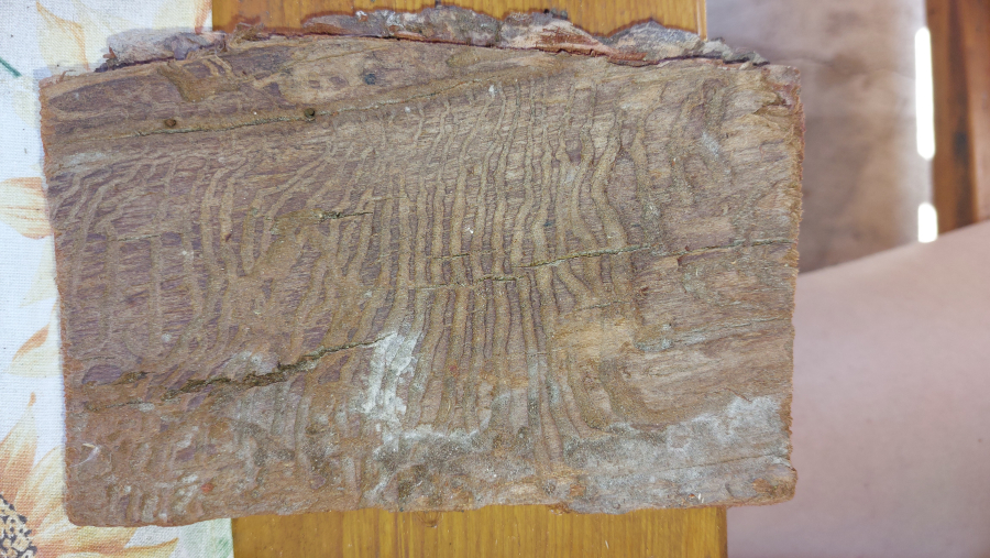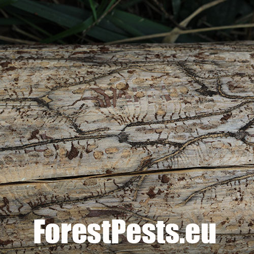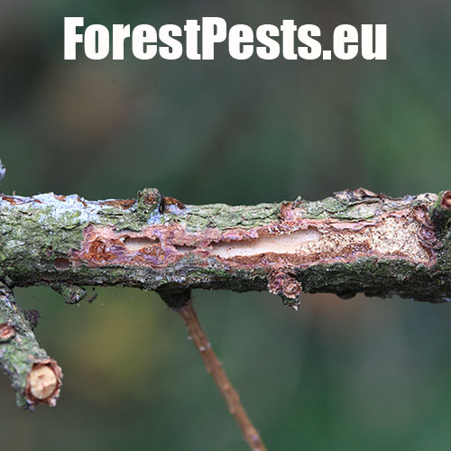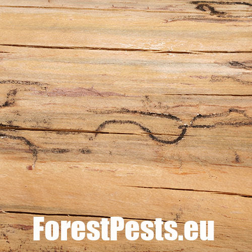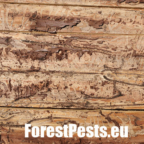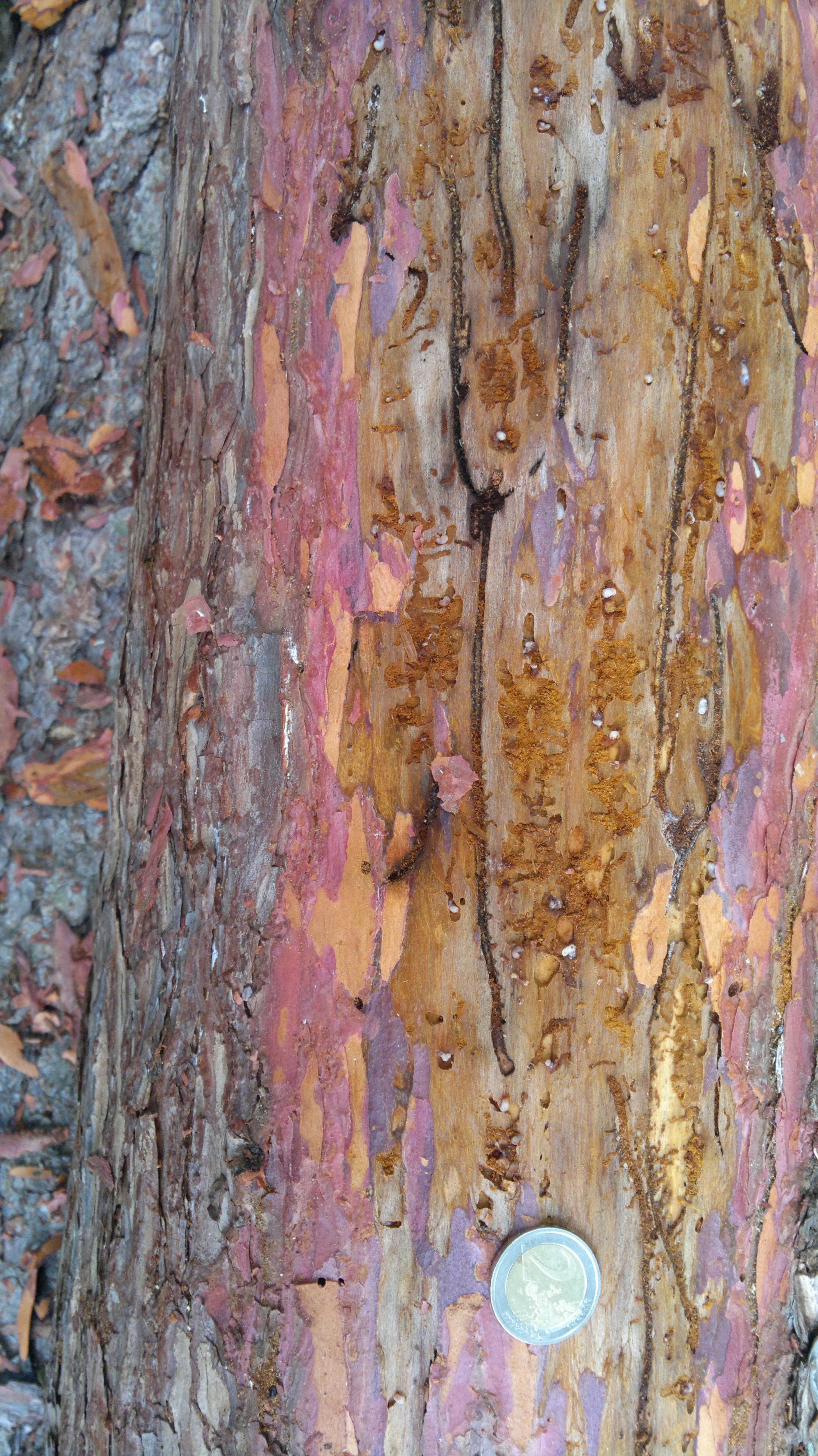 Požerok pod kôrou na kmeni.