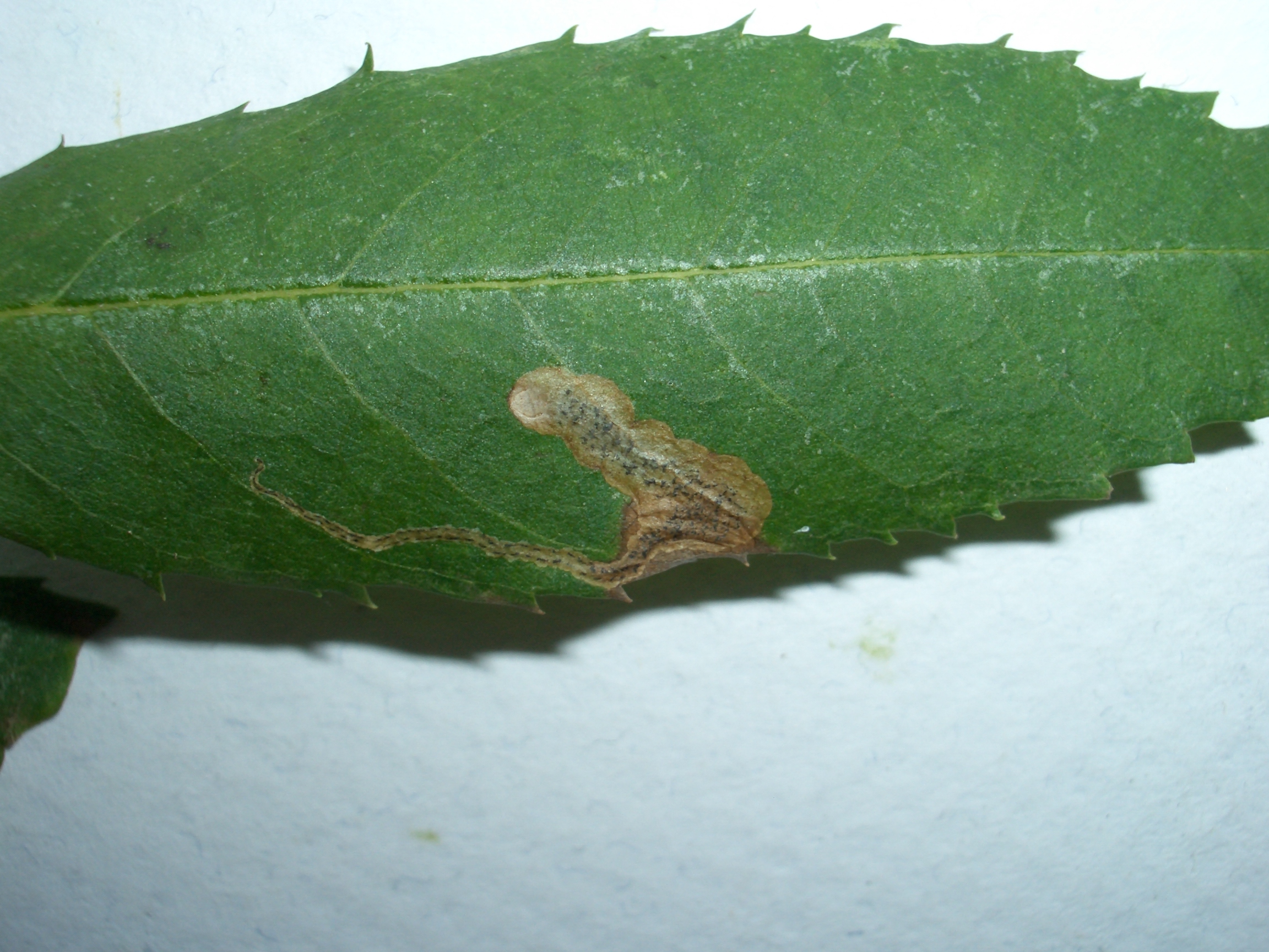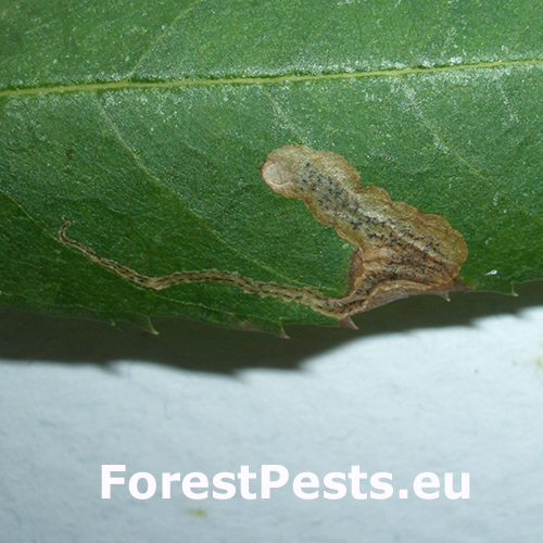 Larvy vytvárajú míny, ktoré sa začínajú ako jemné chodby a postupne sa rozširujú. Míny obsahujú fras usporiadaný do malých tyčiniek po stranách. Kuklenie prebieha mimo listov.