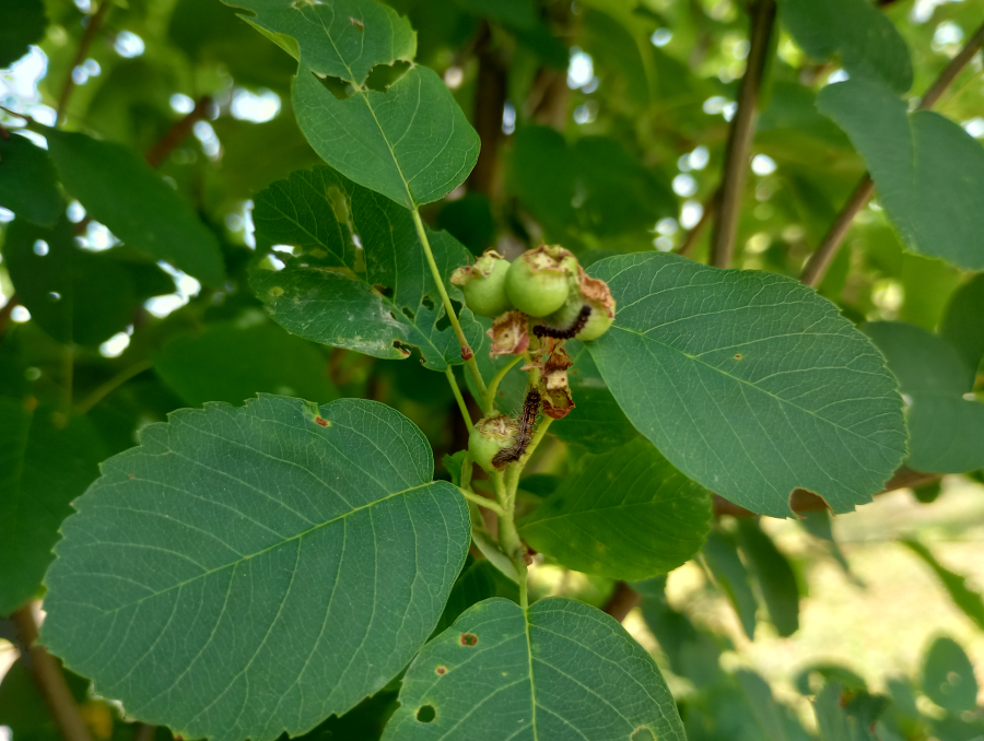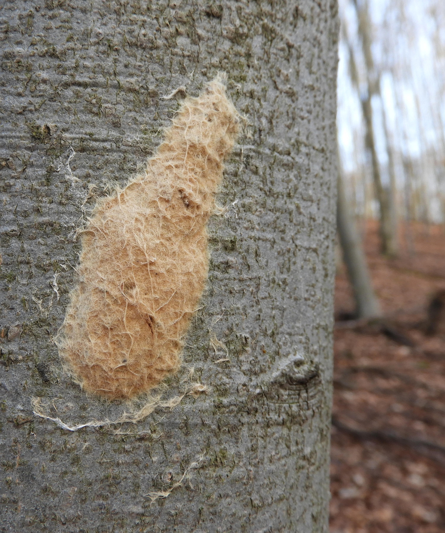 Žer na listoch. Prítomnosť chlpatých húseníc.
