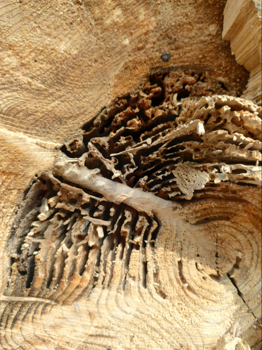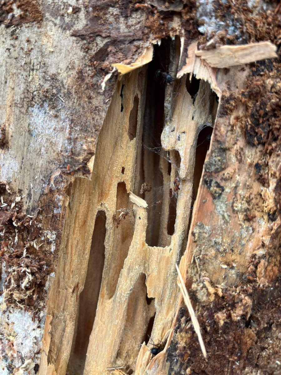 Diery v dreve. Prítomnosť mravcov v dreve.