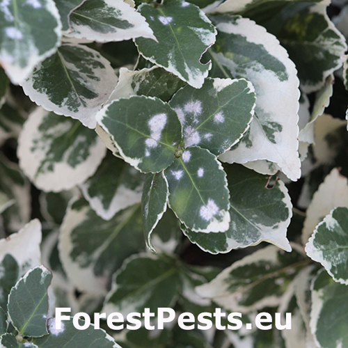 Múčnatka bršlenová Erysiphe euonymicola je hubový patogén zodpovedný za múčnatku na rastlinách rodu Euonymus, bežne známy ako bršlen. Toto plesňové ochorenie môže výrazne ovplyvniť estetickú hodnotu a zdravotný stav kríkov rodu Euonymus, ktoré sú obľúbenými okrasnými rastlinami záhrad a parkov.Erysiphe euonymicola sa darí v podmienkach, kde prevláda vysoká vlhkosť a mierne teploty. K prezimovaniu dochádza prostredníctvom mycélia v púčikoch alebo ako kleistotécia (pohlavné plodnice) v rastlinných zvyškoch.Odstráňte a zničte infikované zvyšky rastlín, aby ste znížili zdroje prezimujúceho inokula. Bršlen vysádzajte s primeraným rozostupom, aby ste zabezpečili dobrú cirkuláciu vzduchu, čo pomáha znižovať úroveň vlhkosti okolo listov. Aplikácia fungicídov môže byť tiež účinná v boji proti múčnatke. Výsadba odolných odrôd alebo druhov Euonymus môže byť efektívnou dlhodobou stratégiou. Zatiaľ čo úplná rezistencia je zriedkavá, niektoré odrody môžu vykazovať čiastočnú rezistenciu voči tejto hube.Estetická hodnota rastlín Euonymus je často kľúčovým hľadiskom pri úprave krajiny a múčnatka to môže výrazne znížiť tým, že vytvorí nevzhľadné lístie a zníži vitalitu rastlín. V komerčných škôlkach môže vážne zamorenie ovplyvniť predajnosť rastlín, čo vedie k ekonomickým stratám.