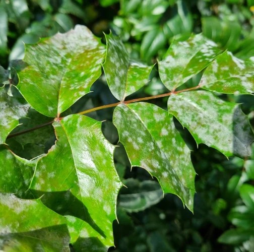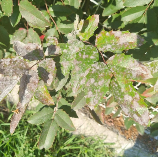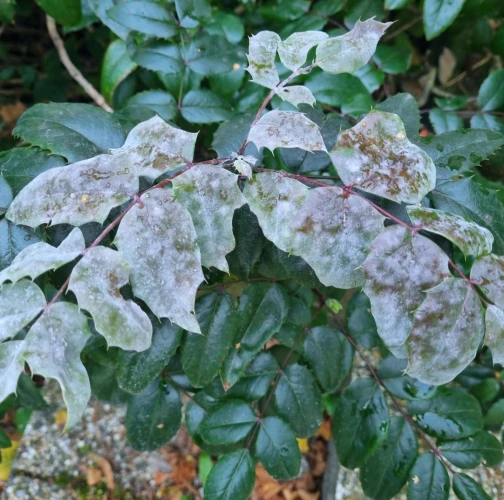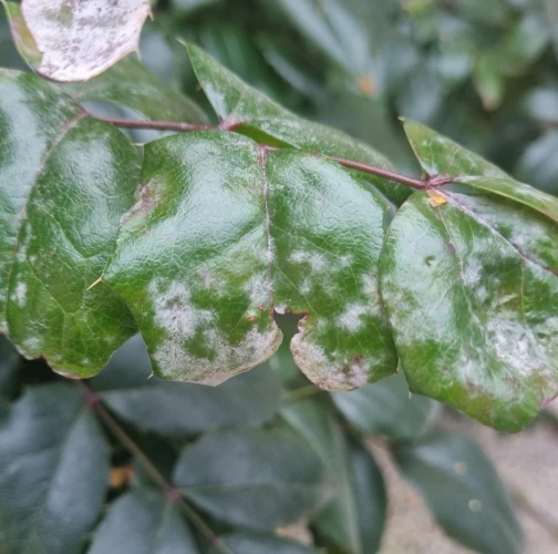 Múčnatka Erysiphe berberidis prezimuje na stálozelených mahóniách na listoch, kde sa udržuje aj počas zimy. Inak mycélium obyčajne prezimuje na opadaných listoch pod stromami. Počas prvej polovice leta sa tvorí konídiová fáza a konídie - spóry sú hlavným zdrojom šírenia infekcie počas rastového obdobia. Ideálne podmienky sú vyššia vzdušná vlhkosť, teplota nad 20 °C a mierny pohyb vzduchu. Nové mycélium sa v prvej polovici leta rozrastá aj na iných opadavých hostiteľoch (napríklad na dráči Berberis spp.) v podobe bielo múčnatého povlaku. Na konci leta a na jeseň je mycélium najvýraznejšie a často rastie aj na novo-vyrastených výhonkoch. Príznaky sú veľmi nápadné a len ťažko zameniteľné z iným ochorením.