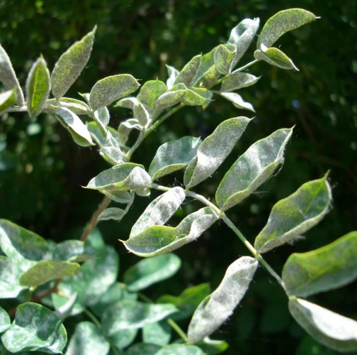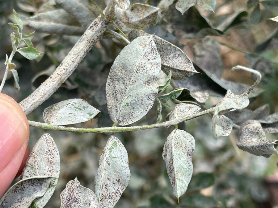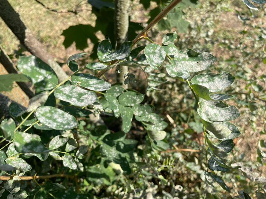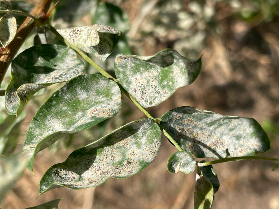 Biely povlak na spodnej strane listov.