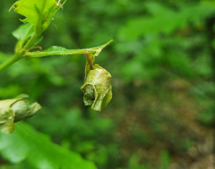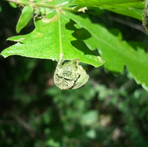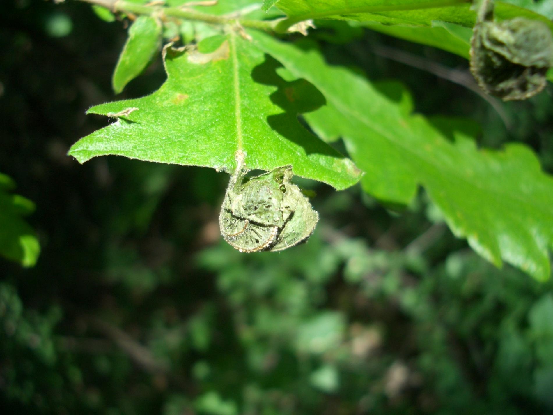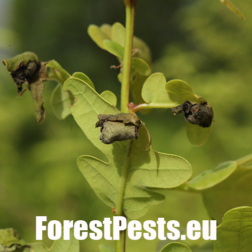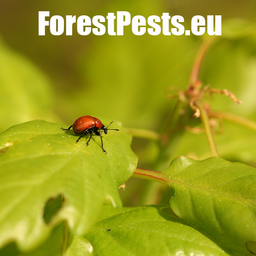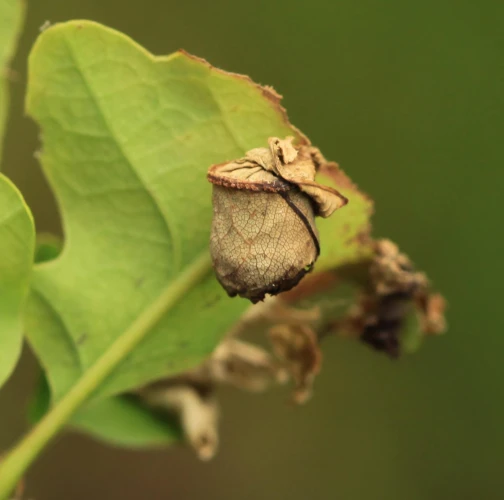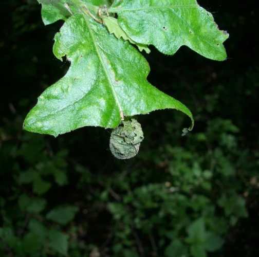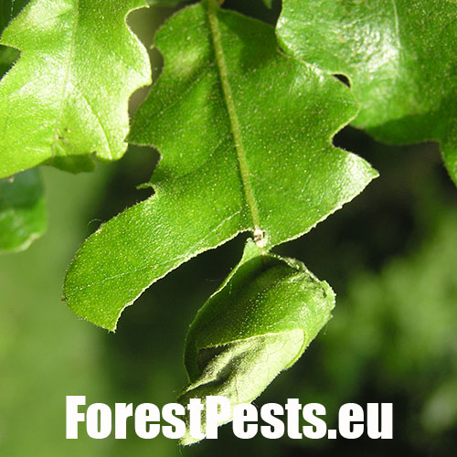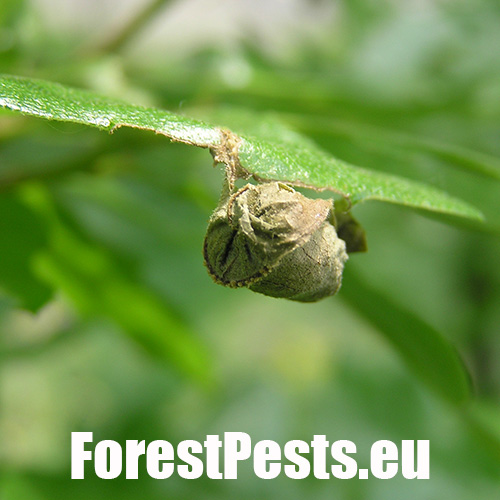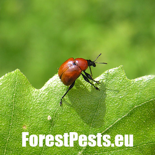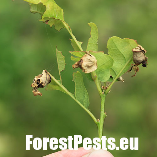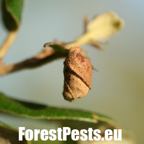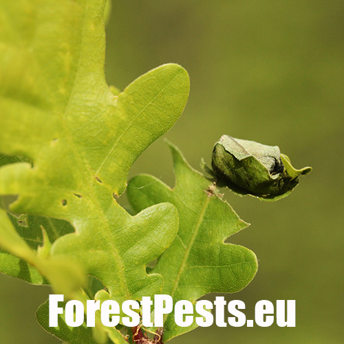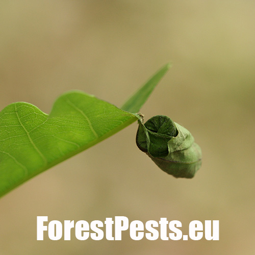 Červený akoby nalakovaný chrobák s čiernou hlavou (4,0 – 6,5 mm). Na listoch vytvára ťažko zameniteľné súdkovité zámotky, do ktorých kladie 1 – 3 vajíčka. Larva sa vyvíja vo vnútri tohto útvaru. Na jeseň zámotky spadnú na zem, larva v nich prezimuje a na jar sa kuklí. Hojný najmä na duboch. Poškodenie nebýva intenzívne.
