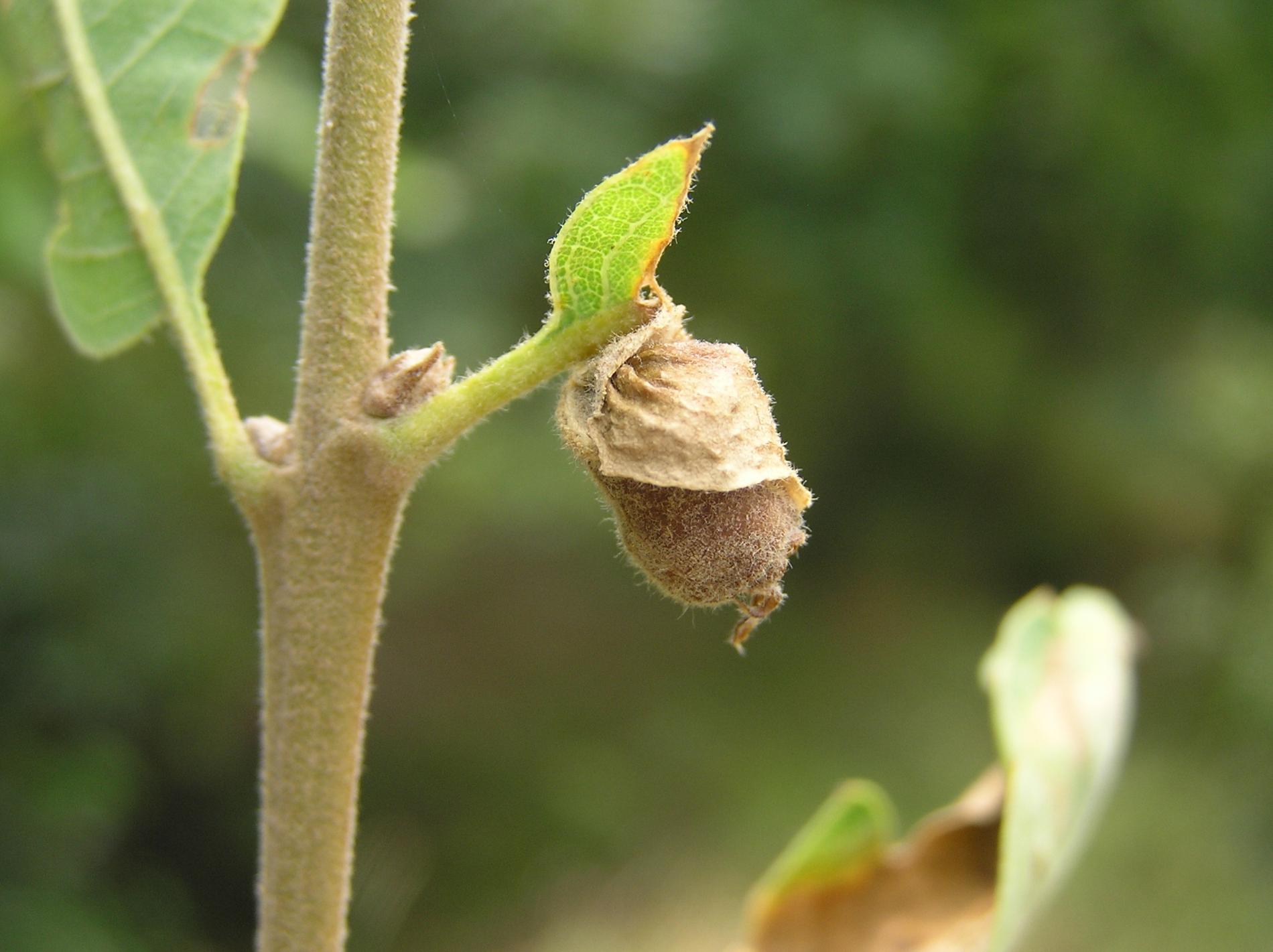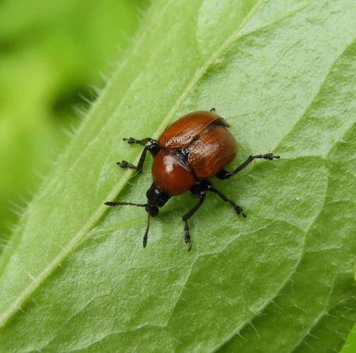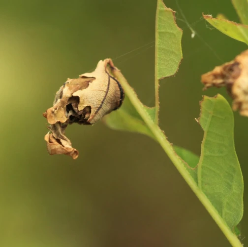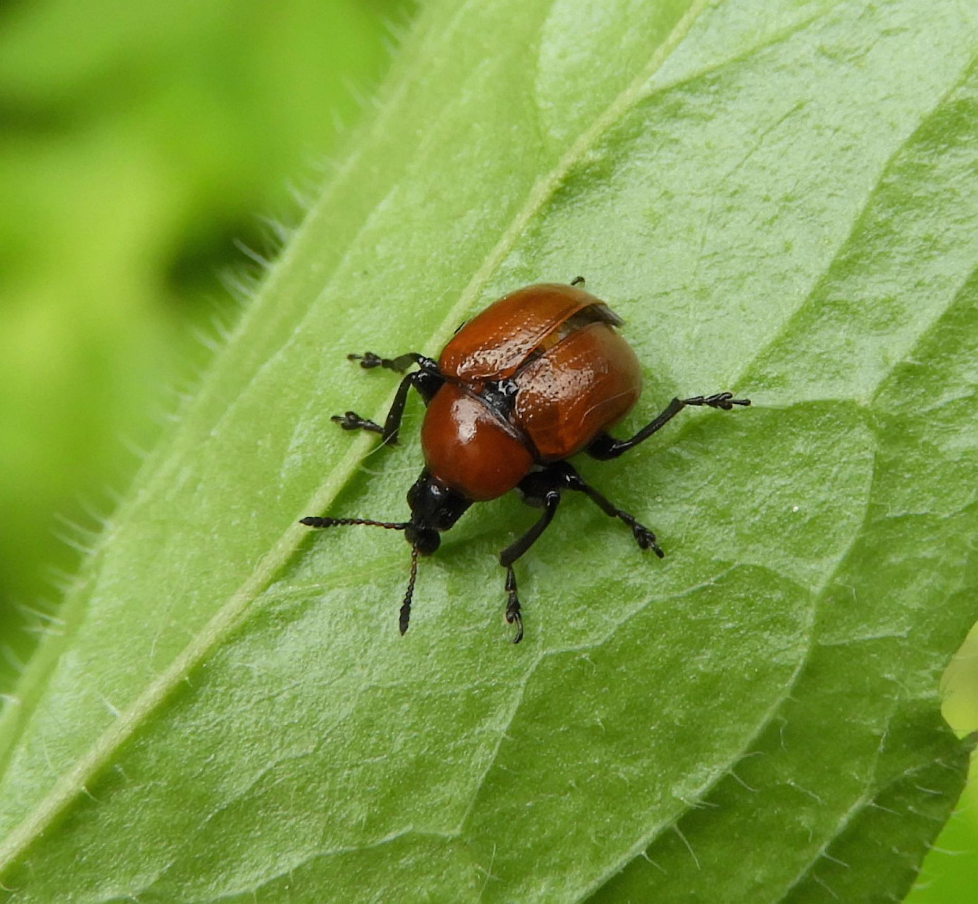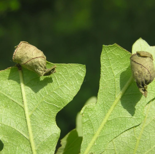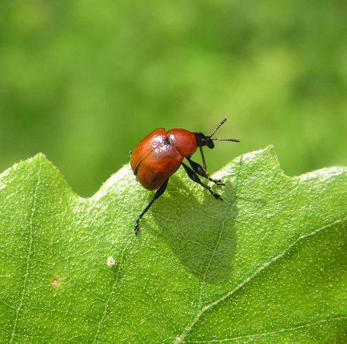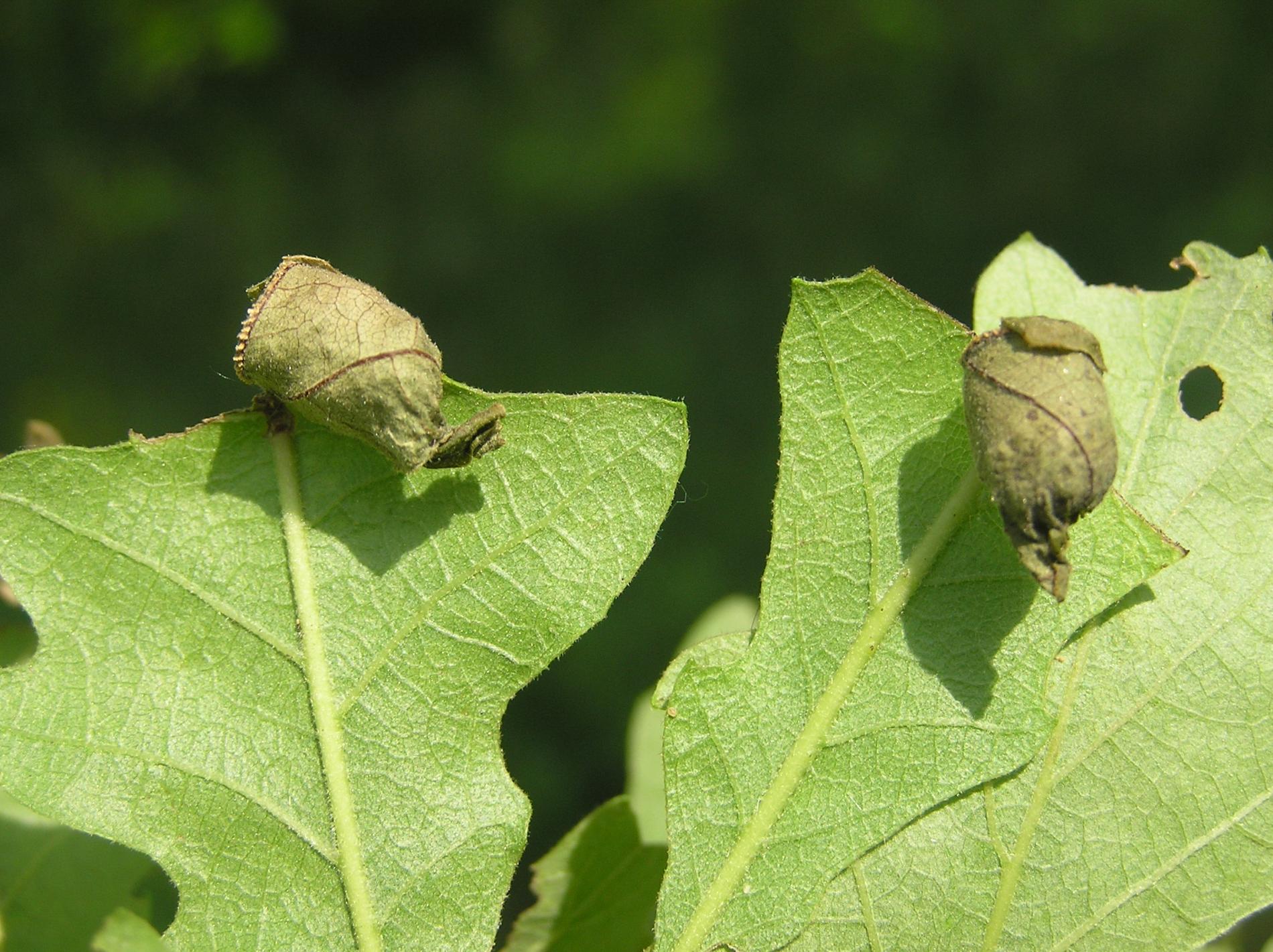Červený akoby nalakovaný chrobák s čiernou hlavou (4,0 – 6,5 mm). Na listoch vytvára ťažko zameniteľné súdkovité zámotky, do ktorých kladie 1 – 3 vajíčka. Larva sa vyvíja vo vnútri tohto útvaru. Na jeseň zámotky spadnú na zem, larva v nich prezimuje a na jar sa kuklí. Hojný najmä na duboch. Poškodenie nebýva intenzívne.