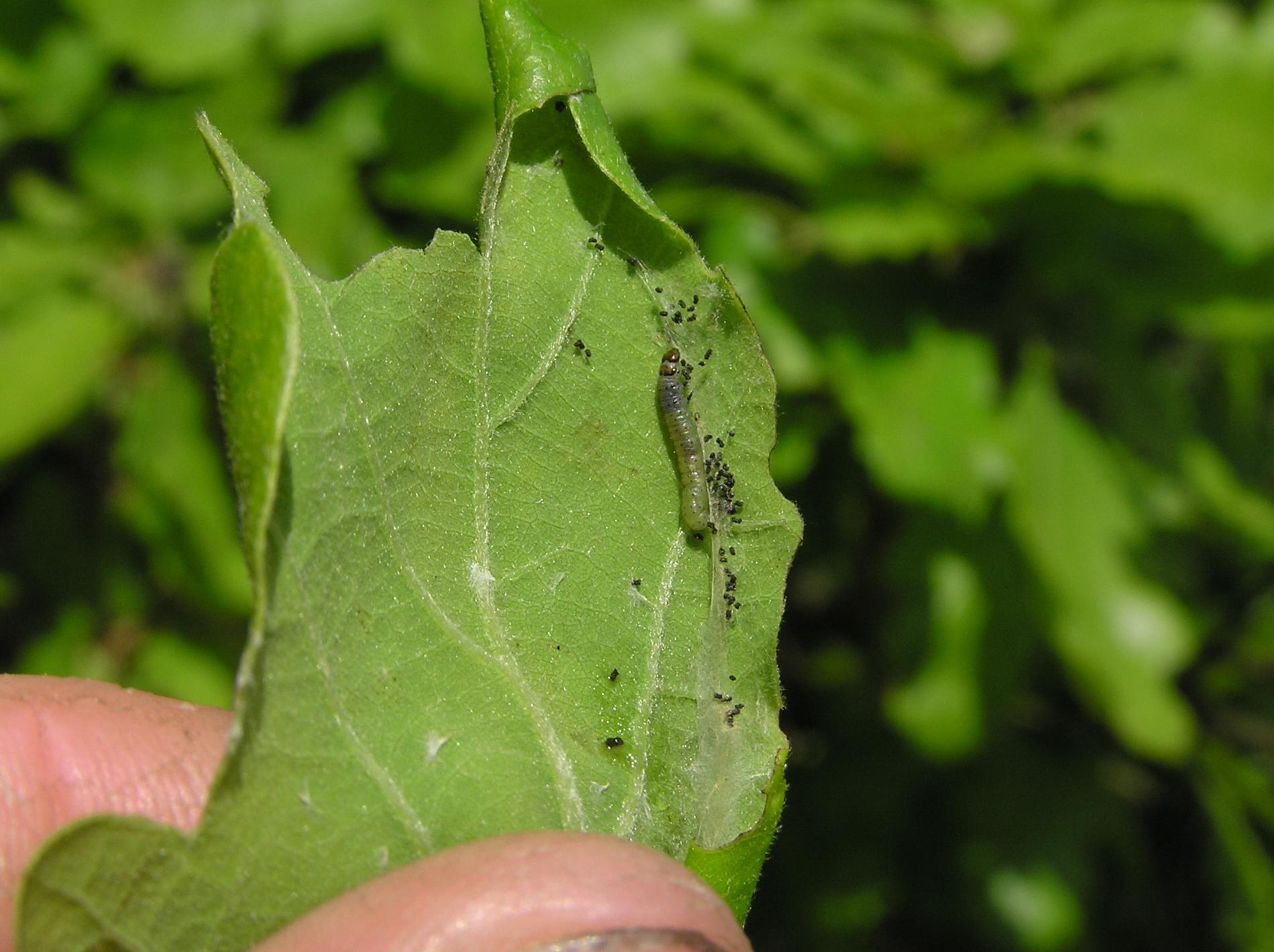 Listy zrolované do trubičky pozdĺž hlavnej žilky. Vo vnútri rúrky žije larva.