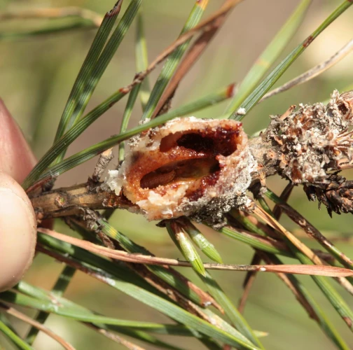 Na mieste žeru vyteká živica, z ktorej sa do jesene vytvorí hrča veľkosti hrachu.