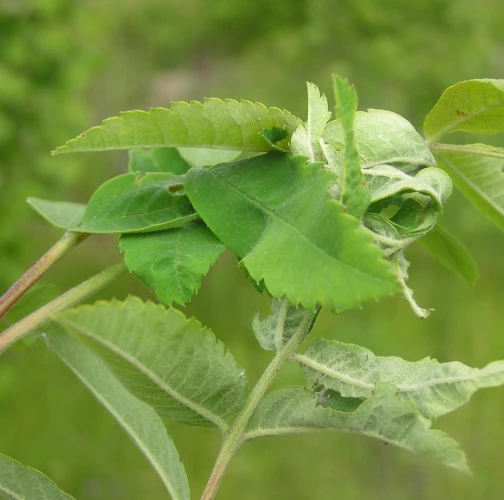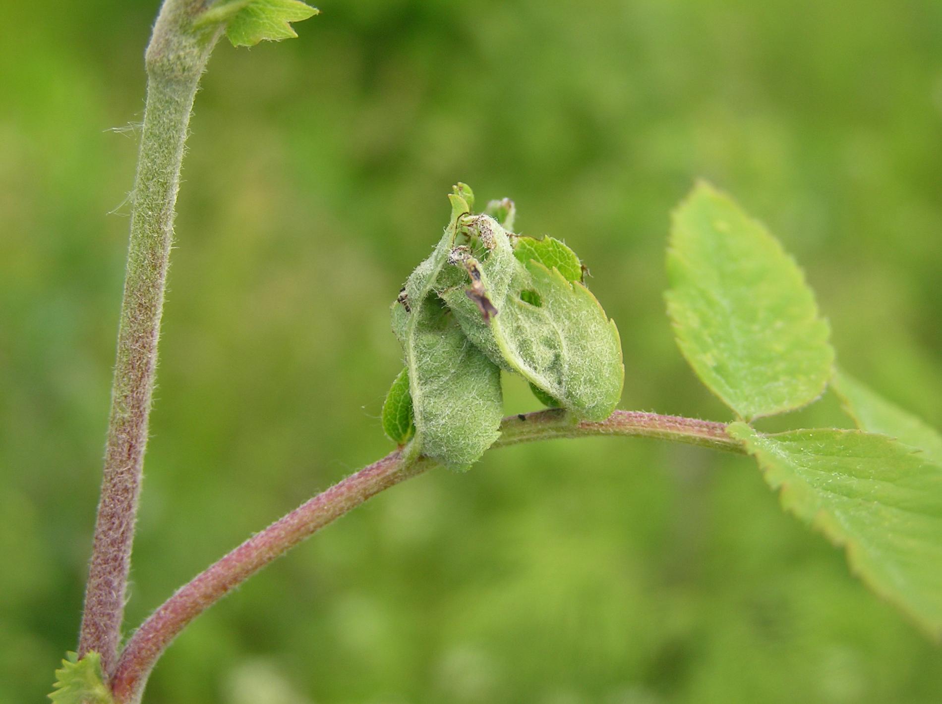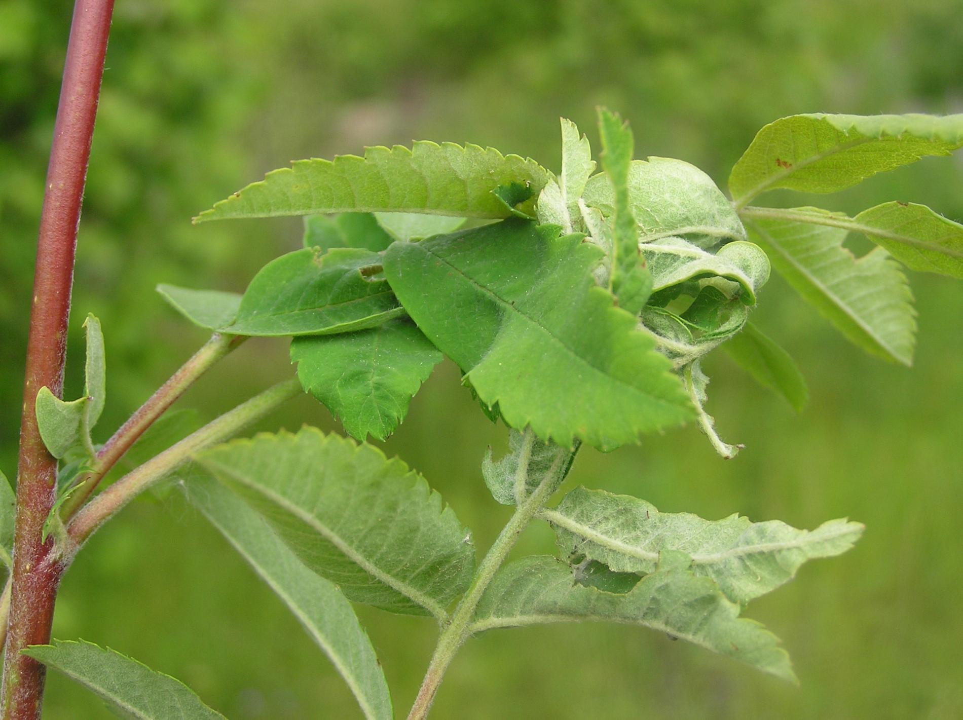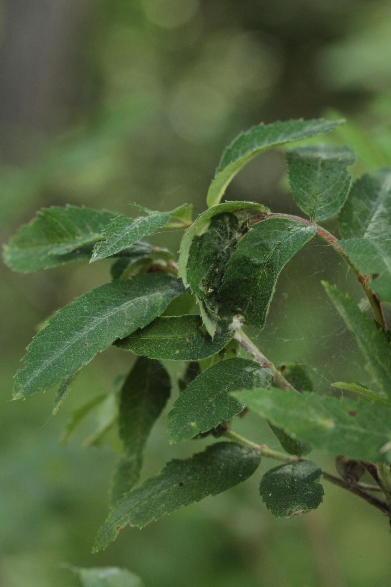 Stočené a spradené listy, larvy nachádzajúce sa vo vnútri.