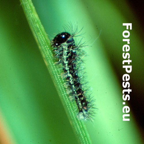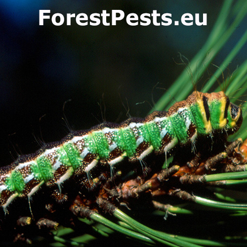 Veľké húsenice na ihličí alebo vetvičkách. Na konároch chýbajú ihlice.