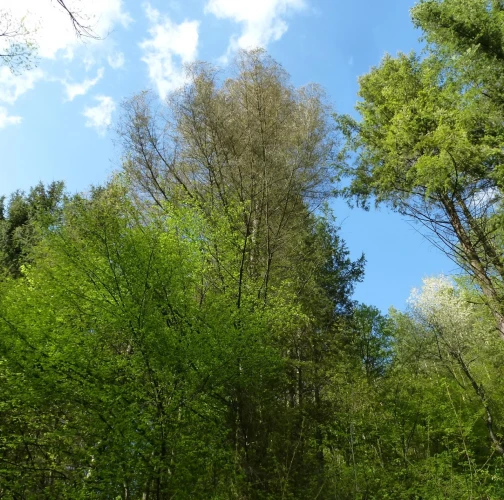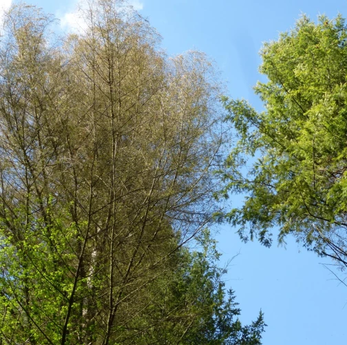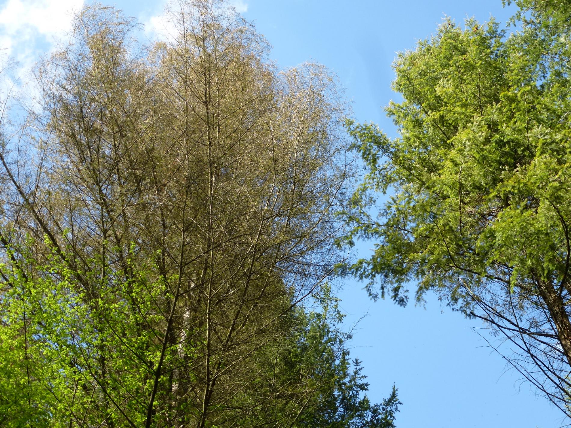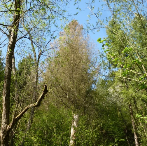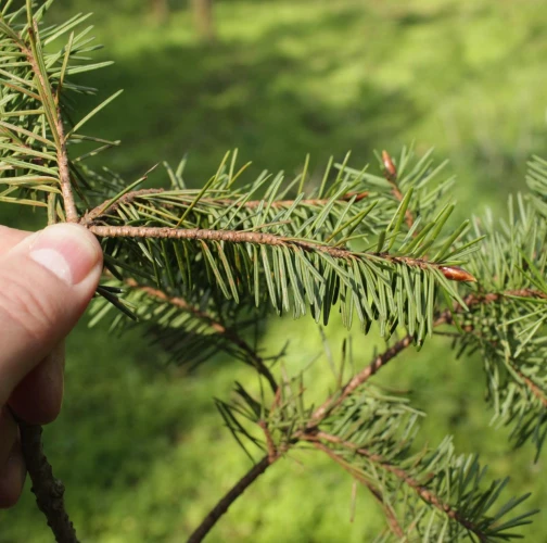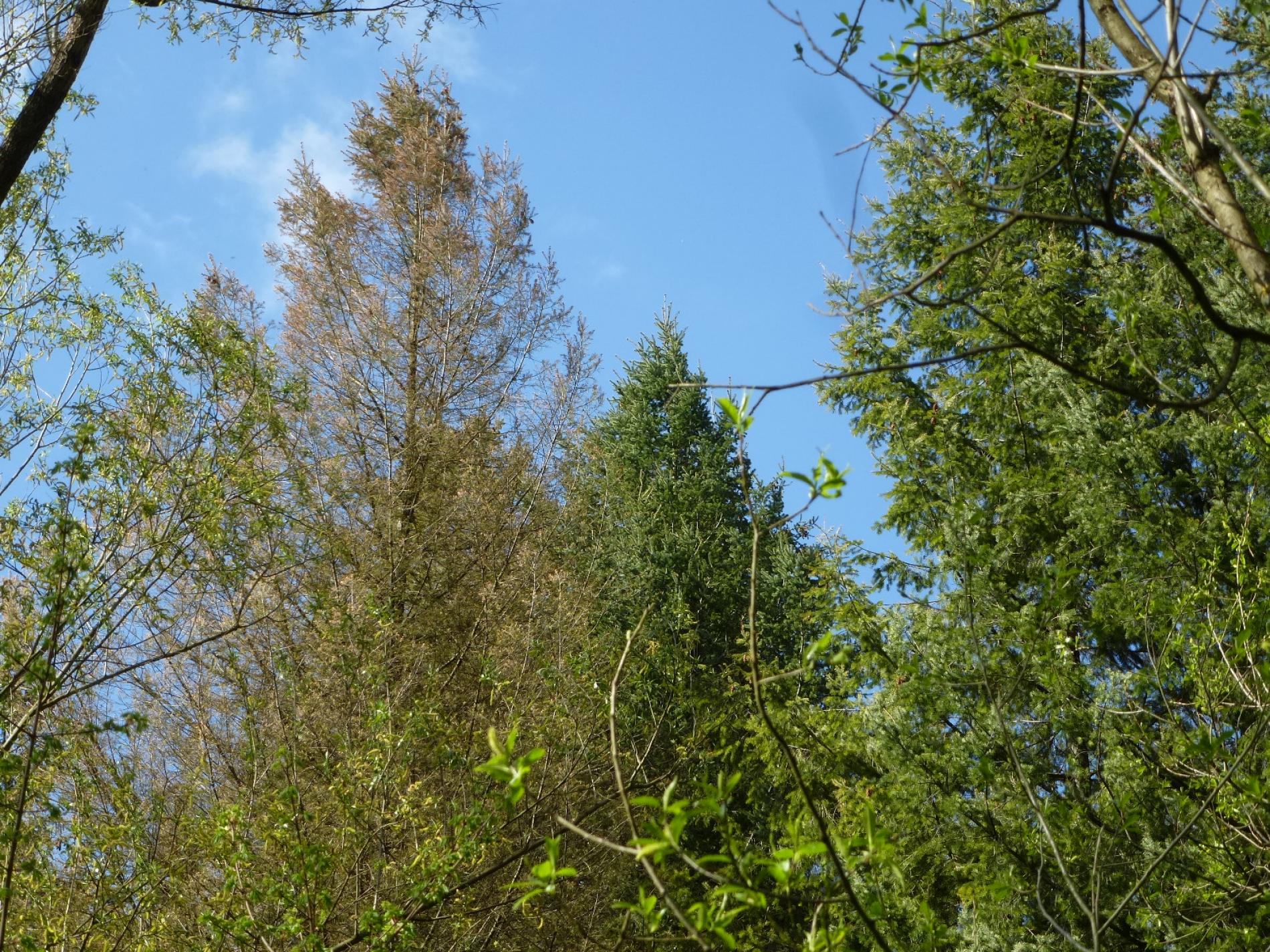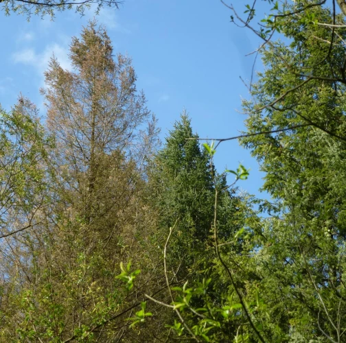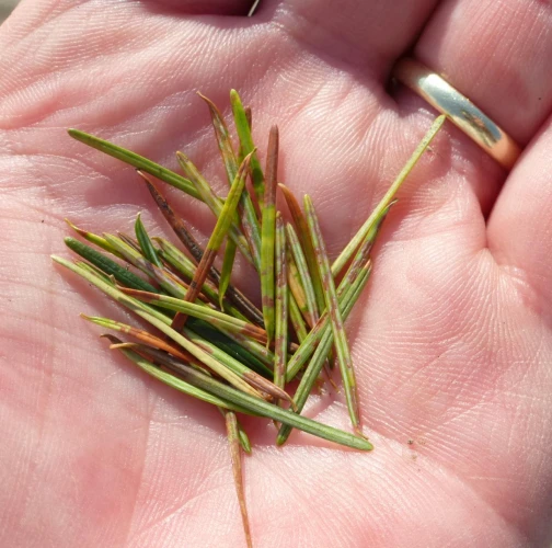 Žltnutie až červenanie najmladších ročníkov ihličia už od konca septembra do jarných mesaiacov nasledujúceho roka.