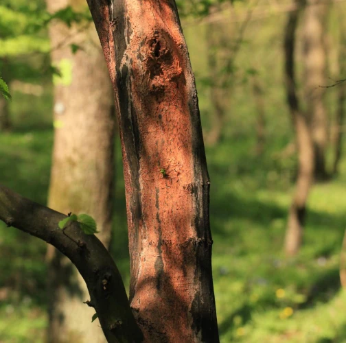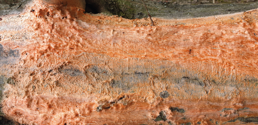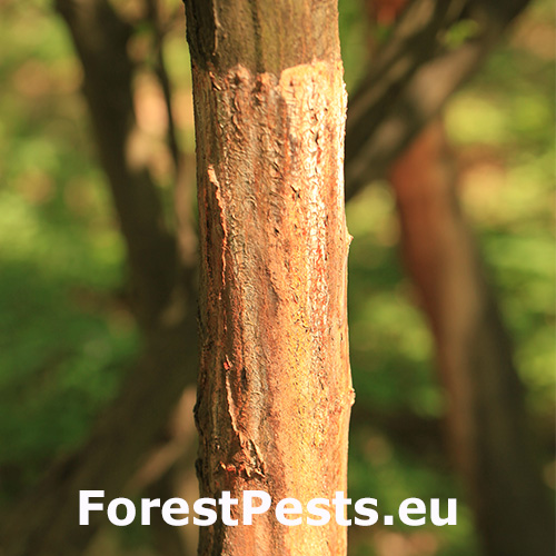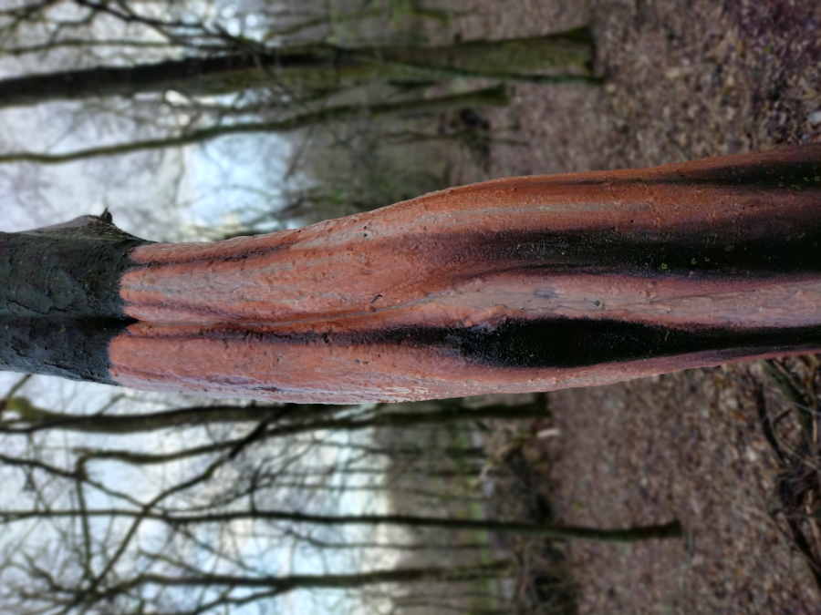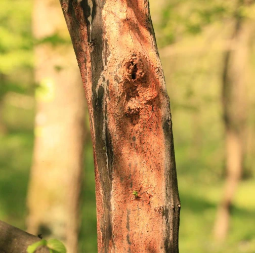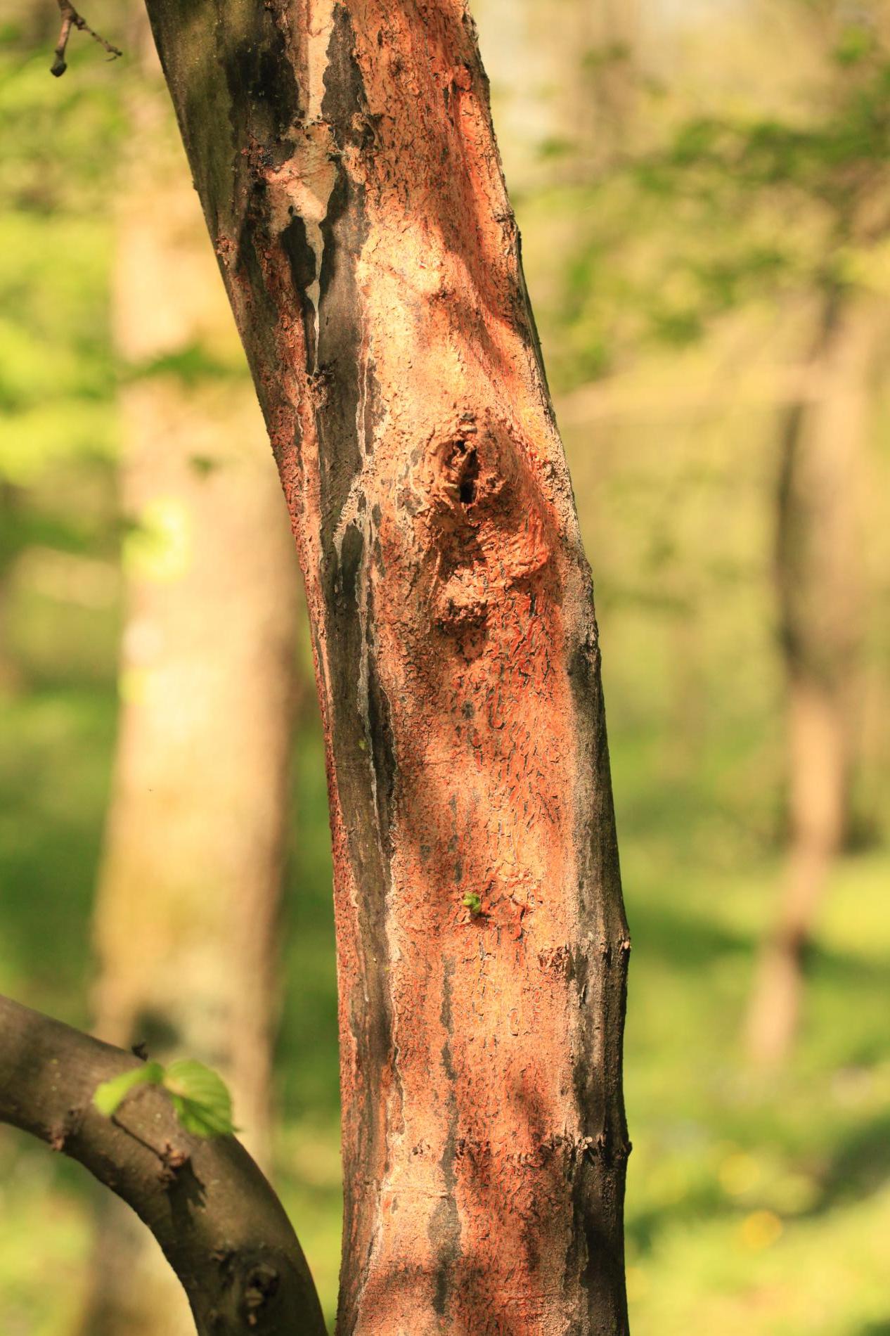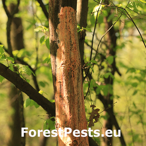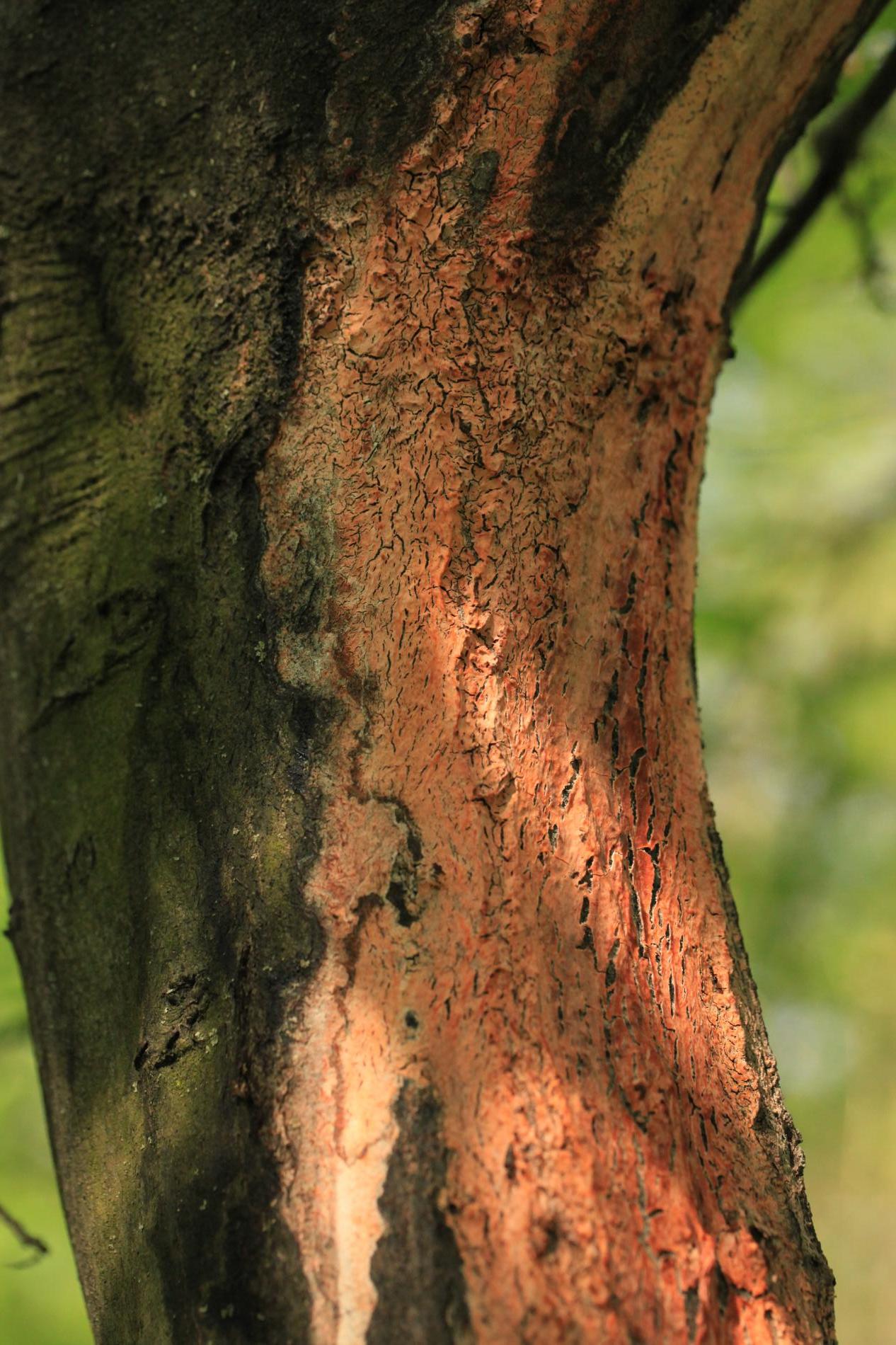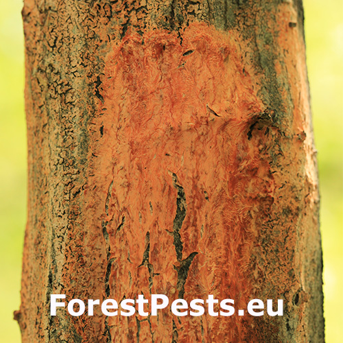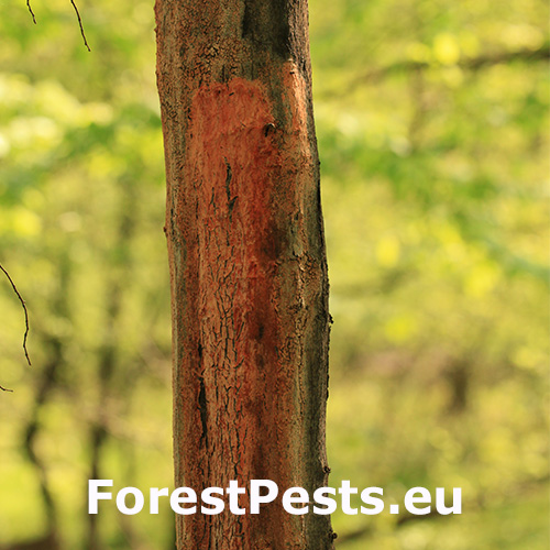 Oranžovo sfarbená kôra niektorých stromov, veľmi častý je tento jav napríklad na kmeni hrabov, je spôsobená baktériami z rodu Cryptococcus spp. Tieto baktérie napádajú miazgu, ktorú ronia stromy po poradení rôzneho typu. Miazgu ronia stromy najmä v jarných mesiacoch, keď začínajú pučať. Miazga obsahuje množstvo látok, cukrov a pod., ktoré kvasia a menia sa za pomoci uvedených baktérií často na oranžový povlak na kmeňoch stromov. Poranenie stromu z ktorého vyteká miazga môže mať rôzne príčiny, pričom na hrabe je časté poškodenie kôry ďatľom tak, ako to vidno na niektorých obrázkoch. Tento jav zanikne hneď ako sa rana, z ktorej vyteká miazga zahojí.