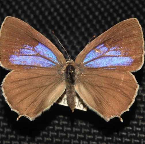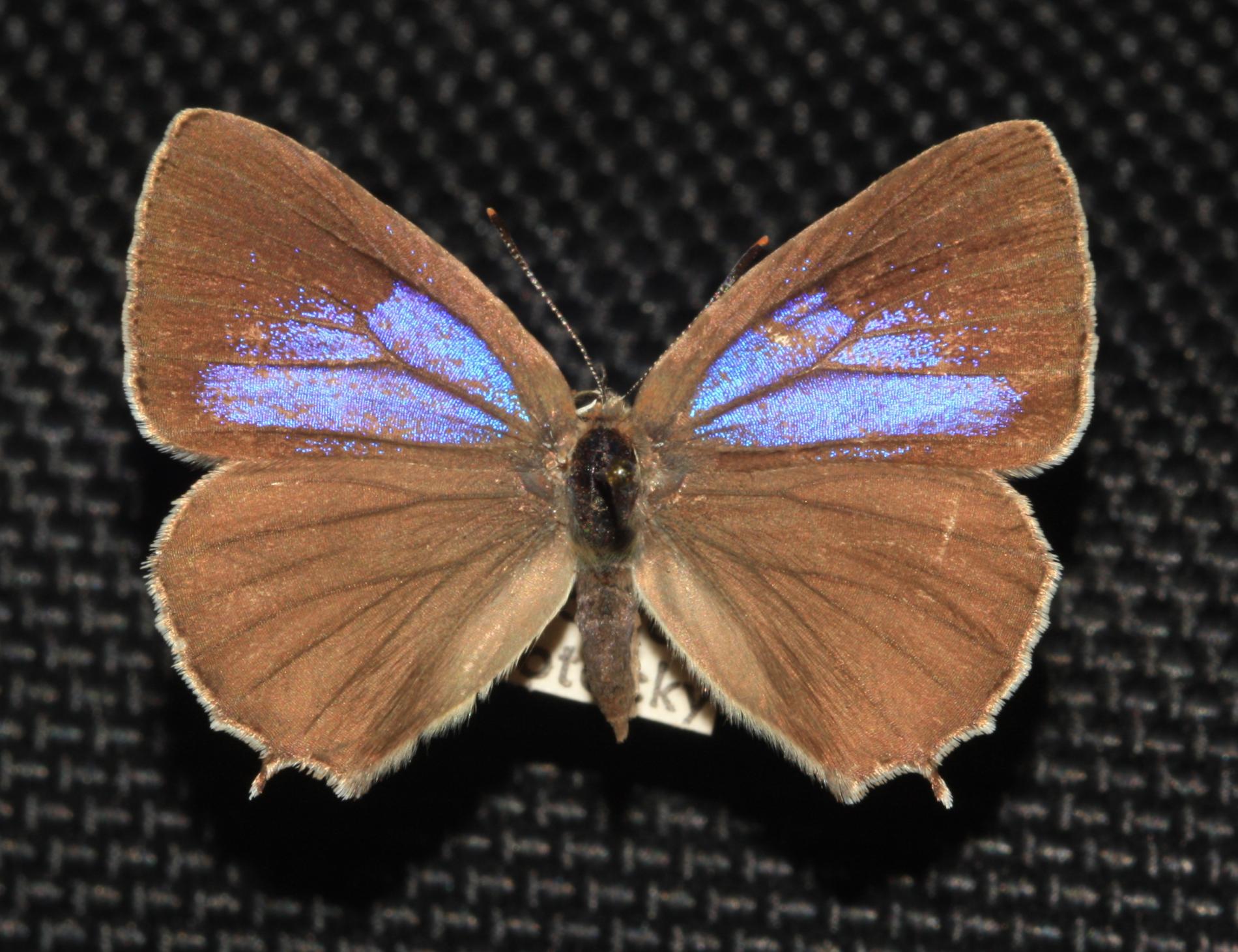 Lesklý modro sfarbený motýľ, ktorý rýchlo lieta v horných častiach korún stromov. Na obrube zadných krídiel má malé ostrôžky. Žije od júla do augusta. Húsenica má veľmi netypický tvar. Je oválna a podobá sa skôr na malého slimáka bez ulity ako na húsenicu motýľa. Je husto ochlpená, okrová. Len ťažko rozpoznať jej prednú a zadnú časť tela. Pohybuje sa veľmi pomaly. Žije voľne na listoch od mája do júna.