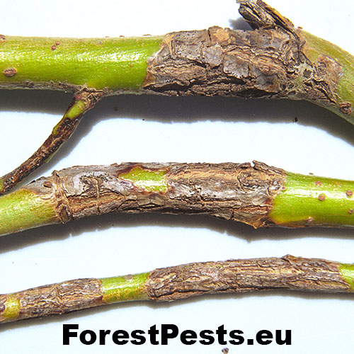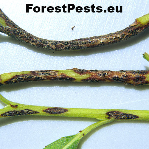 Huba spôsobuje drobné nepravidelne čiernohnedé škvrny listov a výhonkov, ako aj rakovinové rany na zelenej kôre konárikov.