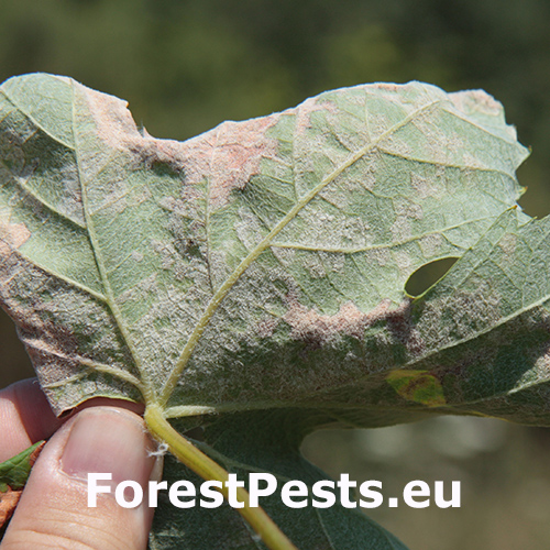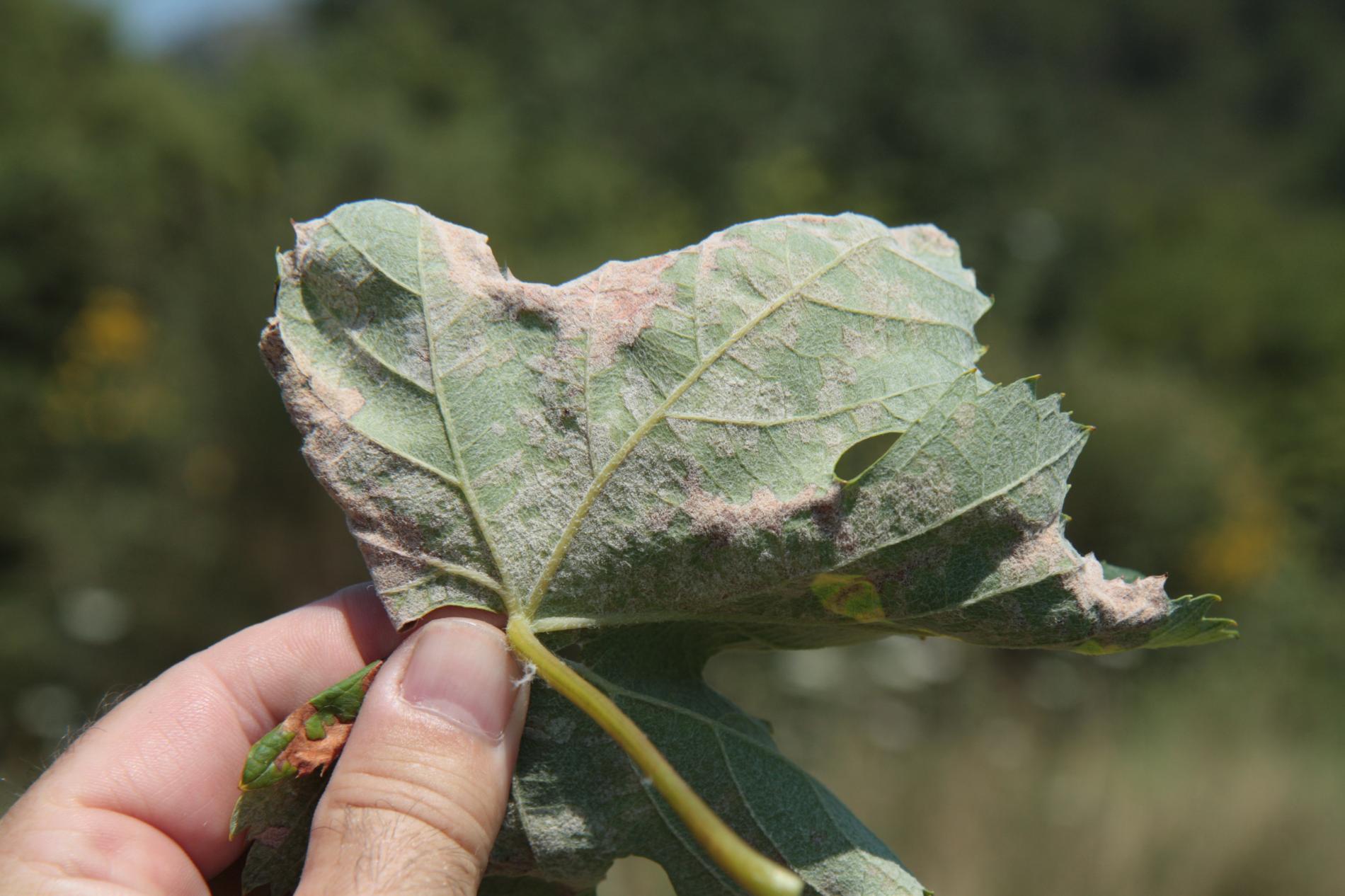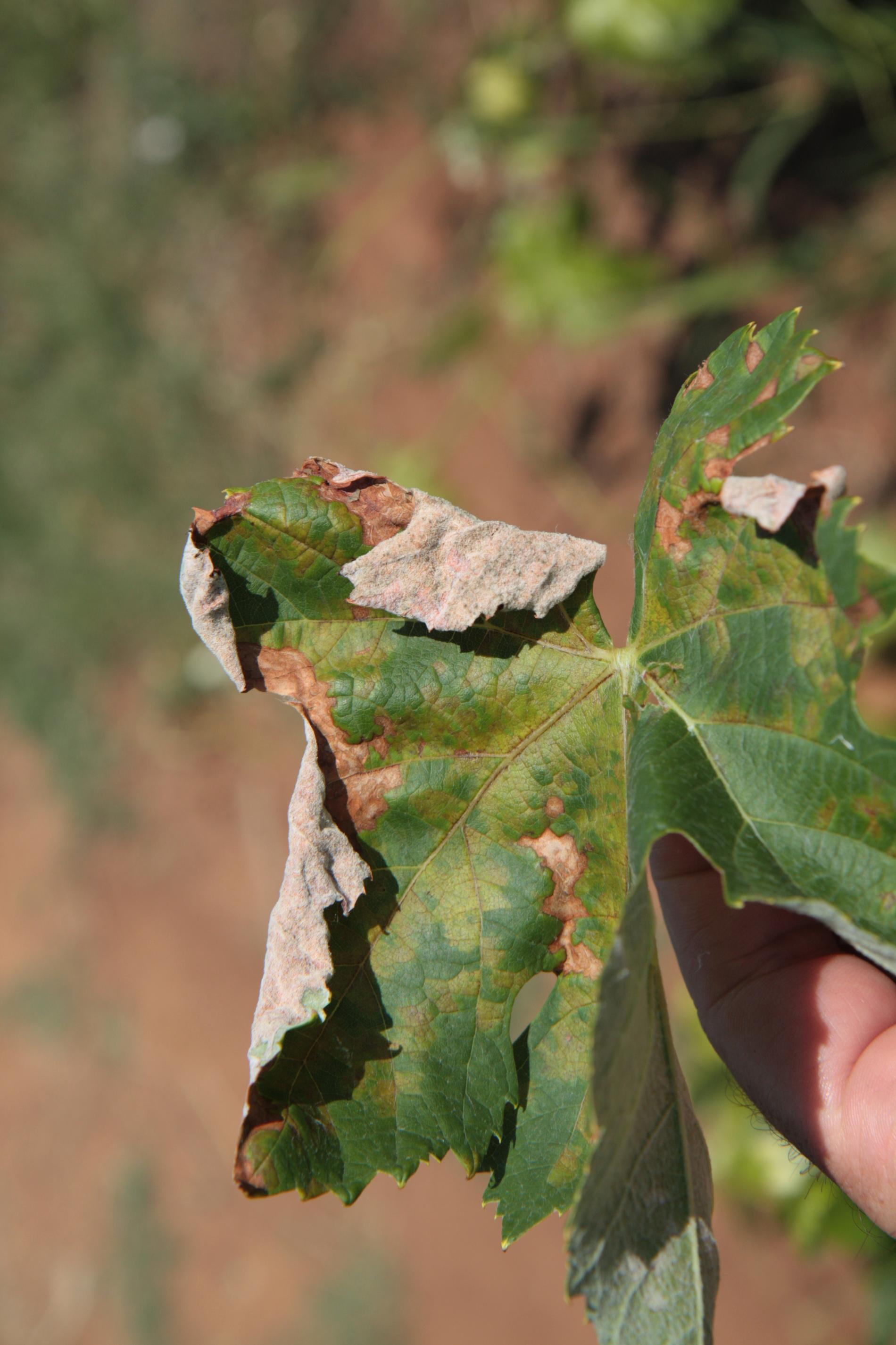 Hlavným príznakom peronospóry je výskyt žltých až hnedých škvŕn na hornej strane listov, často označovaných ako "olejové škvrny". Na spodnej strane listov, najmä vo vlhkých podmienkach, sa objavuje biely, plesnivý povlak. Huba môže tiež infikovať mladé bobule, ktoré zhnednú, scvrknú sa a predčasne opadnú. Infikované bobule strácajú trhovú hodnotu a sú nevhodné na výrobu vína. Silné infekcie môžu viesť k predčasnému opadávaniu listov, čím sa znižuje fotosyntéza a oslabuje vinič. Postupom času to môže negatívne ovplyvniť výnos hrozna a celkovú produktivitu vinice. V porovnaní s tým, múčnatka prosperuje v suchých a teplých podmienkach a vytvára biely práškový povlak, hlavne na horných plochách listov a plodov. Naopak, peronospóra uprednostňuje chladné a vlhké podmienky, čo vedie k žltým olejovým škvrnám na hornej strane listov a bielemu povlaku na spodnej strane.