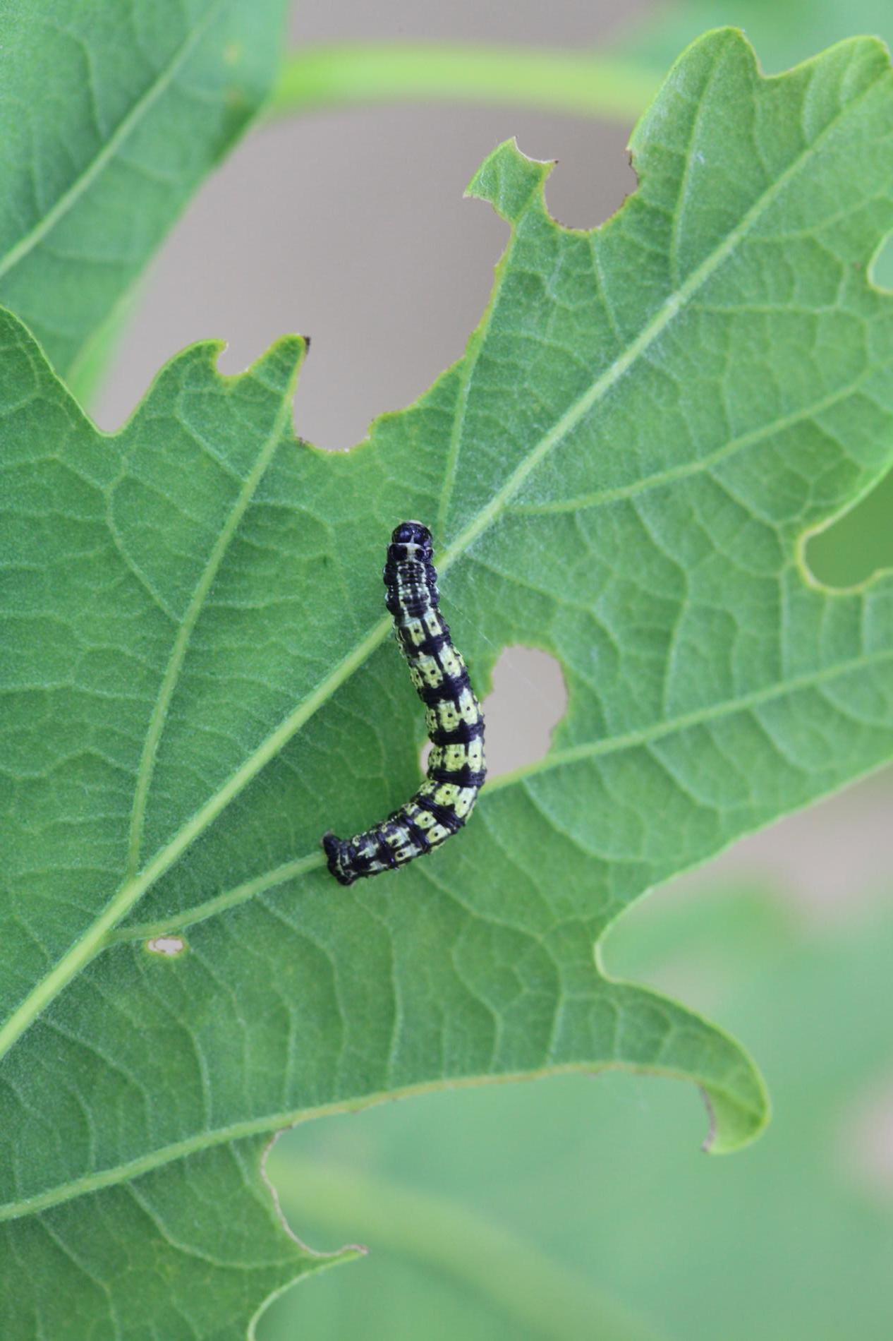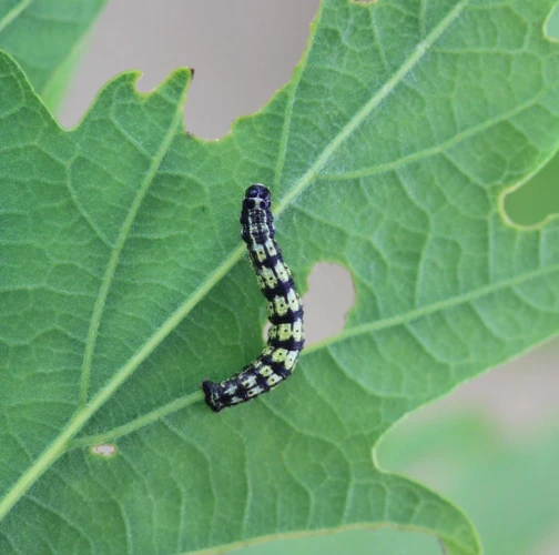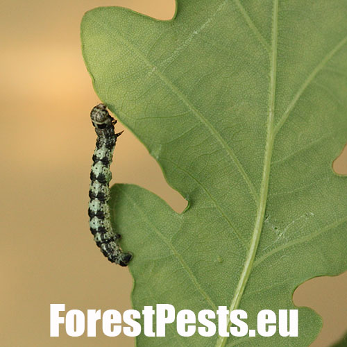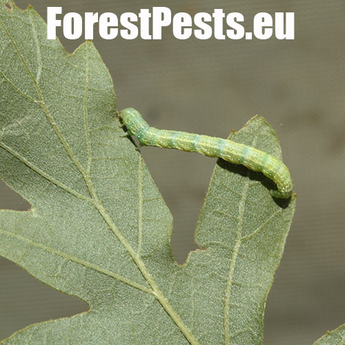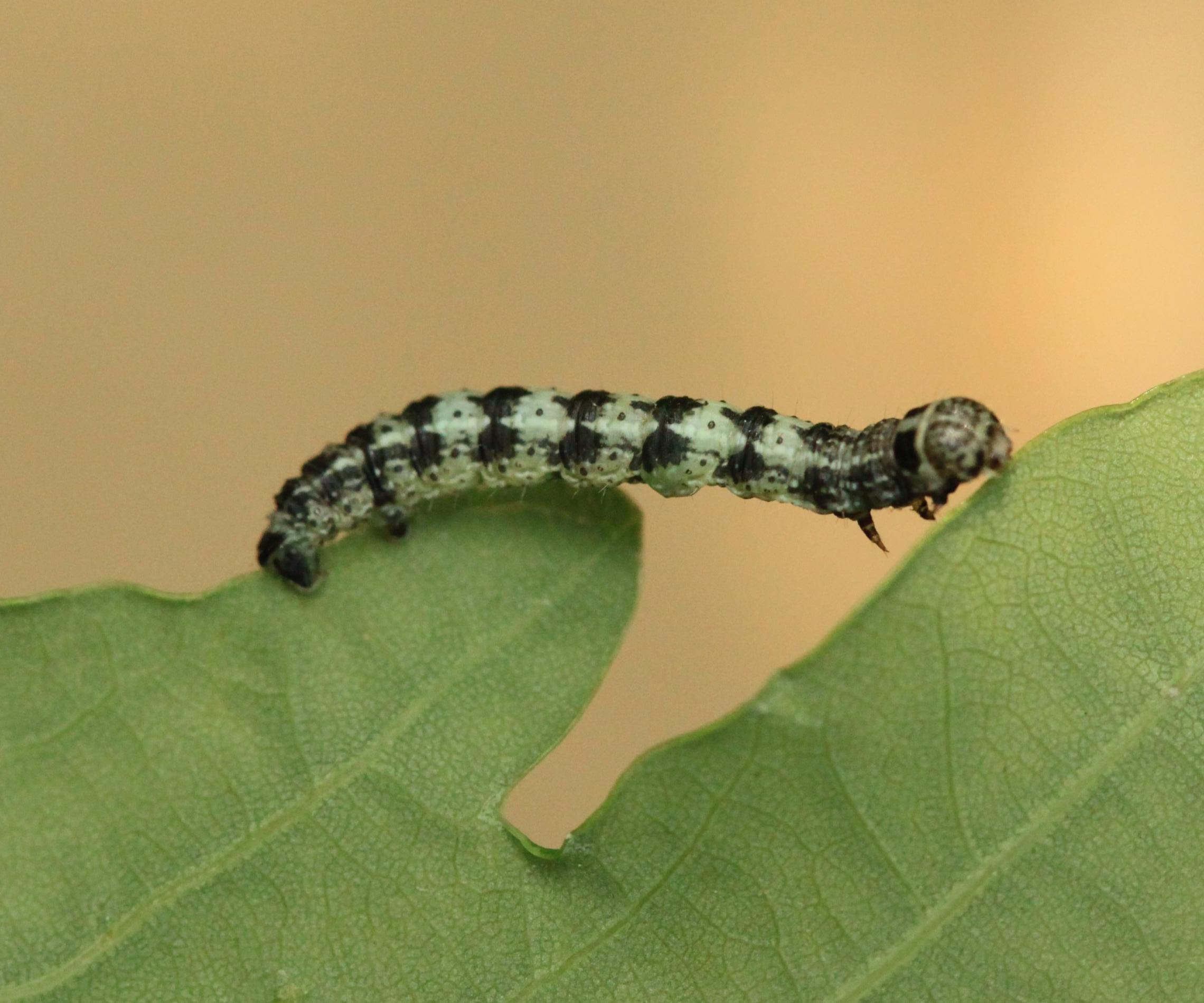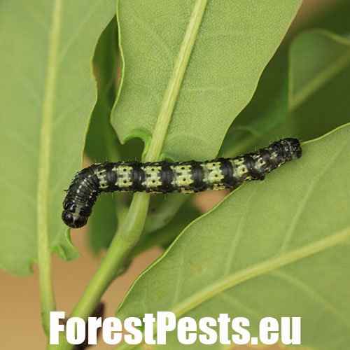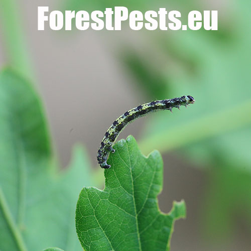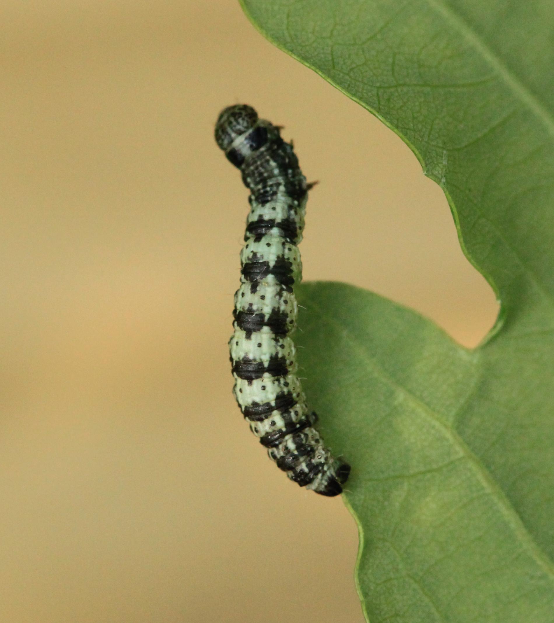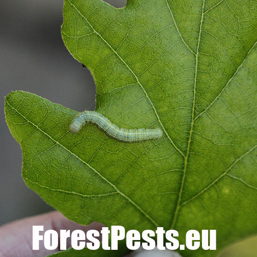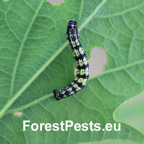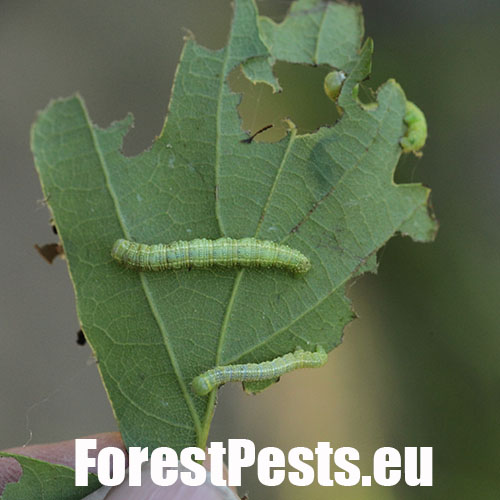 Žer v horných častiach koruny. V listoch sú diery, prípadne sú ožrené z bokov. Na listoch sú prítomné húsenice ktoré sa pohybujú typickým -piadivkovitým - pohybom.