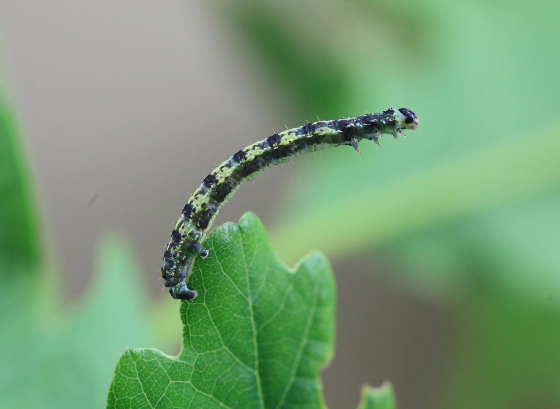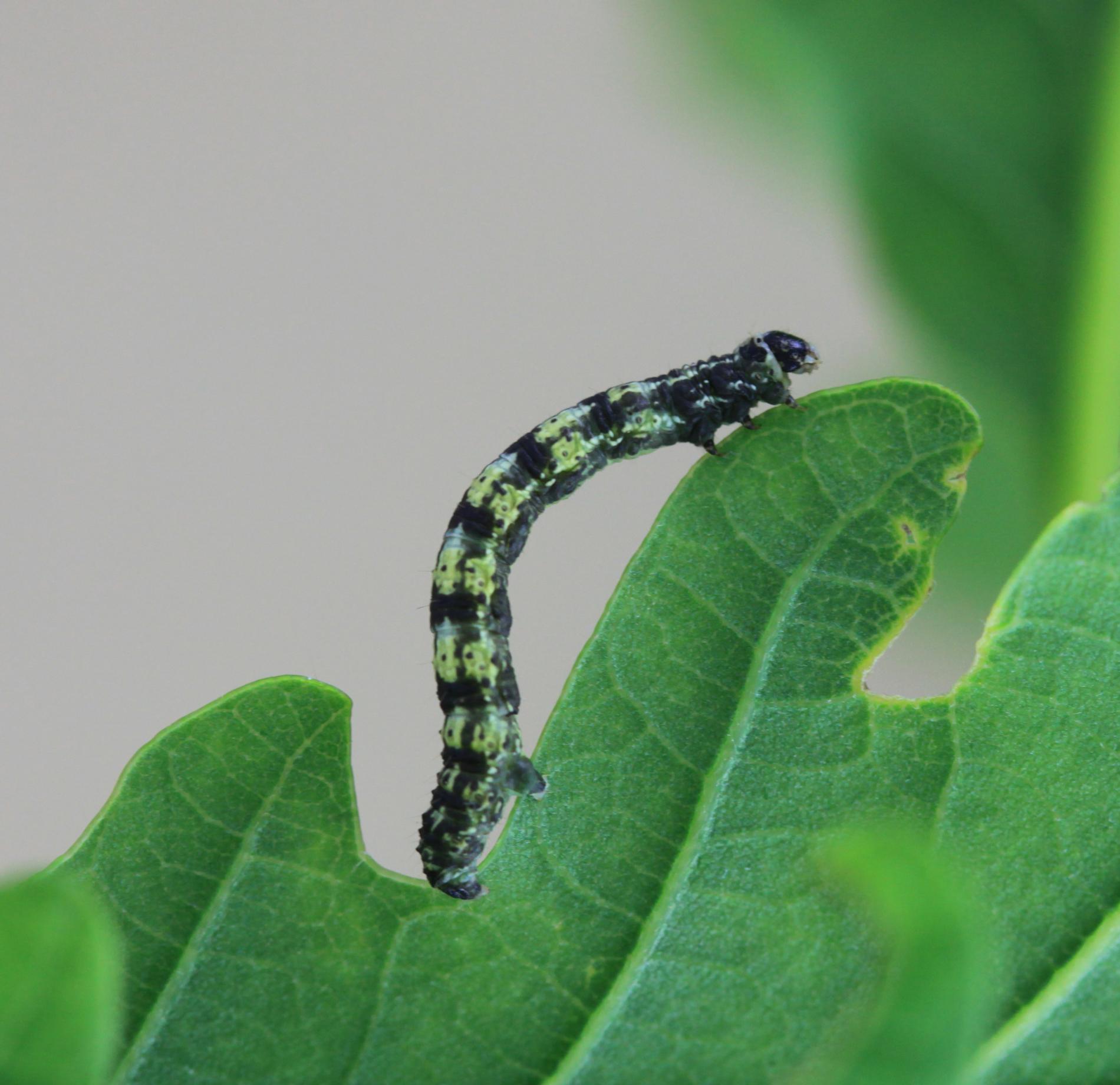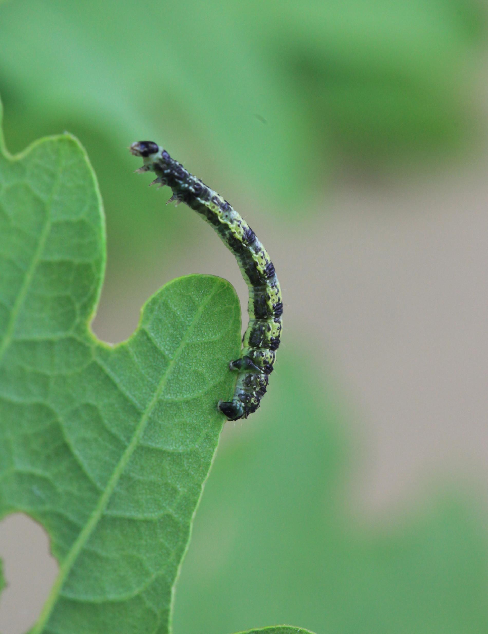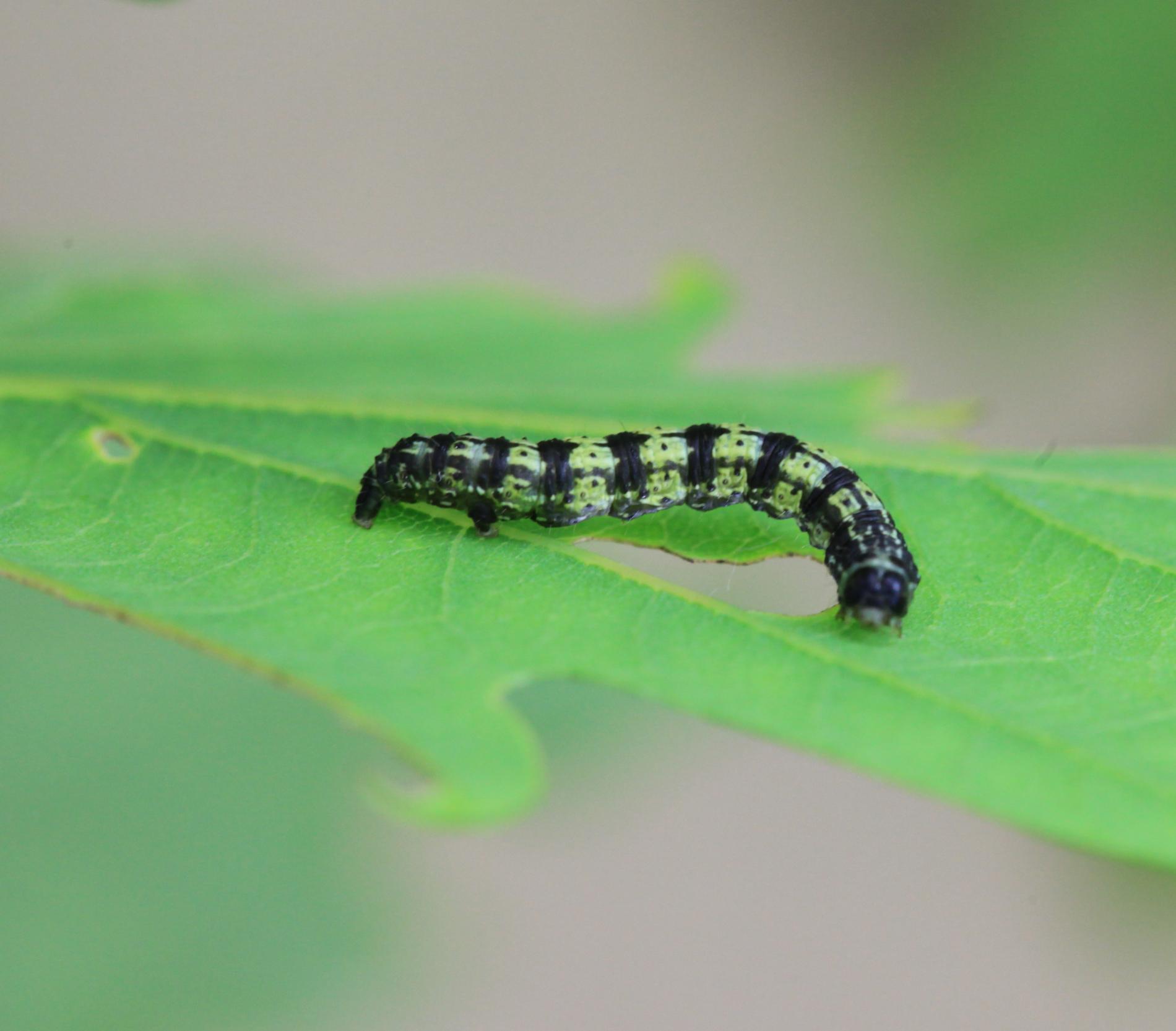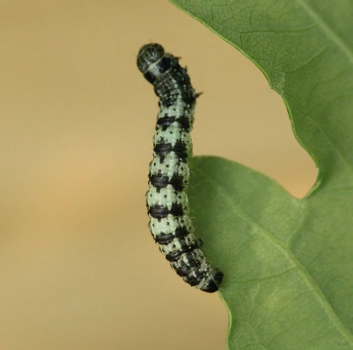 Žer v horných častiach koruny. V listoch sú diery, prípadne sú ožrené z bokov. Na listoch sú prítomné húsenice ktoré sa pohybujú typickým -piadivkovitým - pohybom.