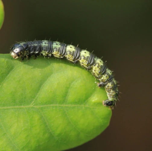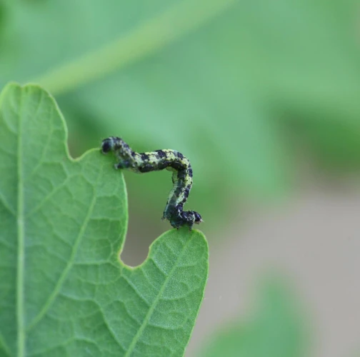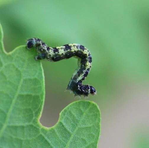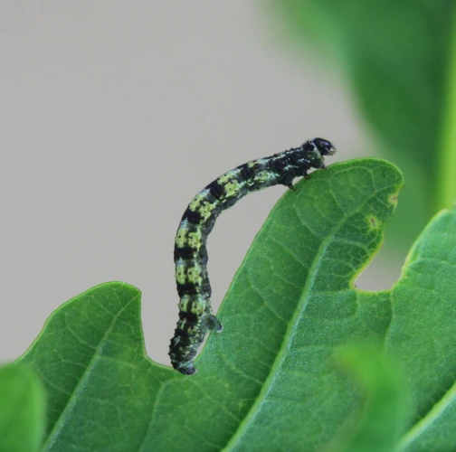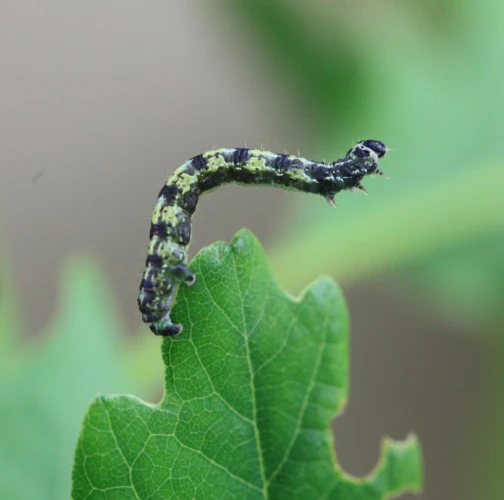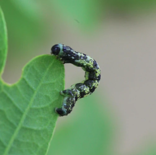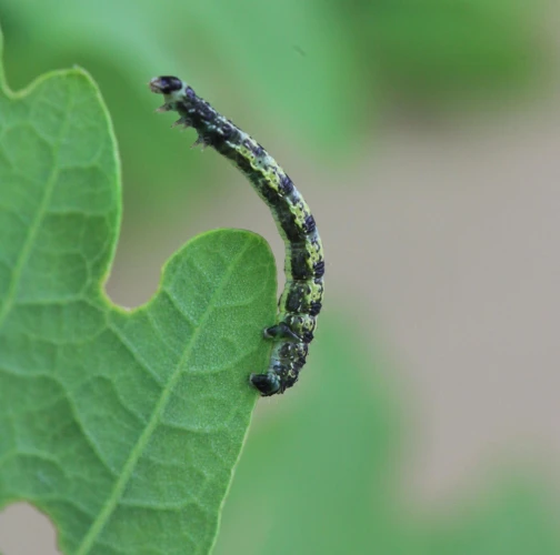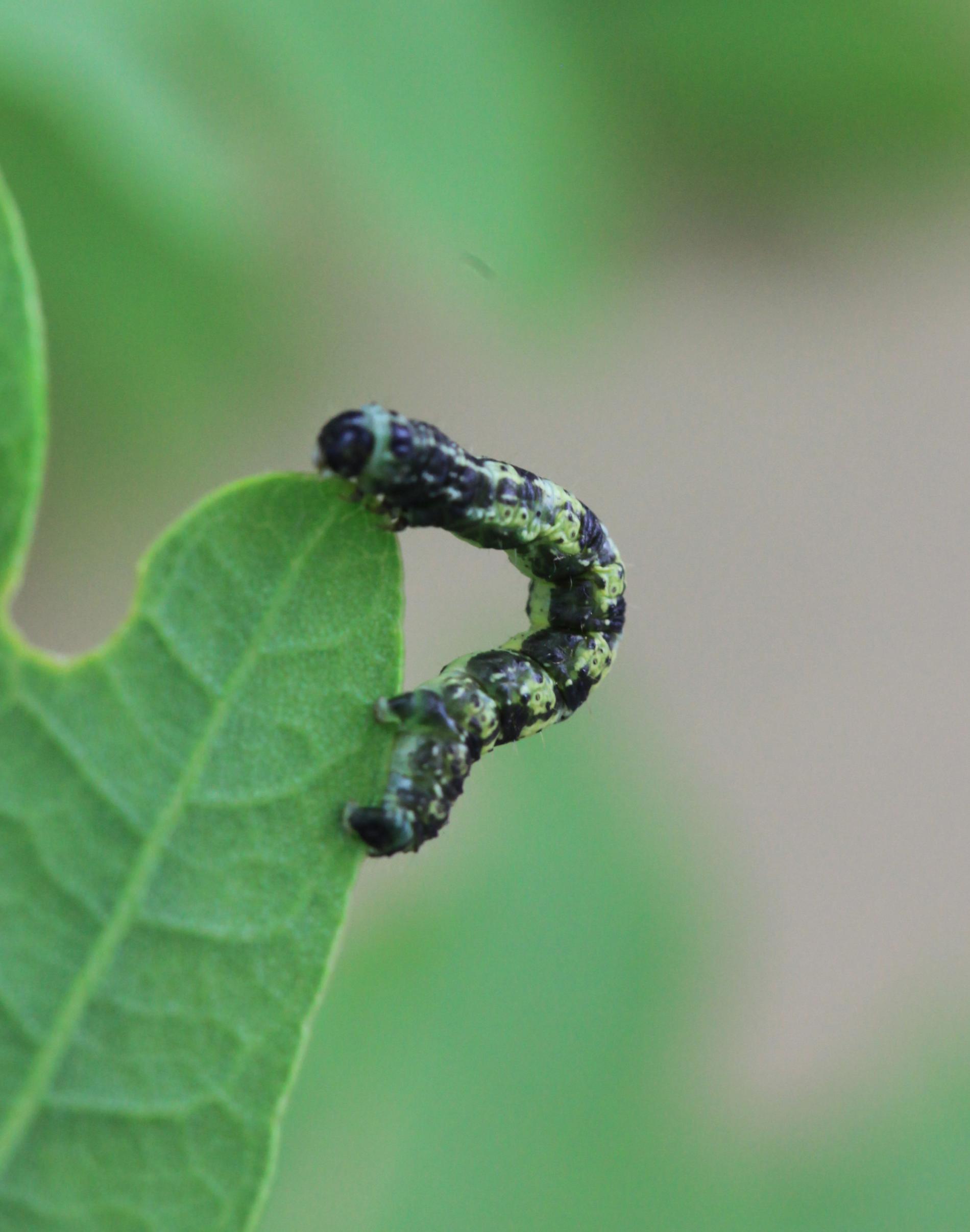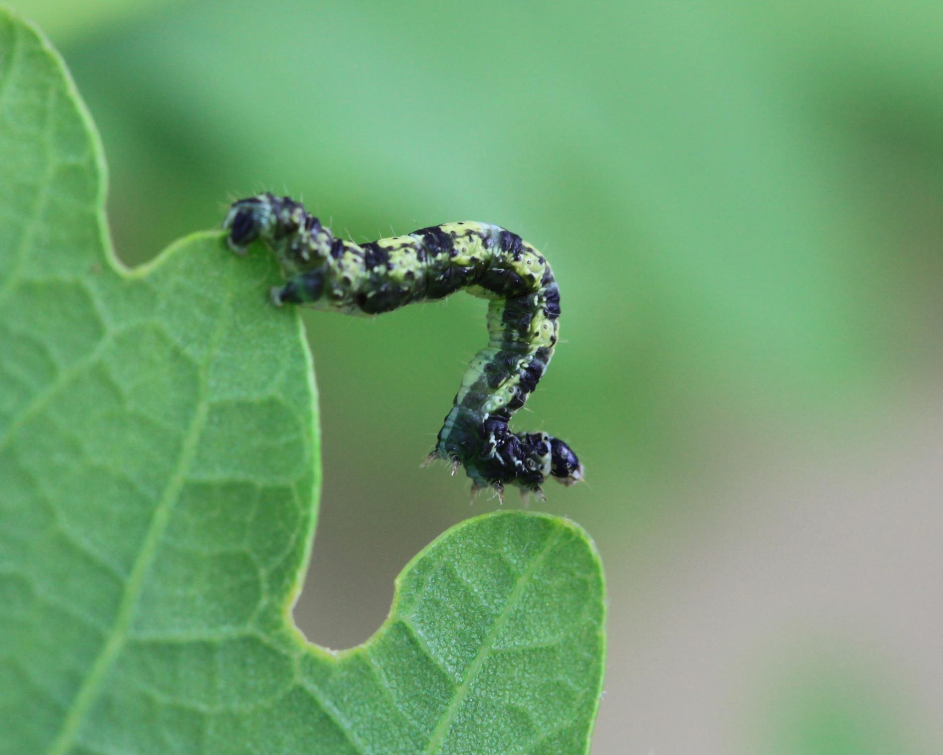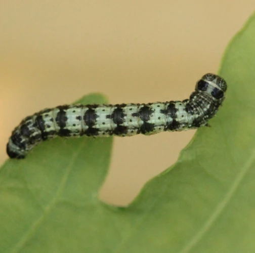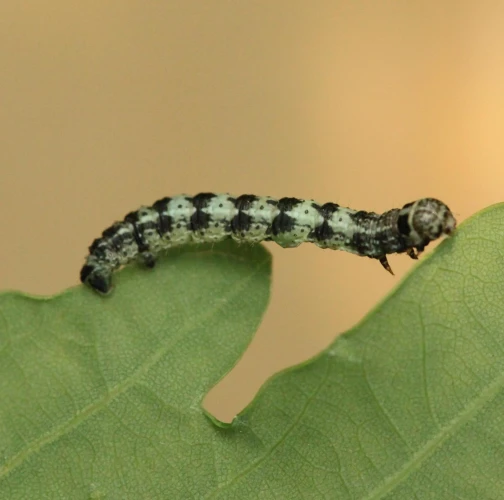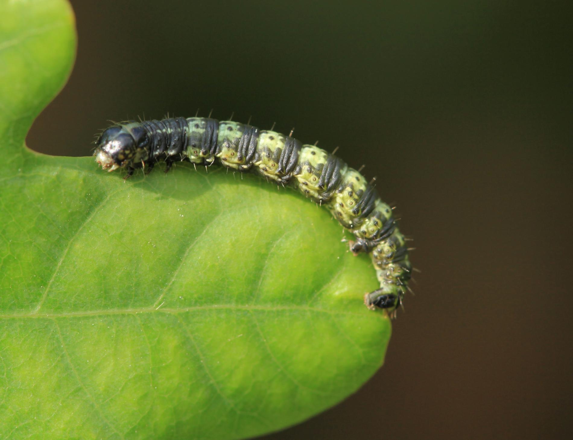 Žer v horných častiach koruny. V listoch sú diery, prípadne sú ožrené z bokov. Na listoch sú prítomné húsenice ktoré sa pohybujú typickým -piadivkovitým - pohybom.