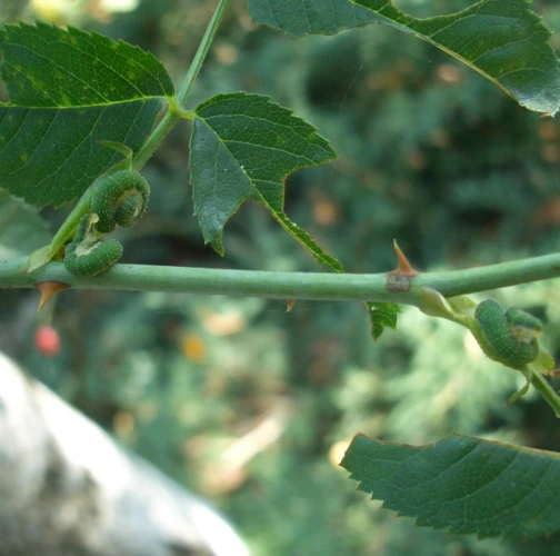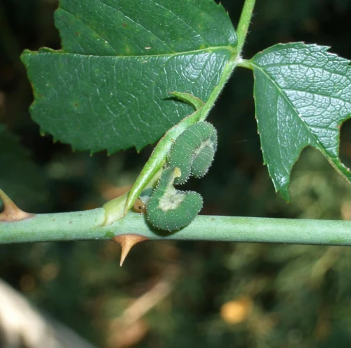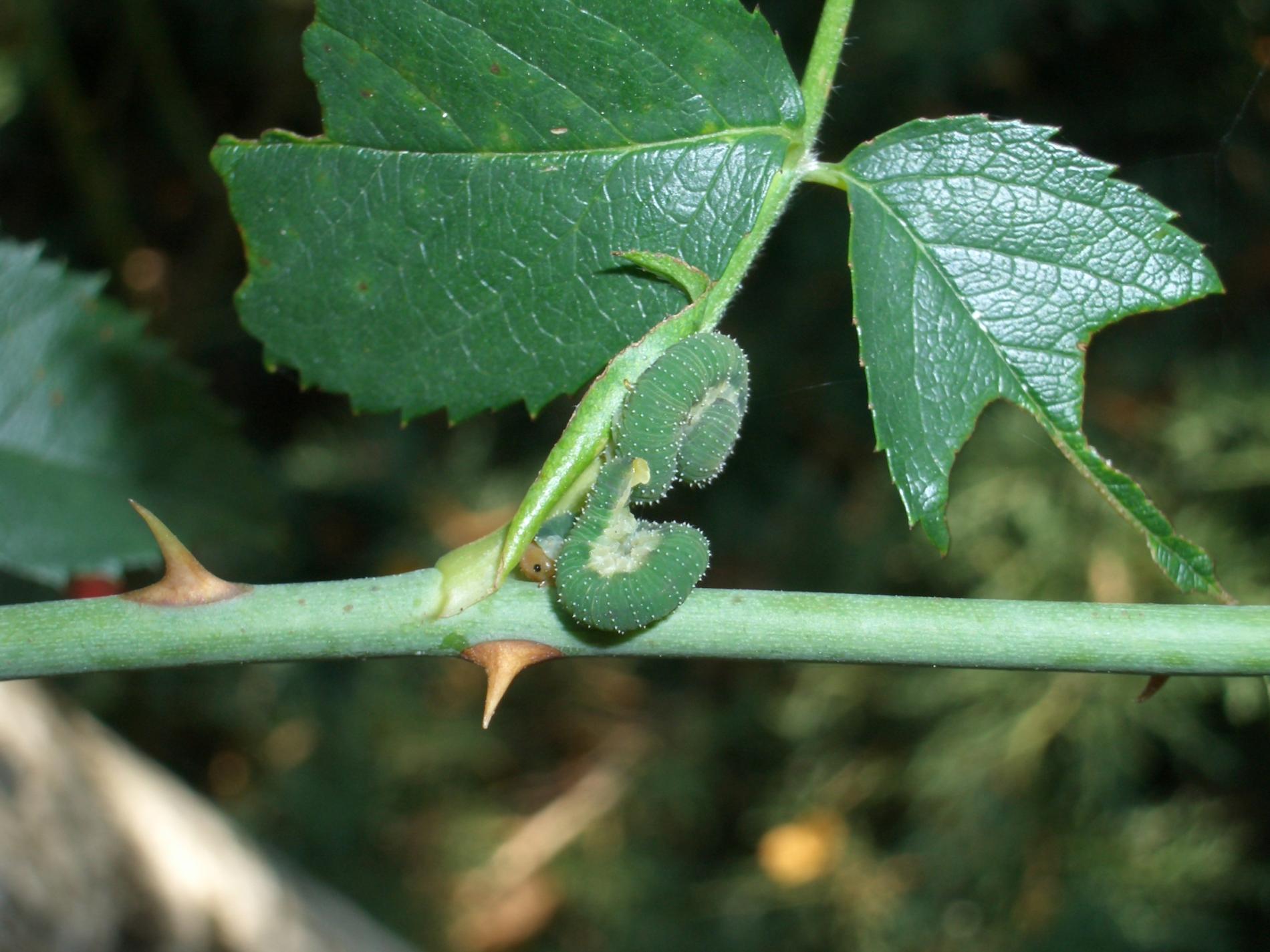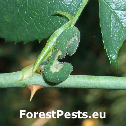 Pri silnom napadnutí dochádza k oslabeniu vitality rastlín a k zhoršeniu estetického vzhľadu drevín. Larvy sú zelené s bielymi škvrnami a žltou hlavou s tmavohnedým pruhom. Kuklia sa v dreňovej časti poškodených výhonkov. V priaznivých podmienkach sa môžu vyvinúť dve až tri generácie ročne. Dospelé piliarky sa objavujú na jar a dorastajú do veľkosti približne 10 mm, majú priehľadné krídla a lesklé čierne bruško so svetlým pruhom uprostred.