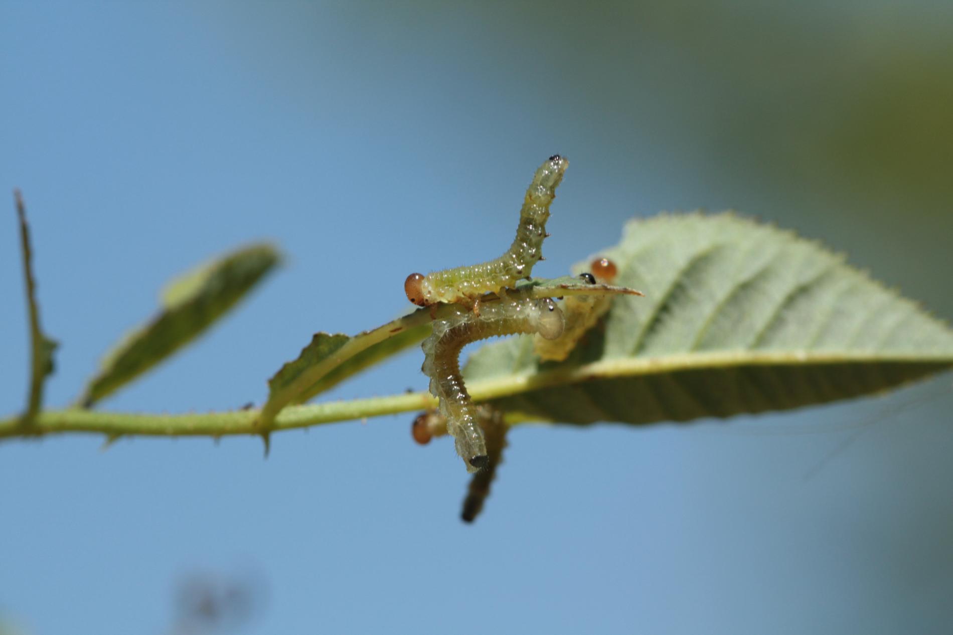 Larvy sú zelené s hnedou až čiernou hlavou.