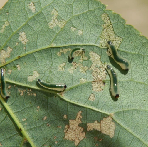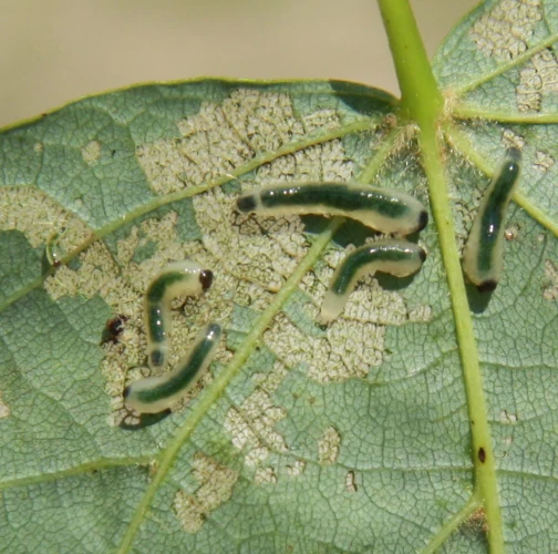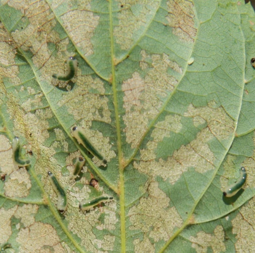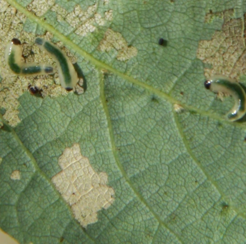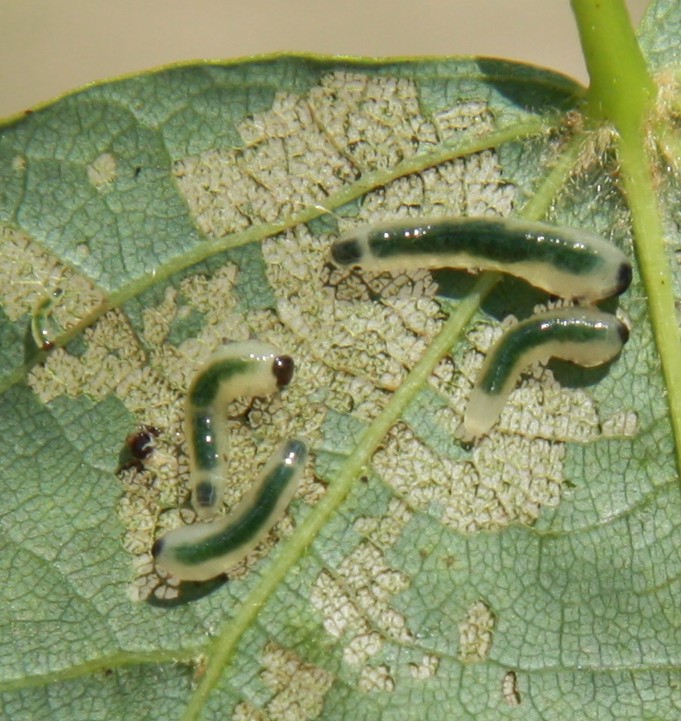 Larvy vyzerajú ako malé slimáky, nie ako larvy hmyzu. Listy skeletujú.