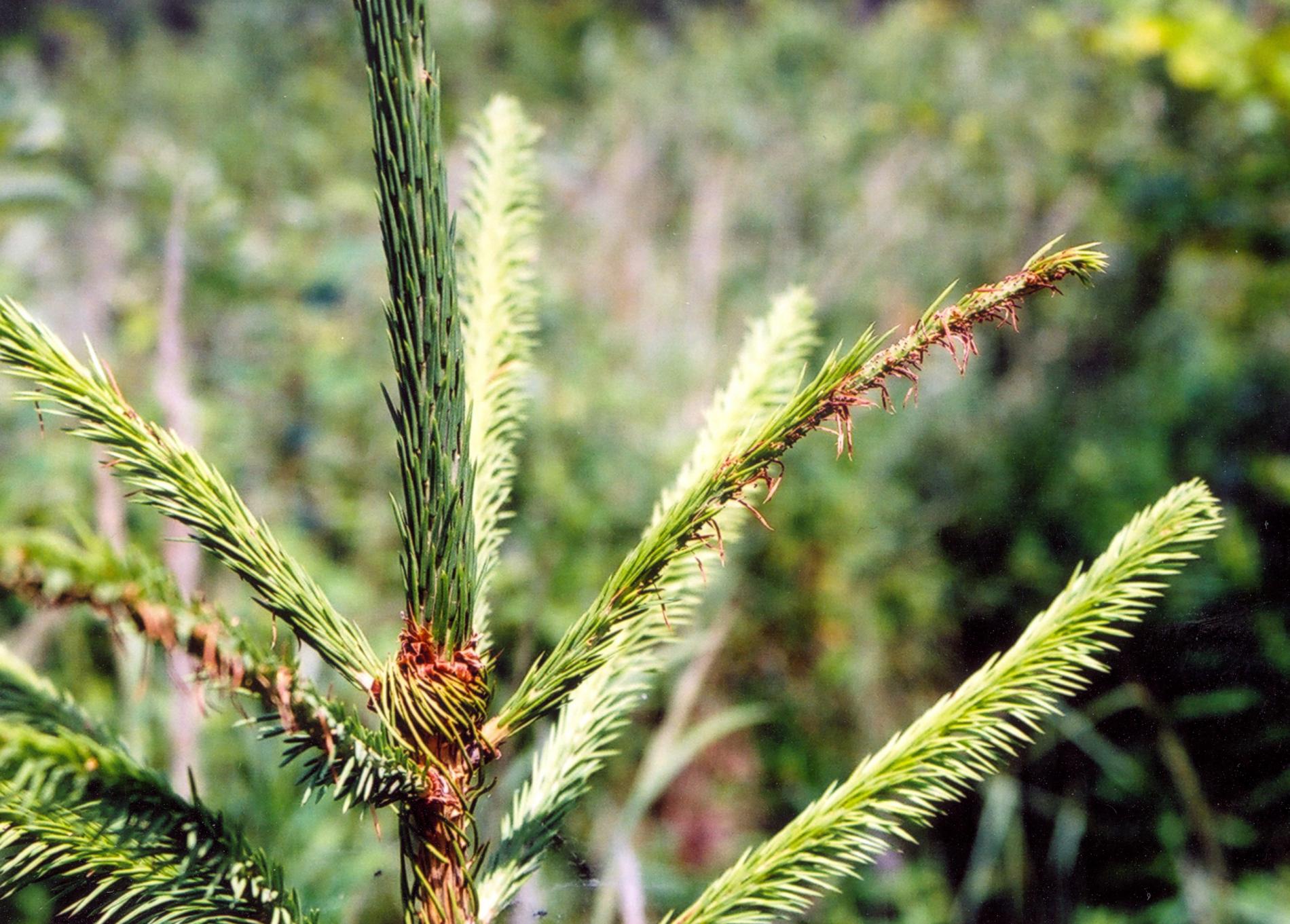 Mladé porasty – žer na ihliciach blízko vrcholu.