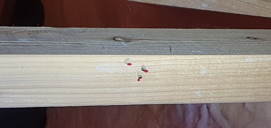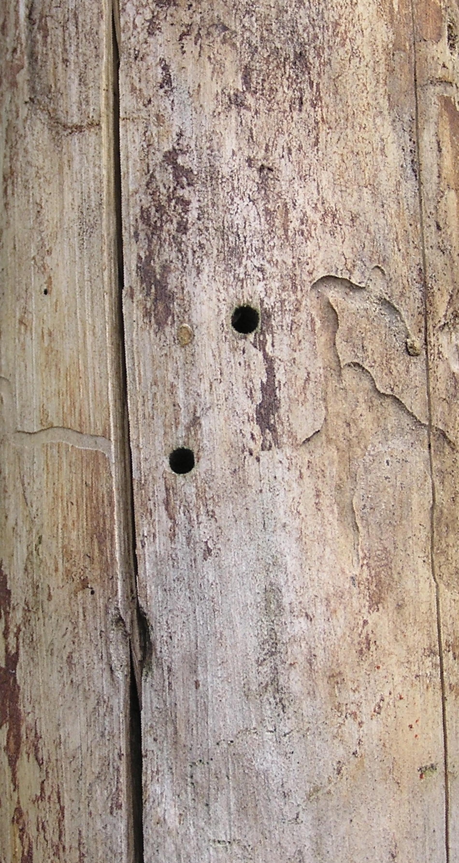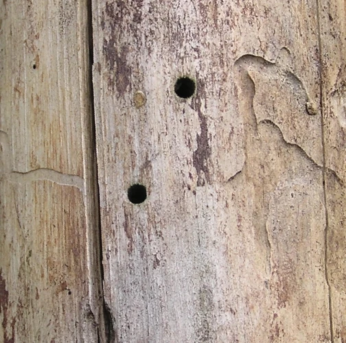 Okrúhle otvory v dreve s priemerom 4 – 6 mm.