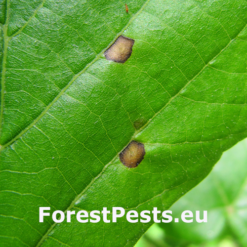 Na hornej strane listov sú malé, ploché, šošovkovité hálky často v zhlukoch. Každá hálka obsahuje bielu larvu, ktorá opúšťa hálku otvorom na spodnej strane. Opustené hálky vysychajú a zanechávajú jazvy. Pozor na podobné druhy!