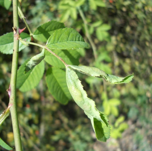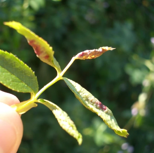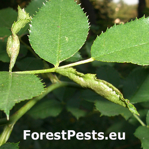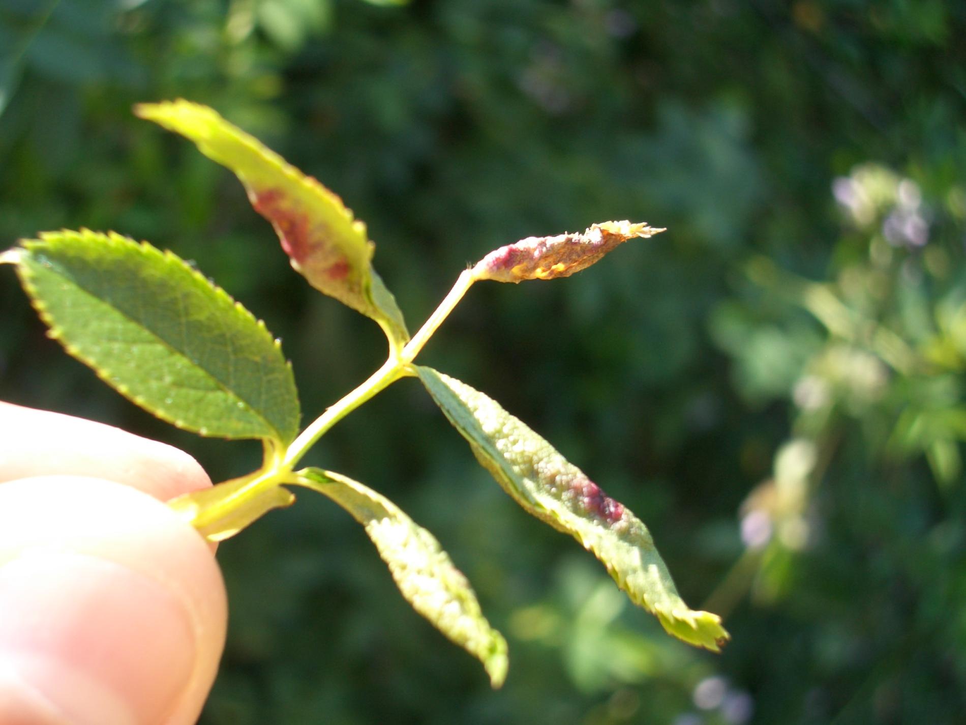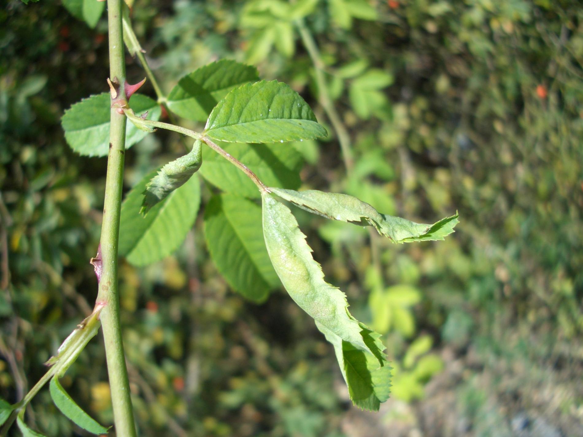 Larvy spôsobujú vznik typických hálok tým, že sa živia listovými pletivami. Hálky sa tvoria tak, že list sa zdvíha nahor pozdĺž hlavnej žilky a vytvárajú sa zhrubnuté pletivá s červeným nádychom, ktoré pripomínajú struk. Vnútri sa vyvíja mnoho oranžových lariev. Napadnutie zriedkavo ovplyvňuje vitalitu zdravých rastlín, no pri silnom napadnutí môže viesť k deformáciám listov, zníženiu asimilačnej schopnosti a estetickej hodnote ruží, najmä v okrasných záhradách.