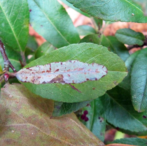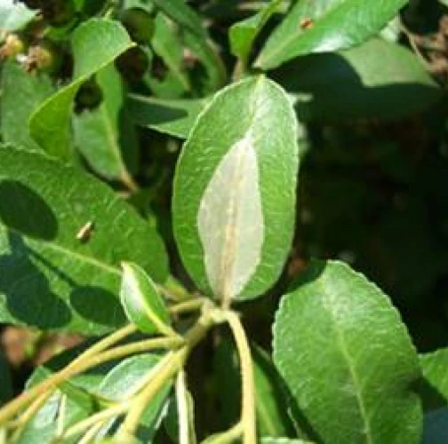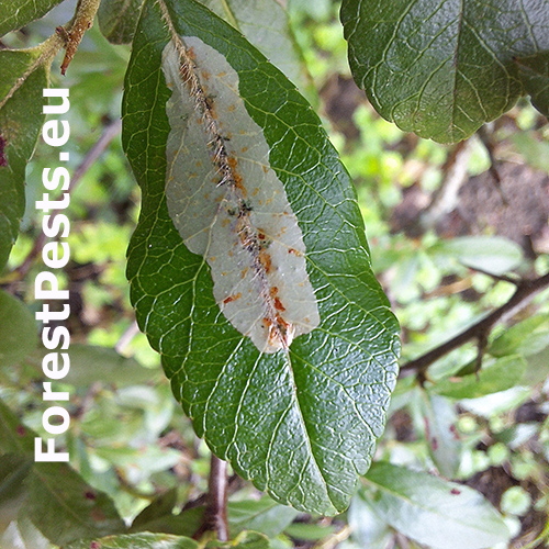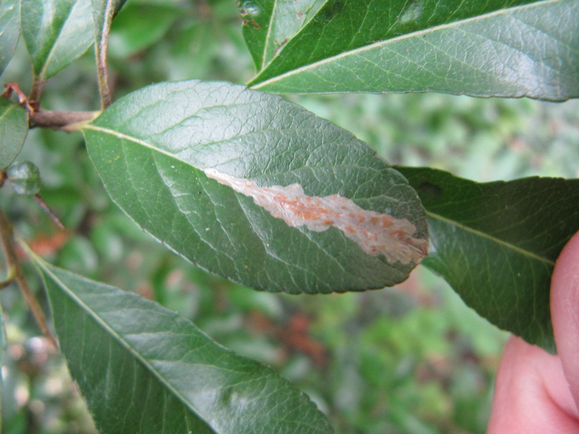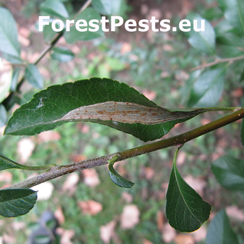 Napadnutie sa prejavuje striebristými, škvrnitými mínami na hornej strane listov, zvyčajne pozdĺž hlavnej žilky, čo môže znížiť fotosyntézu a estetickú hodnotu hostiteľa.