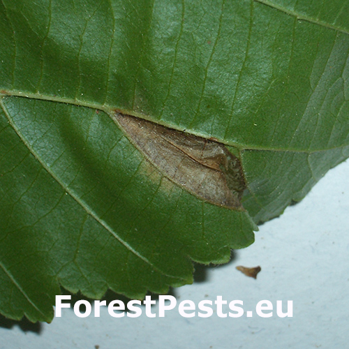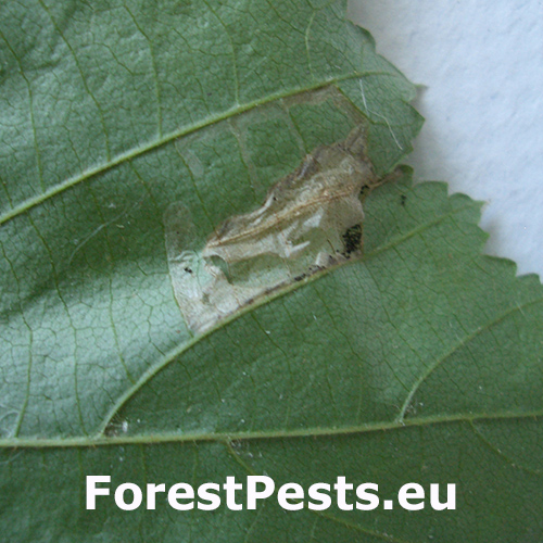 Listy liesky vykazujú klenuté, pľuzgierovité míny na spodnej strane, často s centrálnou zelenou plochou. Viaceré míny môžu viesť k zníženiu fotosyntézy a predčasnému opadaniu listov.