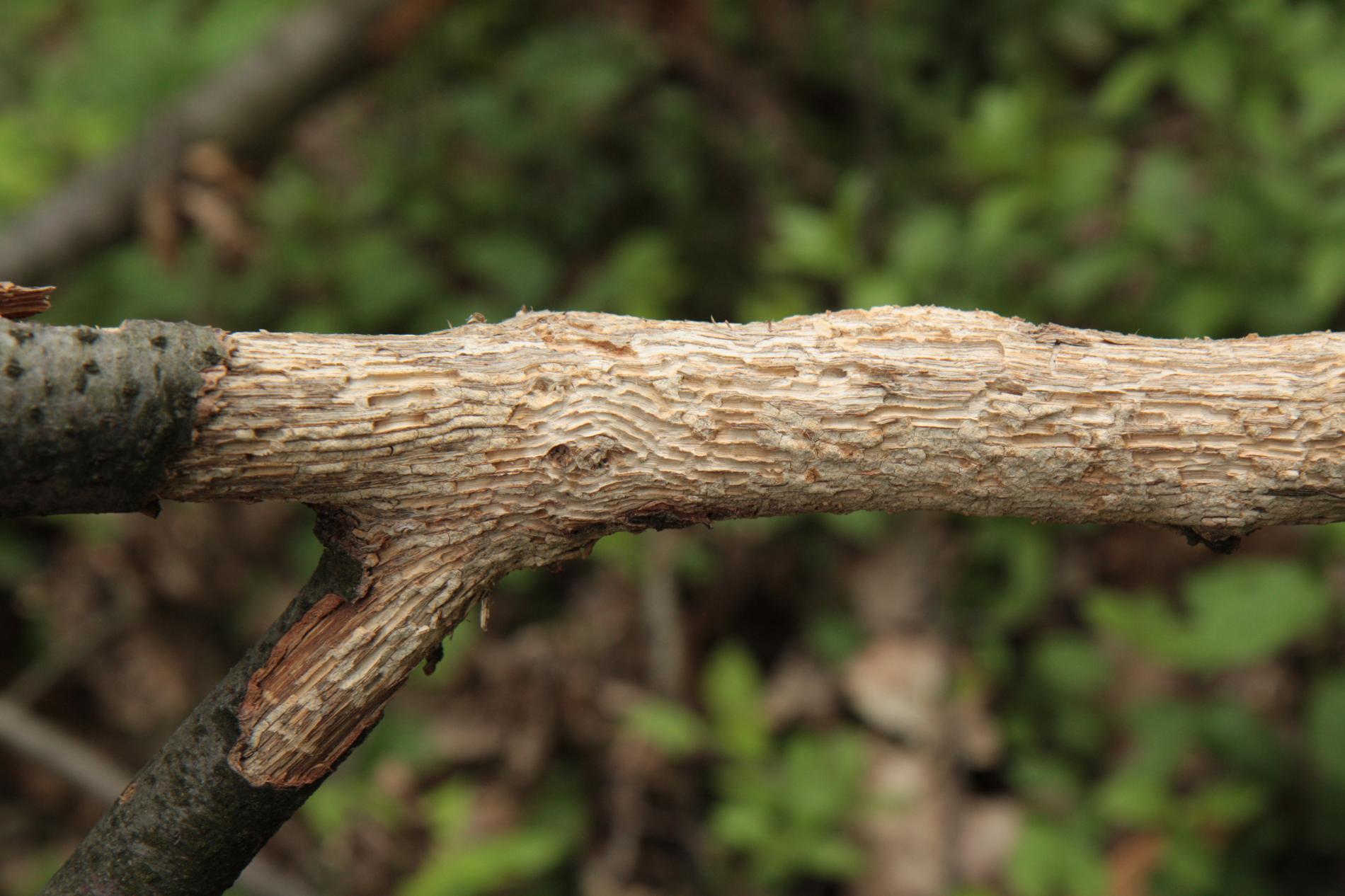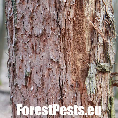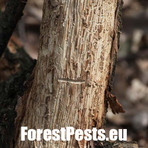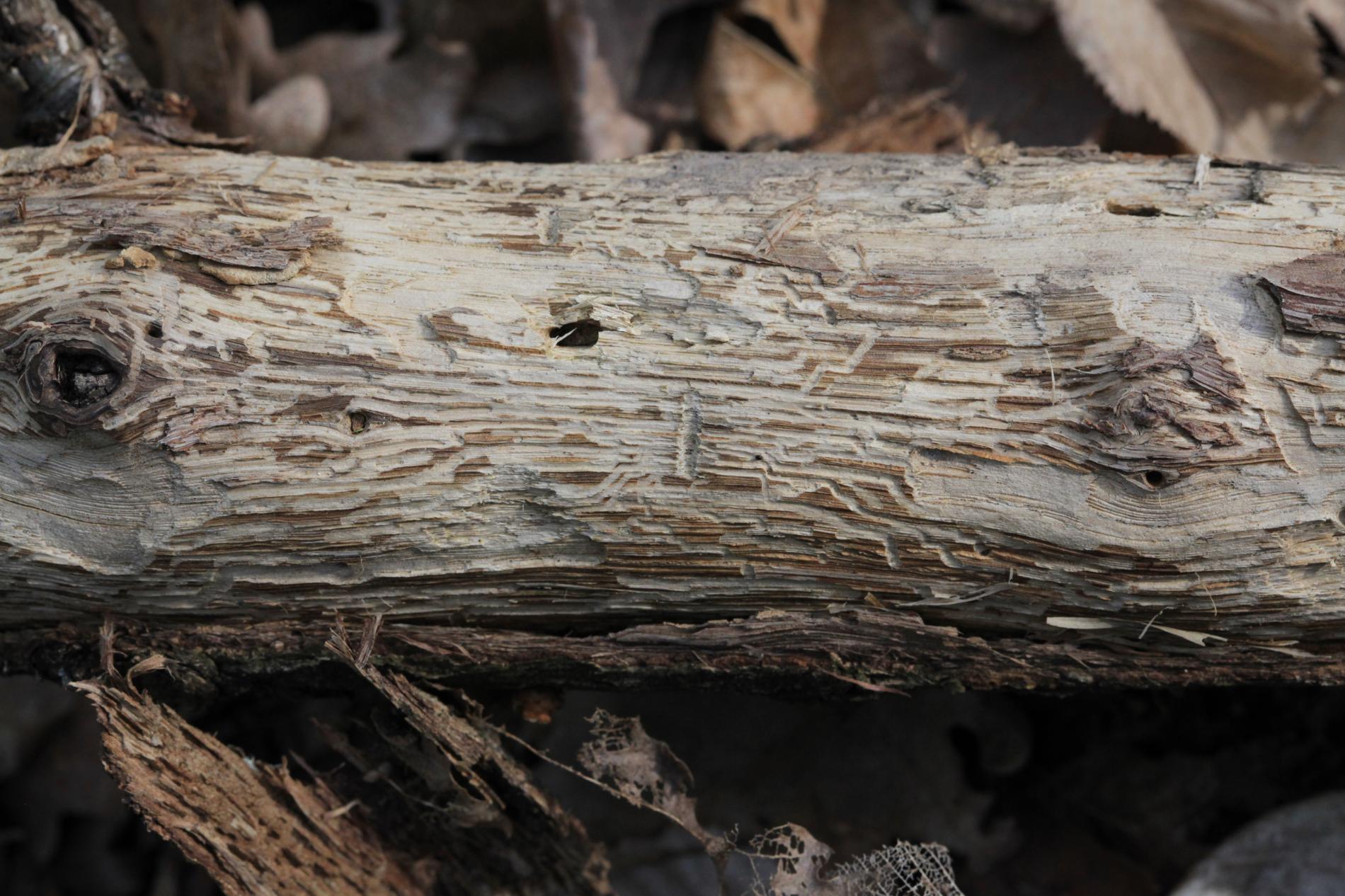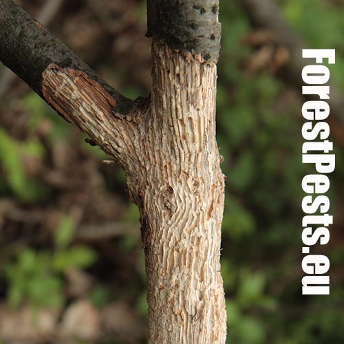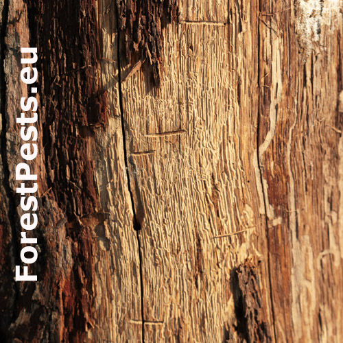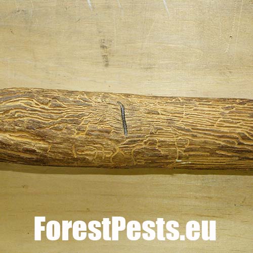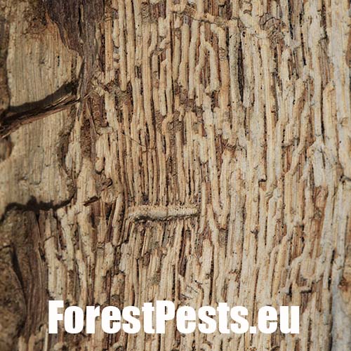Z kmeňov opadáva kôra. Na kmeni a vetvách sú krátke vodorovné požerky dlhé asi 1 – 2 cm. Z nich vybiehajú smerom nahor a nadoľ úzke chodby.
