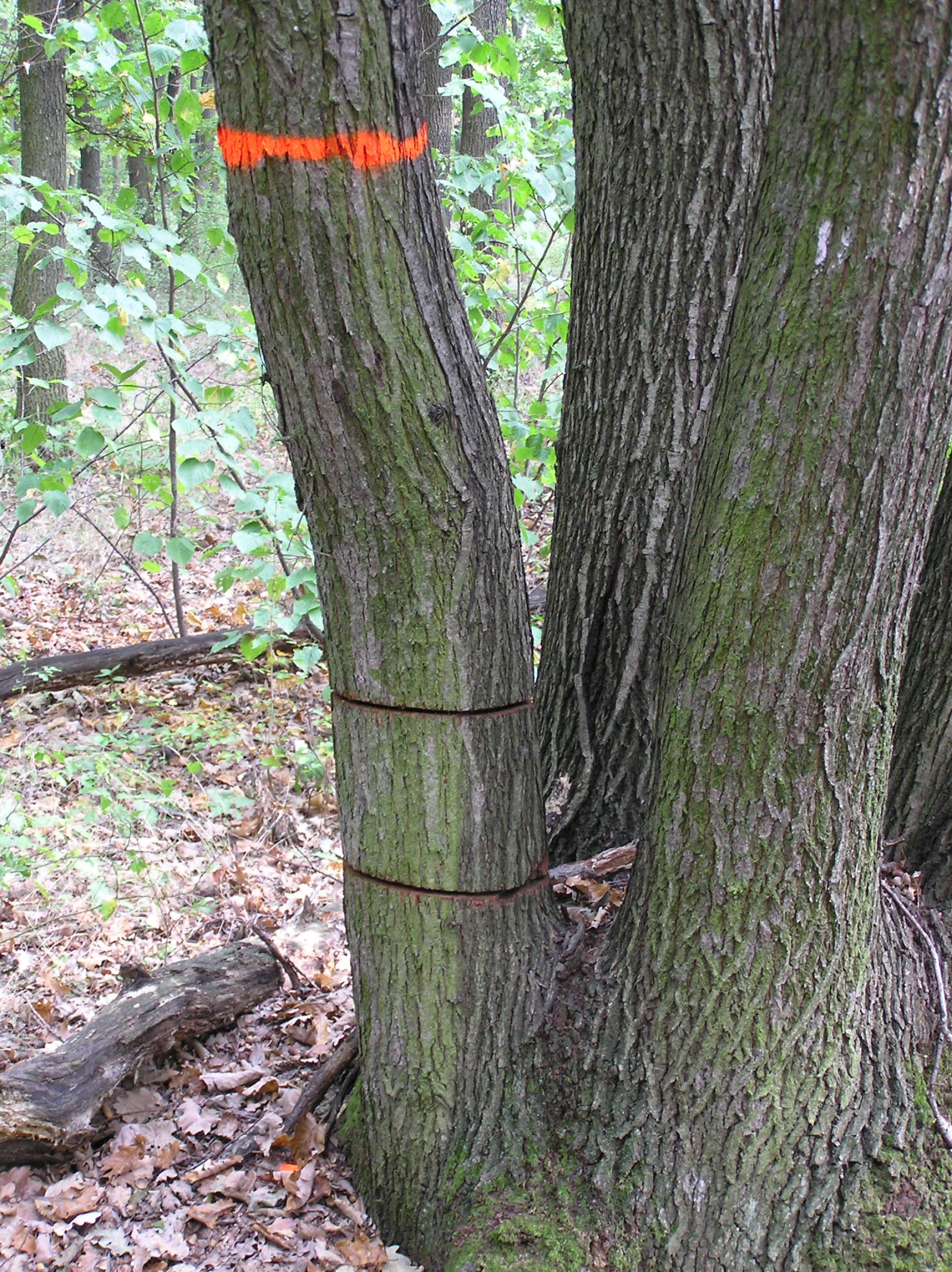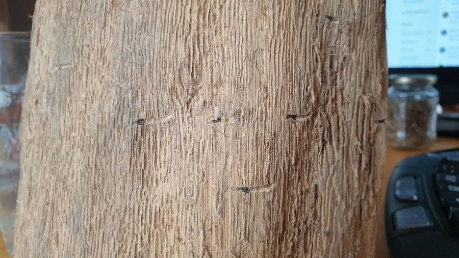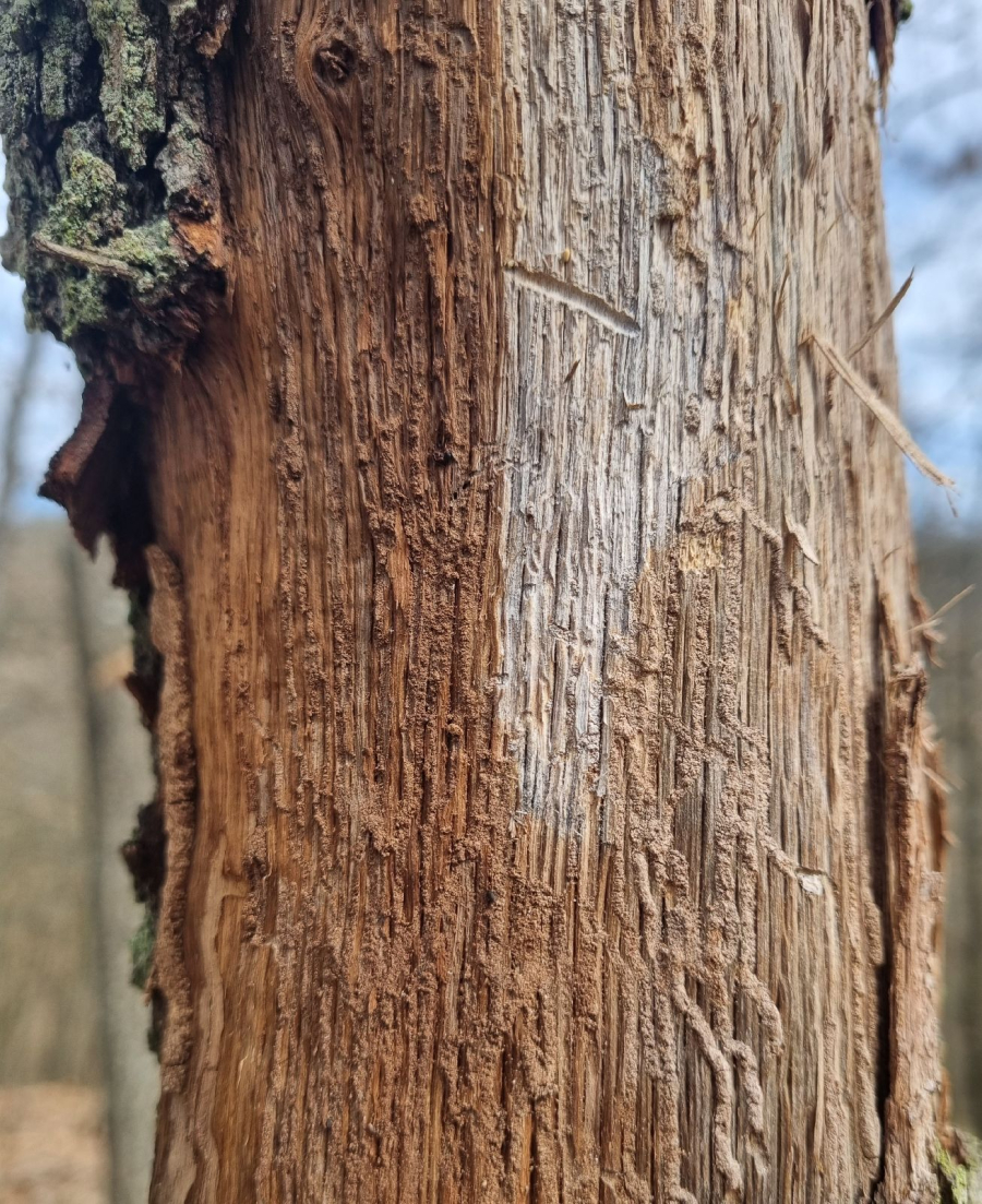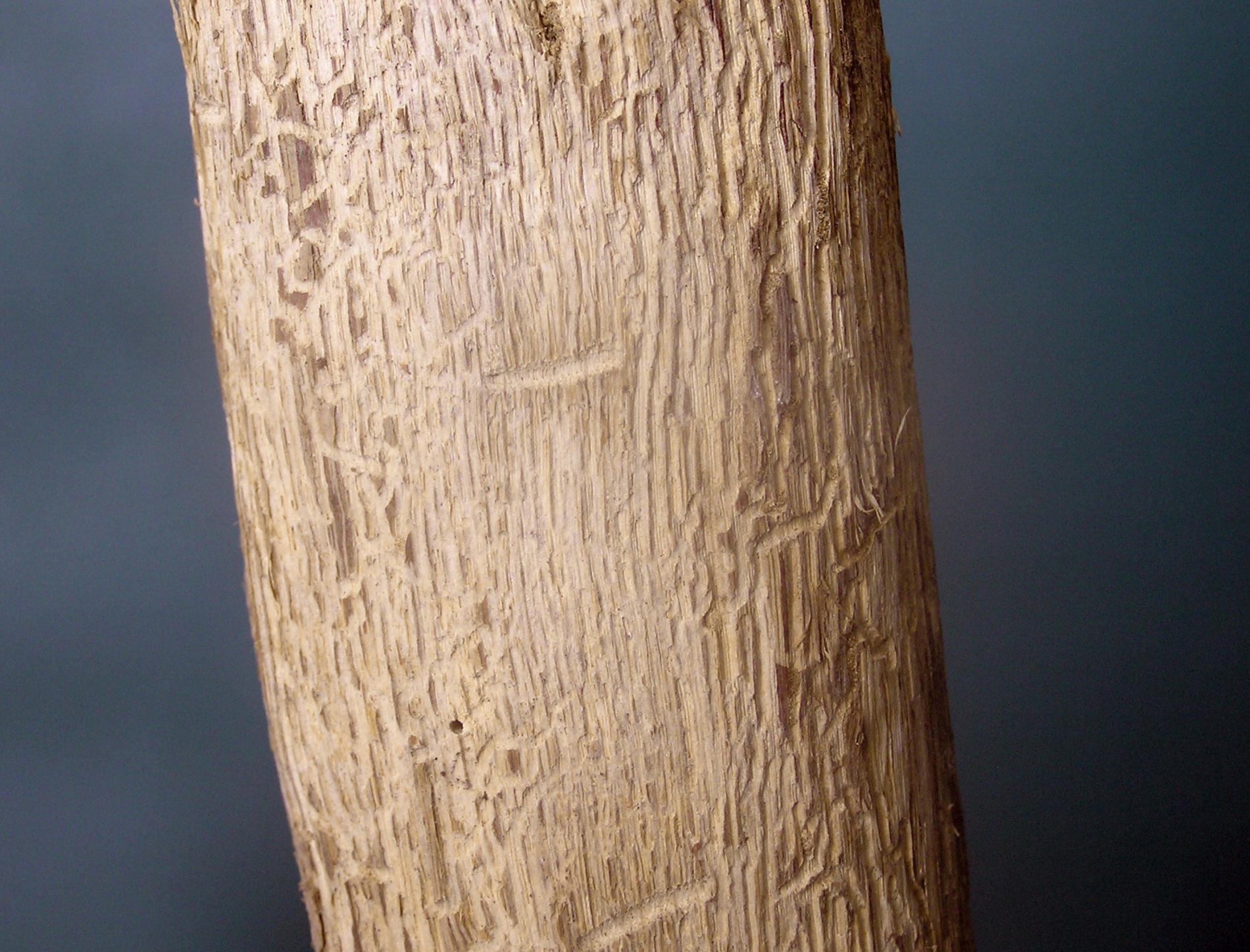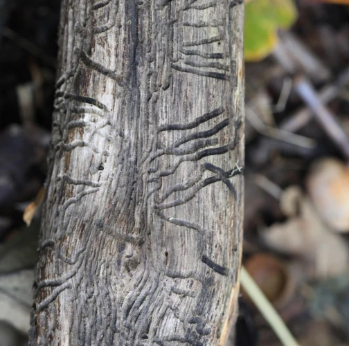 Z kmeňov opadáva kôra. Na kmeni a vetvách sú krátke vodorovné požerky dlhé asi 1 – 2 cm. Z nich vybiehajú smerom nahor a nadoľ úzke chodby.