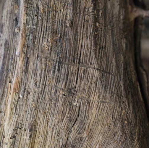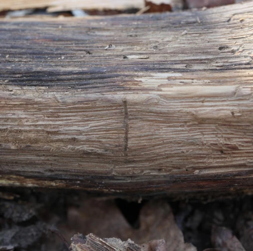 Požerok veľmi podobný podkôrnikovi dubovému. Materská chodba veľká asi 3 cm, larvové chodby idú smerom nadol a nahor.