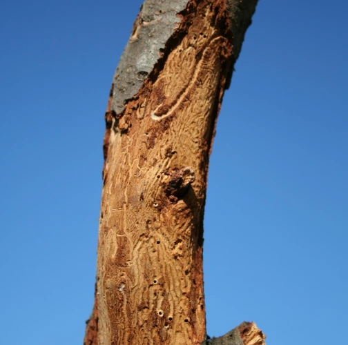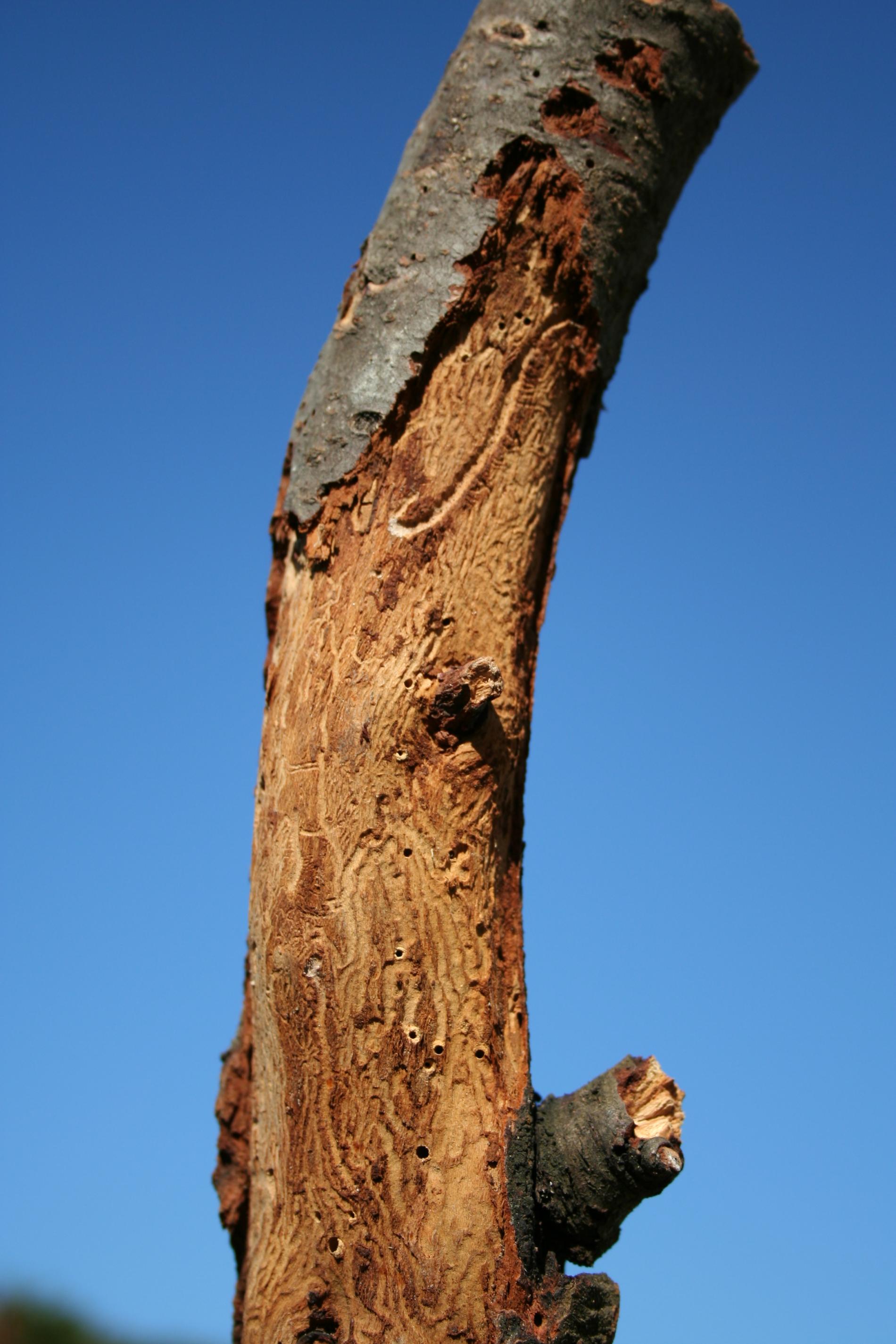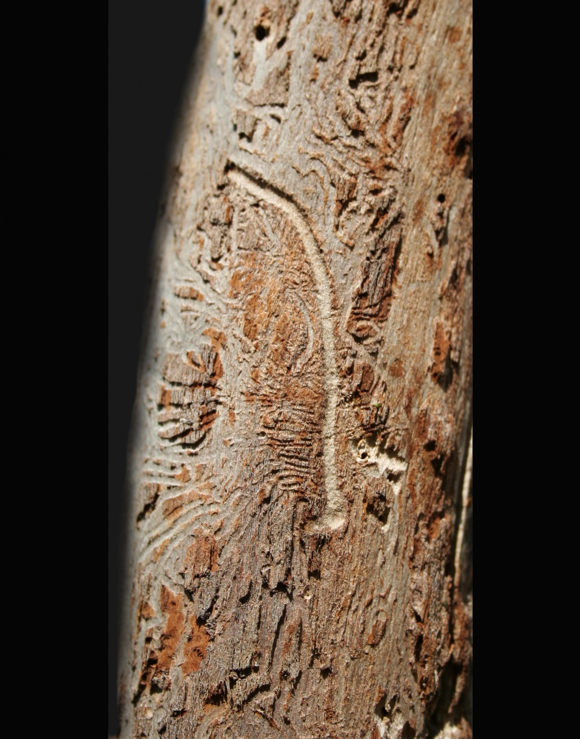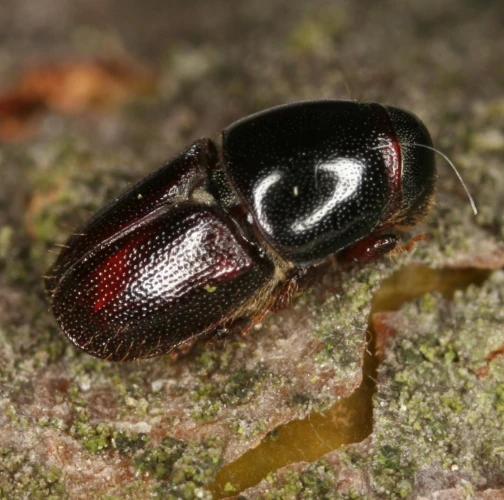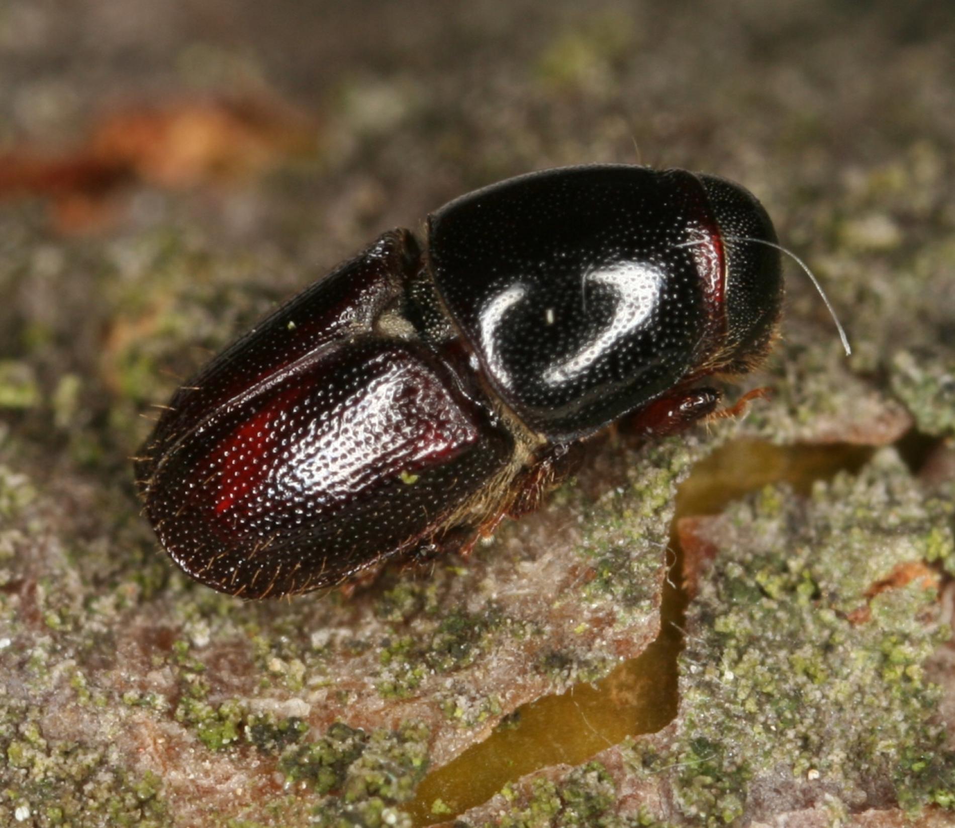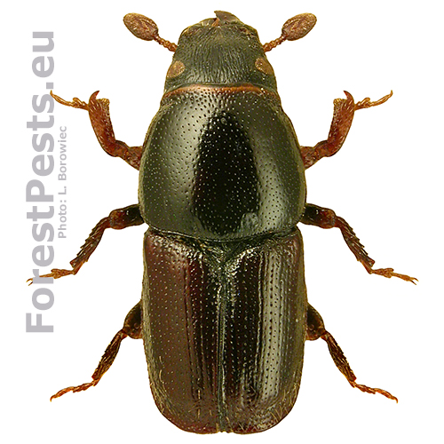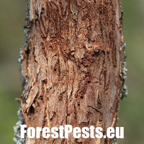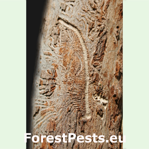 Podkôrnik veľkosti cca 3,5 mm. Jednoramená materská chodba prebieha v smere osi kmeňa. Na mieste závrtu mierne je rozšírená, dlhá približne 10 cm. Požerok je výrazne zarezaný v beli. Prednostne napáda silne oslabené alebo odumierajúce stromy. Hojný druh najmä na ovocných stromoch.