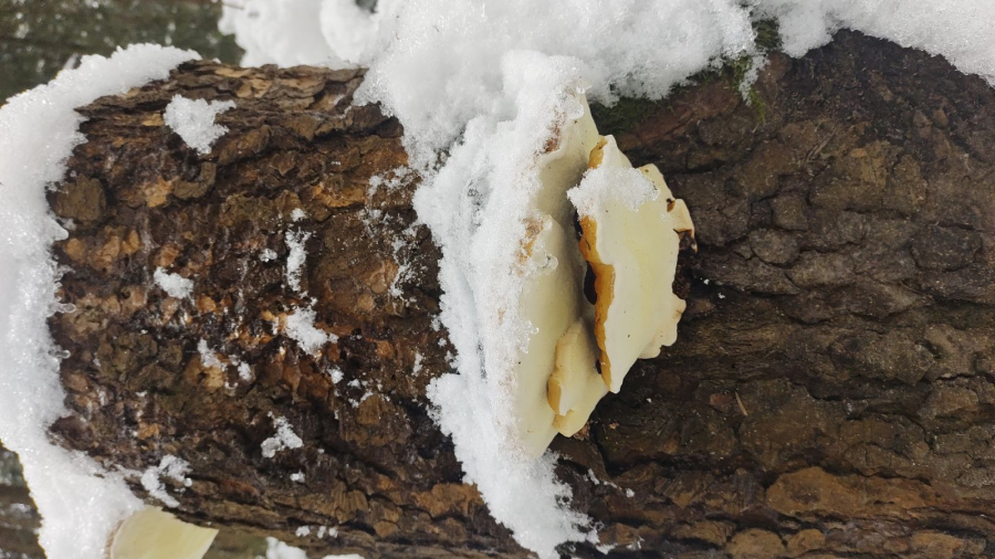 Prítomnosť krémovo bielych plodníc na kmeňoch.