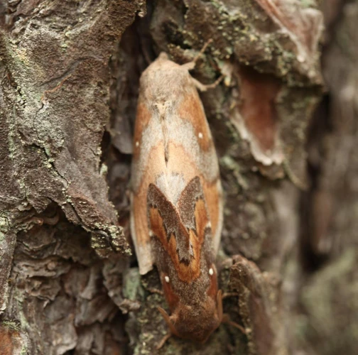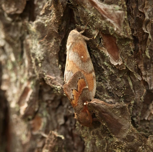 Veľký, zavalitý motýľ. Samček má rozpätie krídel 50 - 60 mm. Samičky sú ešte väčšie. Rojí sa v júli. Samička vykladie na kôru stromov prípadne na ihlice asi 150-200 ks veľkých vajíčok. Húsenice, ktoré sa liahnu asi o 3 týždne, žerú na ihliciach do októbra a potom zaliezajú do hrabanky, kde prezimujú. Na nasledujúcu jar vyliezajú späť do korún a pokračujú v žere do júna, kedy sa kuklia v hnedom zámotku. Časť húseníc môže prezimovať ešte raz. Staršie ihlice borovíc sú obžrané až k pošve, neskôr poškodzuje i mladšie, rašiace ihlice. Žer je veľmi intenzívny a škodca môže spôsobovať holožery.
