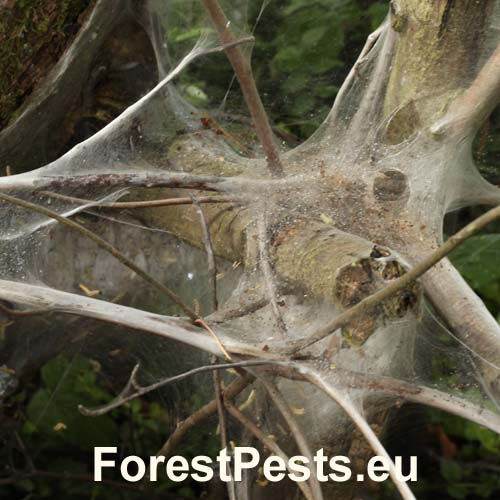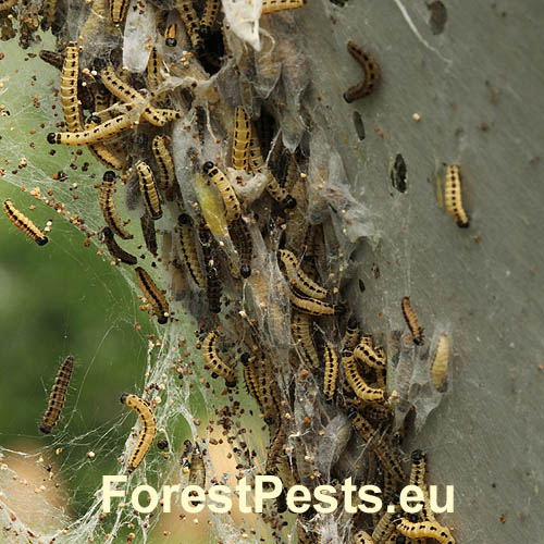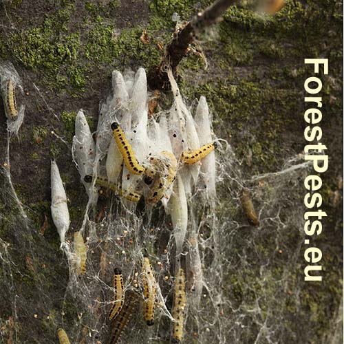 Na listoch čremchy Prunus padus (= racemosa) Lam. sa občas premnožuje tento drobný, čierno-biely motýľ, ktorého biele húsenice žijú v hniezdach, ktoré spriadajú na konároch stromov. Celé stromy bývajú akoby zabalené v pavučine. Prezimuje ako vajíčko. Na jar sa liahnu húsenice. Húsenice žijú obyčajne až do zakuklenia (do konca júna) spoločne. Motýľ lieta v júli až auguste. Patrí medzi intenzívne sa premnožujúcich škodcov, ktorý v čase gradácie môže spôsobiť holožery. Občas povučinovými vláknami obaľuje aj iné stromy ale na nich nespôsobuje žiadne škody. Nikdy nepoškodzuje ovocné stromy ani iné druhy sttromov. Pavučinové vlákna ani húsenice či kukly nie sú alergotvorné a pre človeka sú na dotyk neškodné.