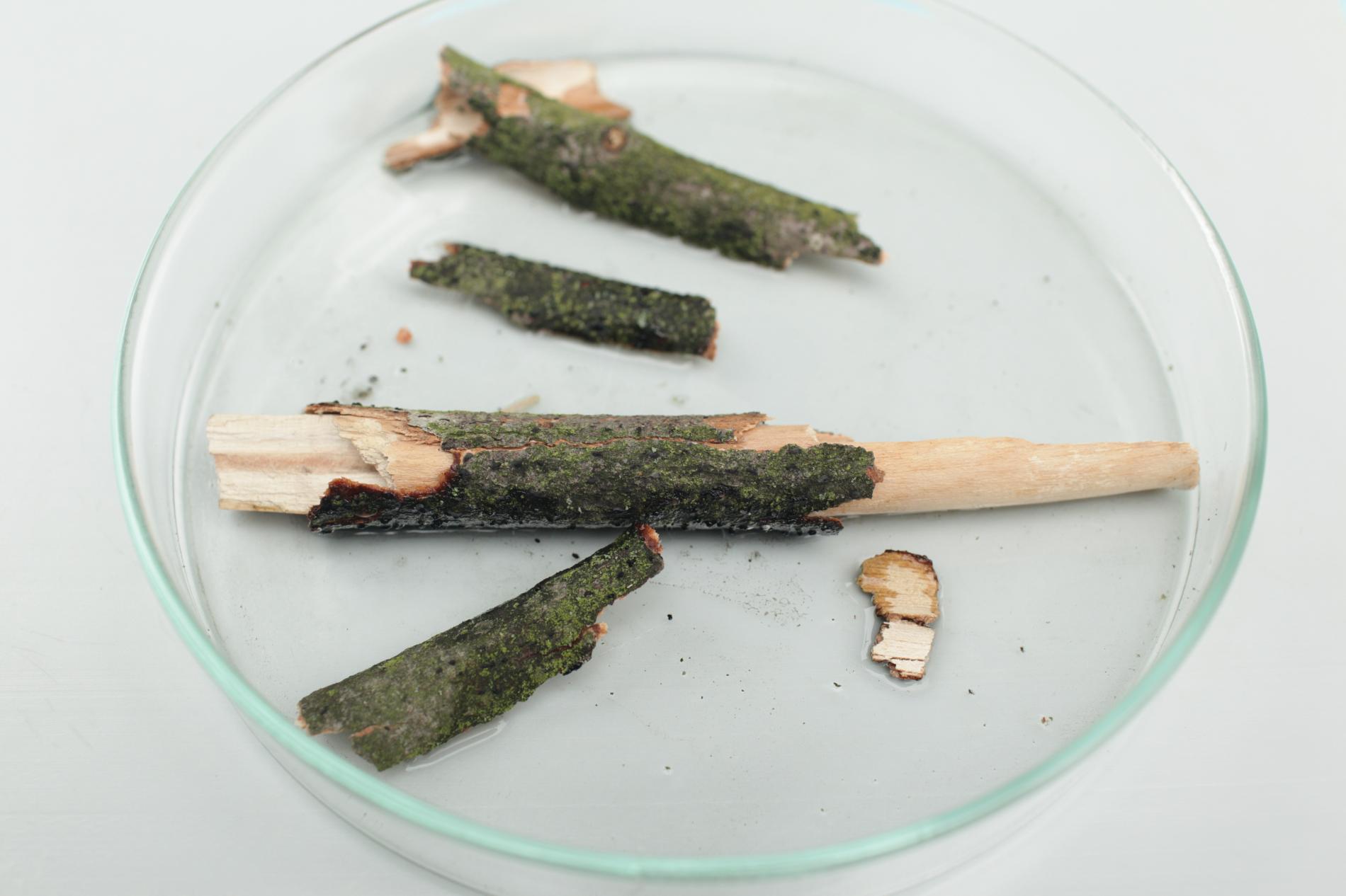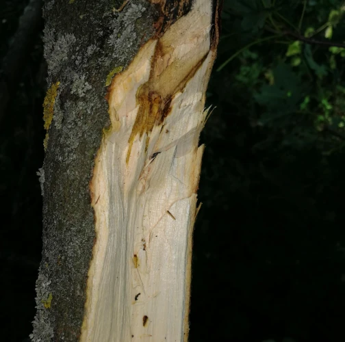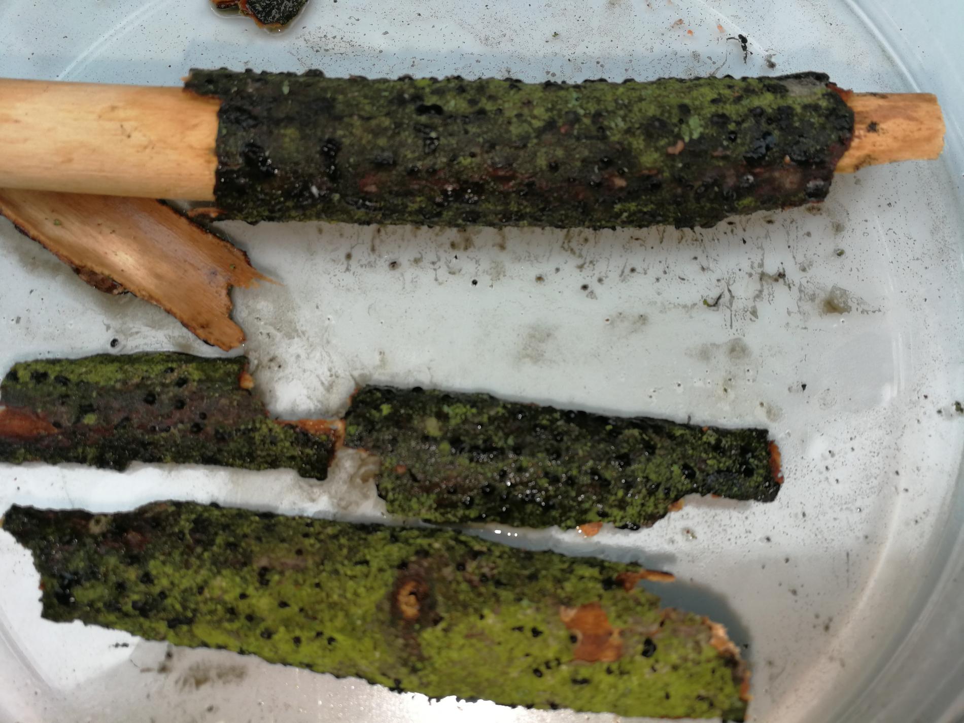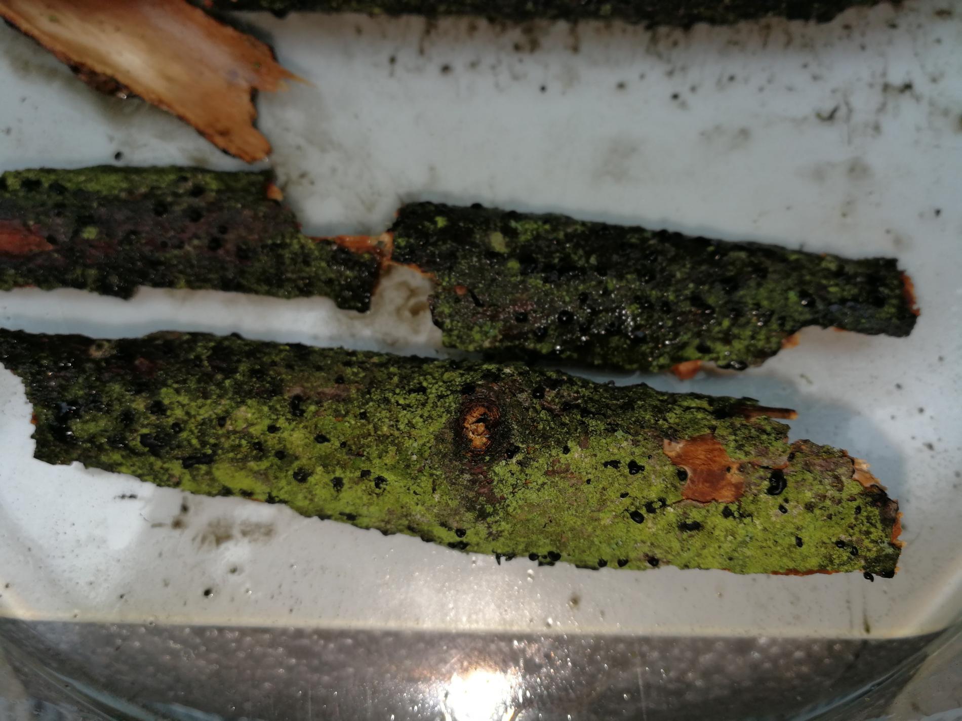 Čierne hrudkovité plodnice sa vytvárajú na povrchu kôry, podkôrne pletivá sú odumreté.