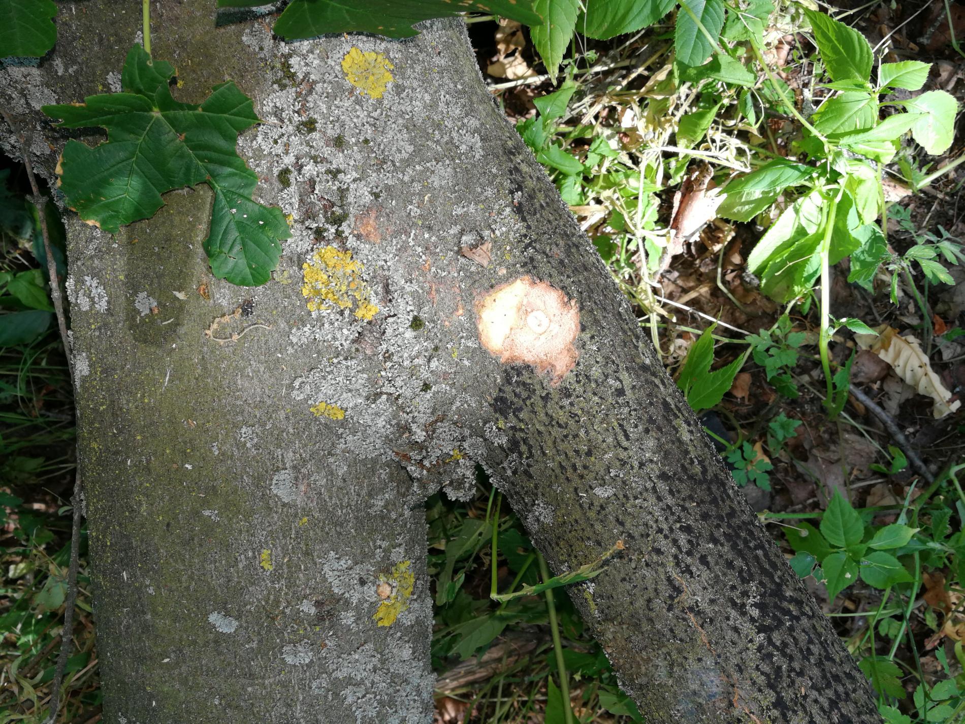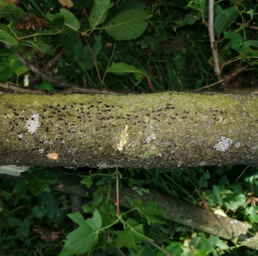 Huba napáda vetvy, ktoré odumierajú. Ide však skôr o slabého patogéna, ktorý sa prejavuje po oslabení javorov iným škodlivým činiteľom, napr. koreňovými hnilobami, suchom a pod. Čierne hrudkovité plodnice sa vytvárajú na povrchu kôry, podkôrne pletivá sú odumreté.