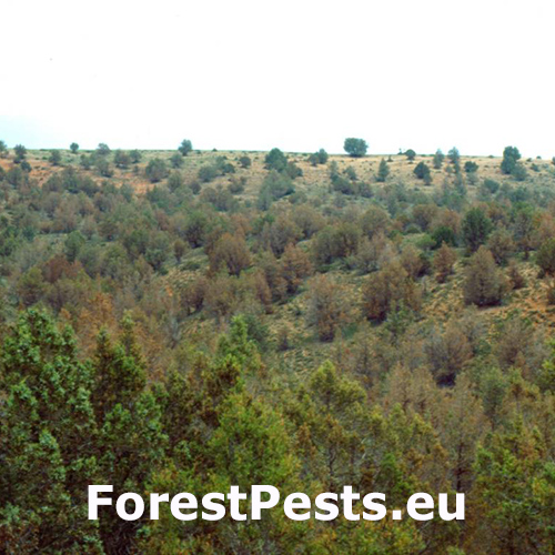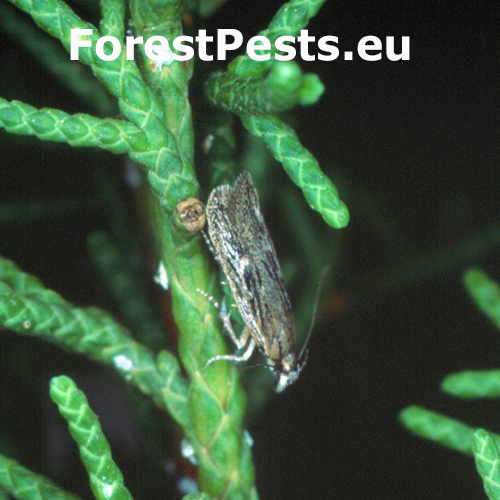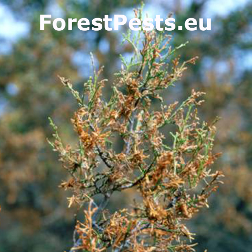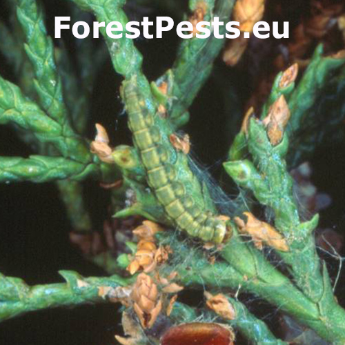 Na ihliciach a mladých výhonkoch sú prítomné drobné chodby, neskôr pavučinové rúrky alebo pavučinové siete. Ihlice sú poškodené, vyžraté a často so zvyškami trusu.