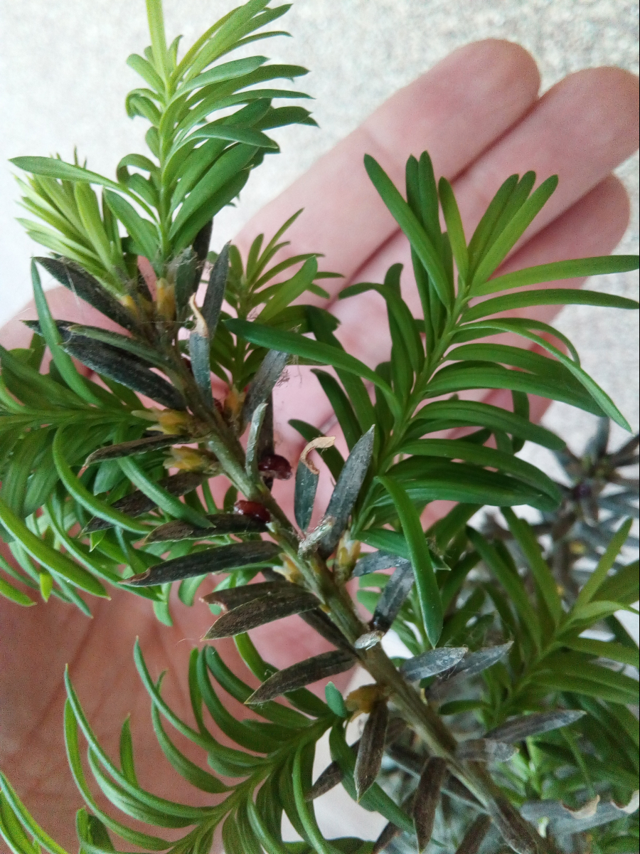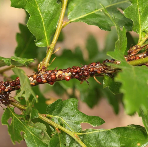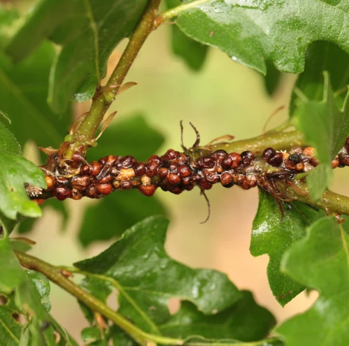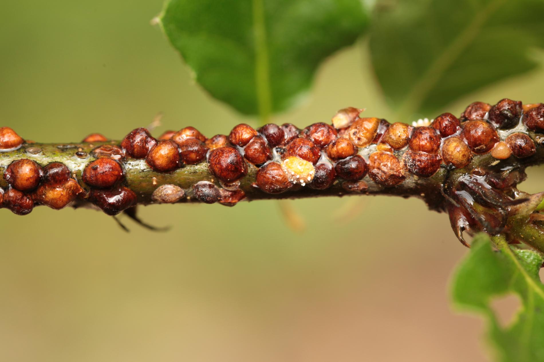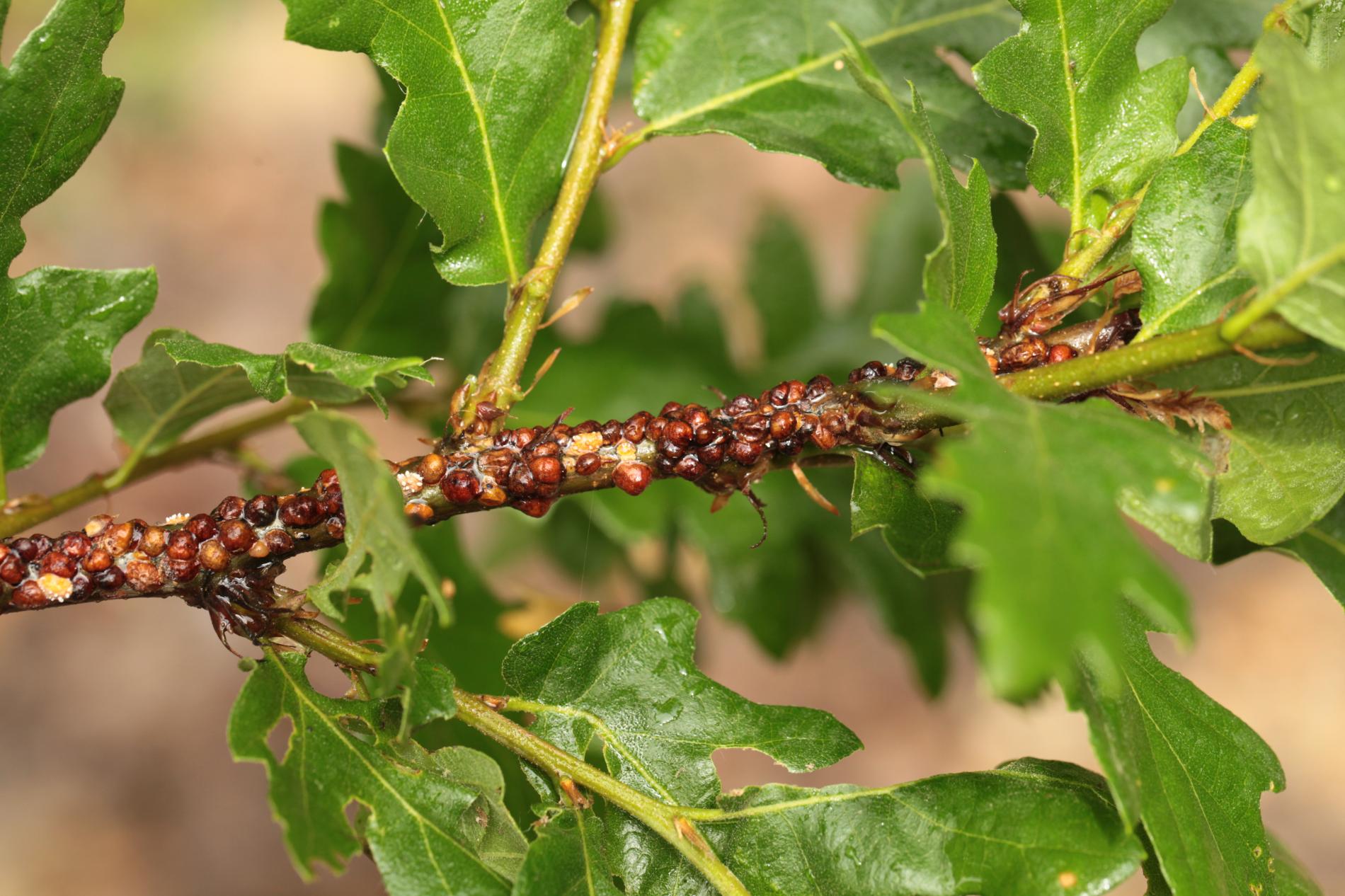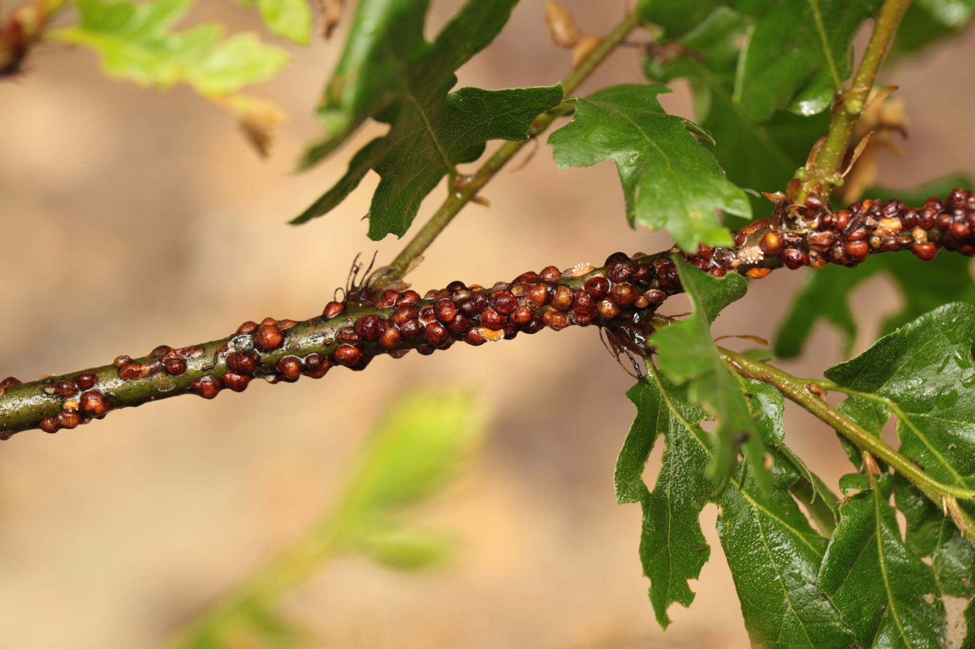 Hnedé, okrúhle, asi 3 – 4 mm veľké útvary na výhonkoch.