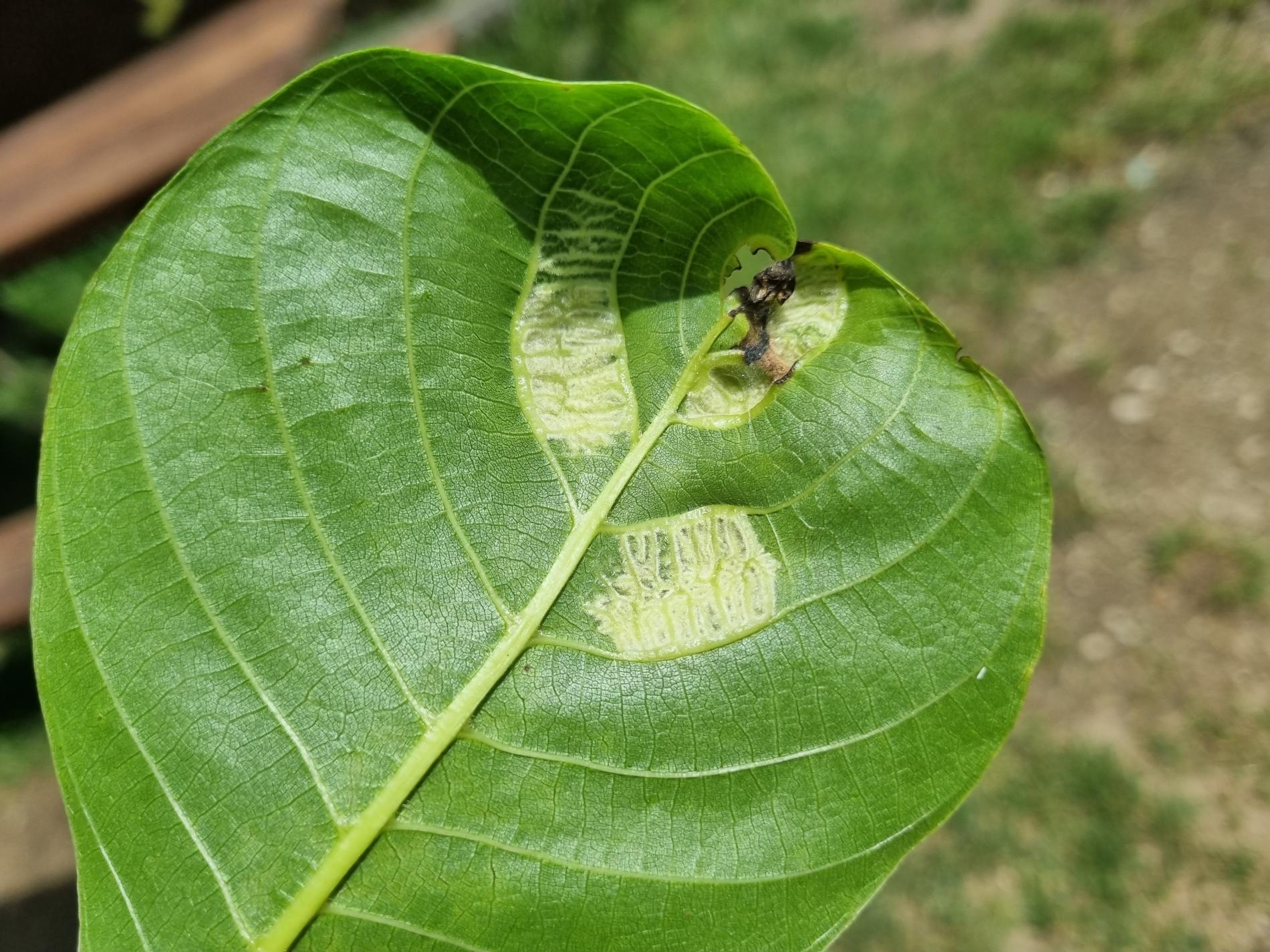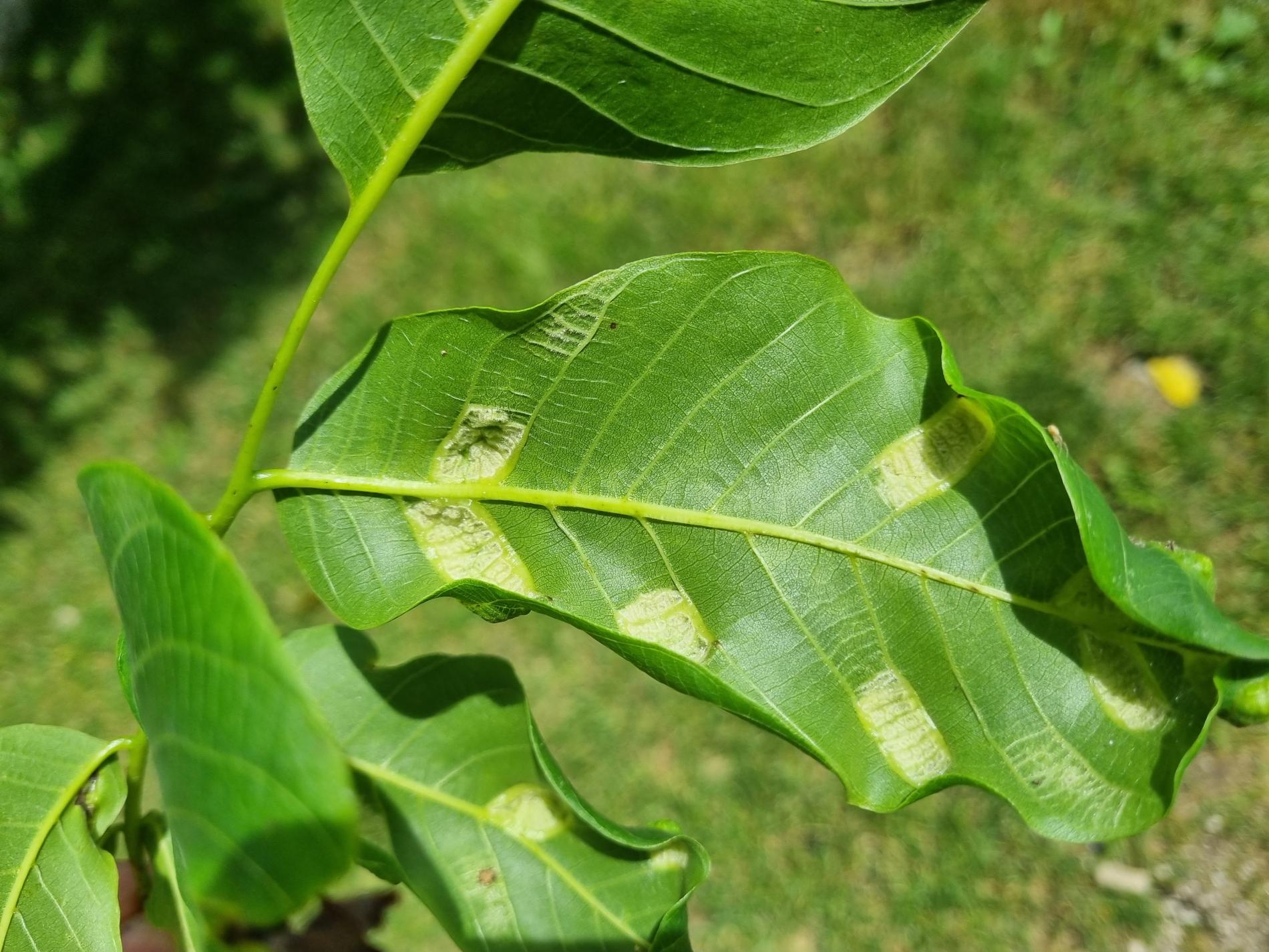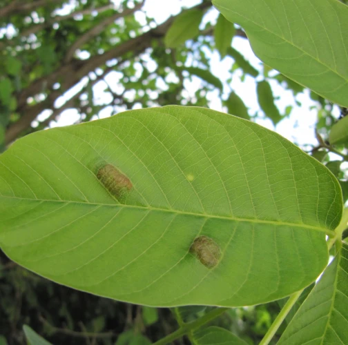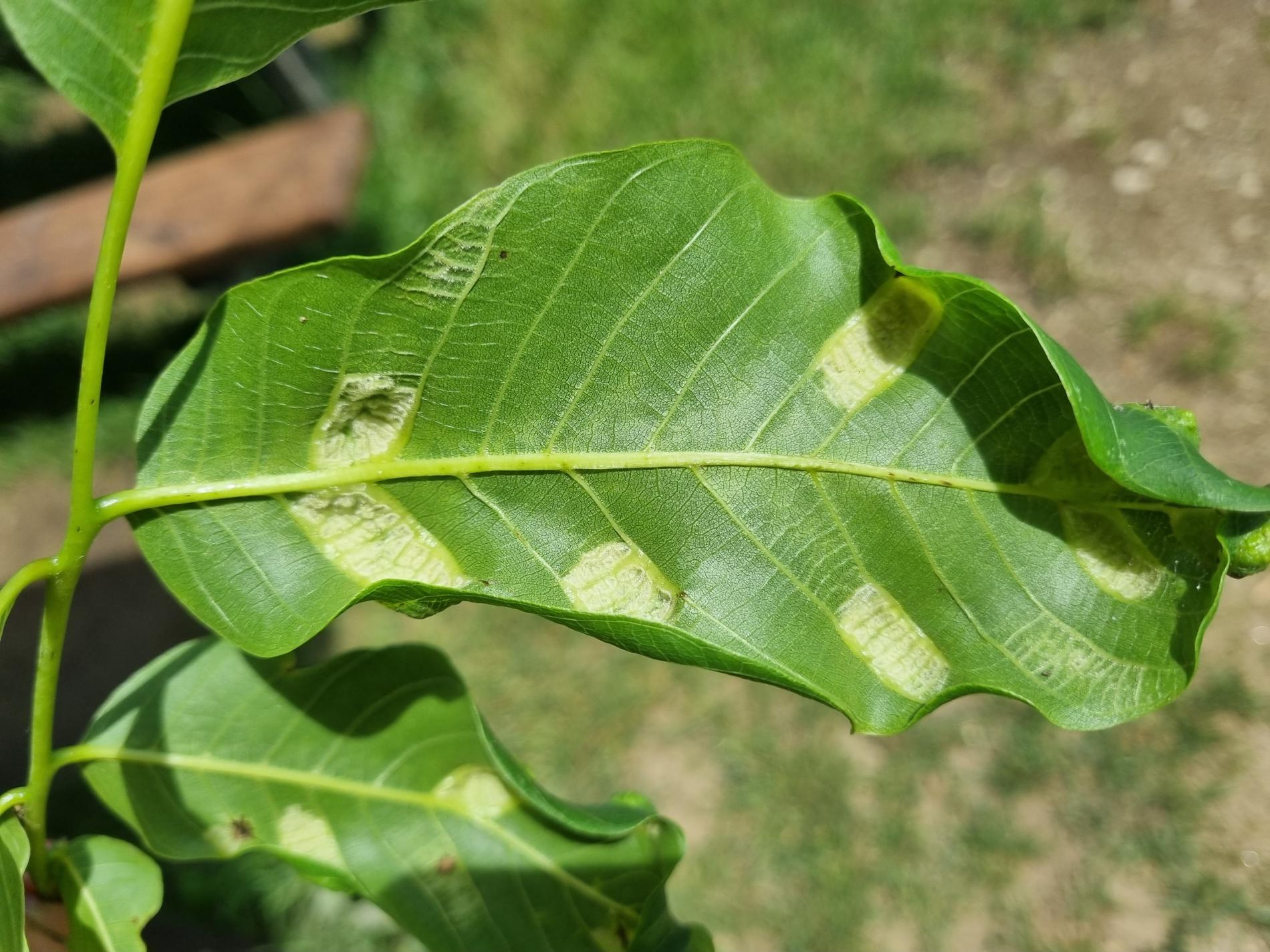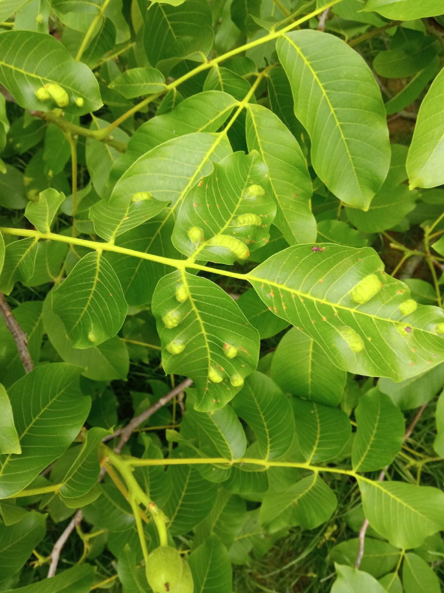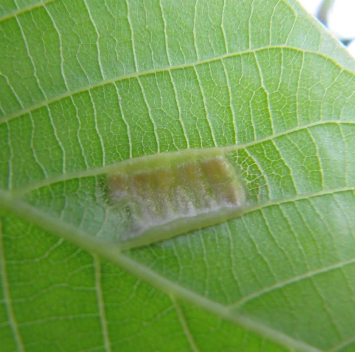 Zdureniny na listoch vytvárajúce svetlý hrboľ na vrchnej strane listu. Plstenný povlak na spodnej strane listu.